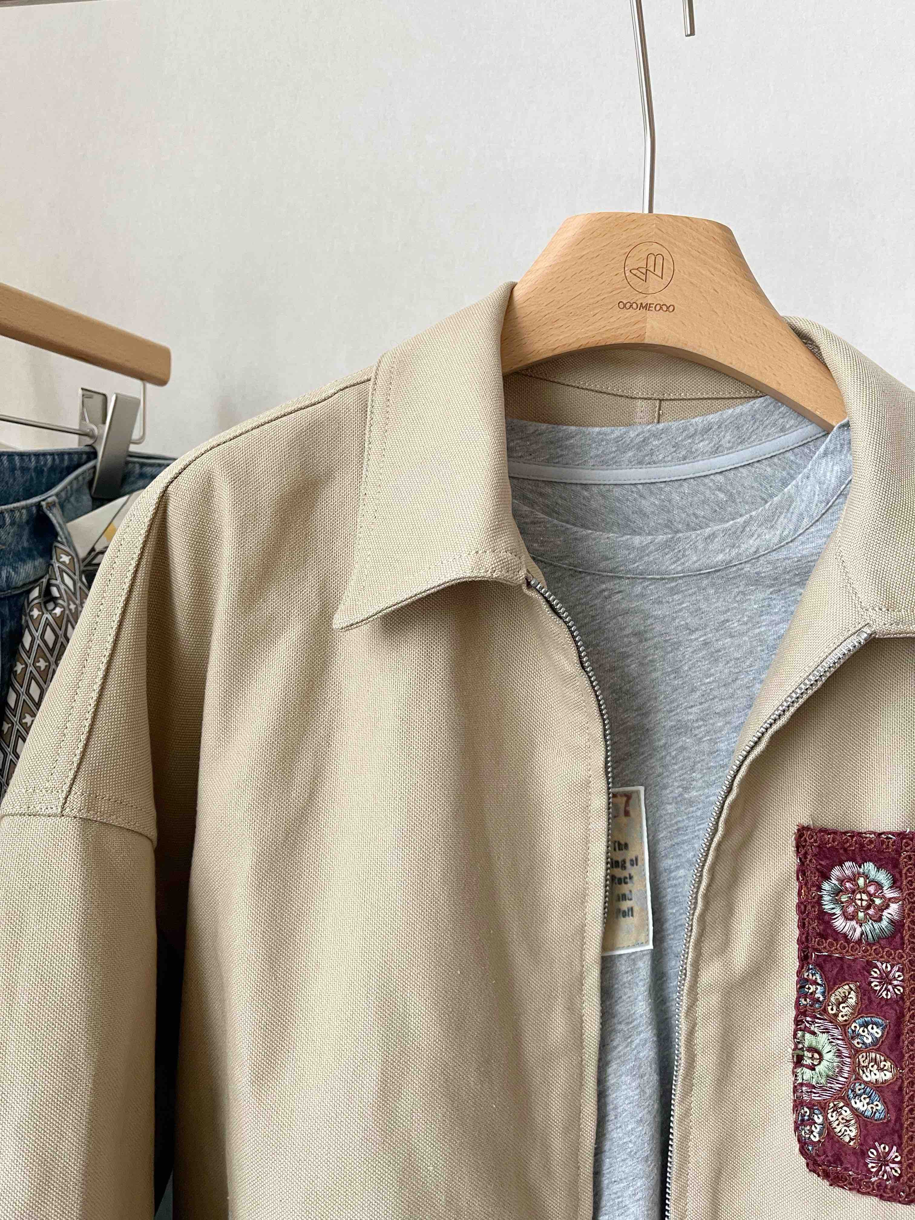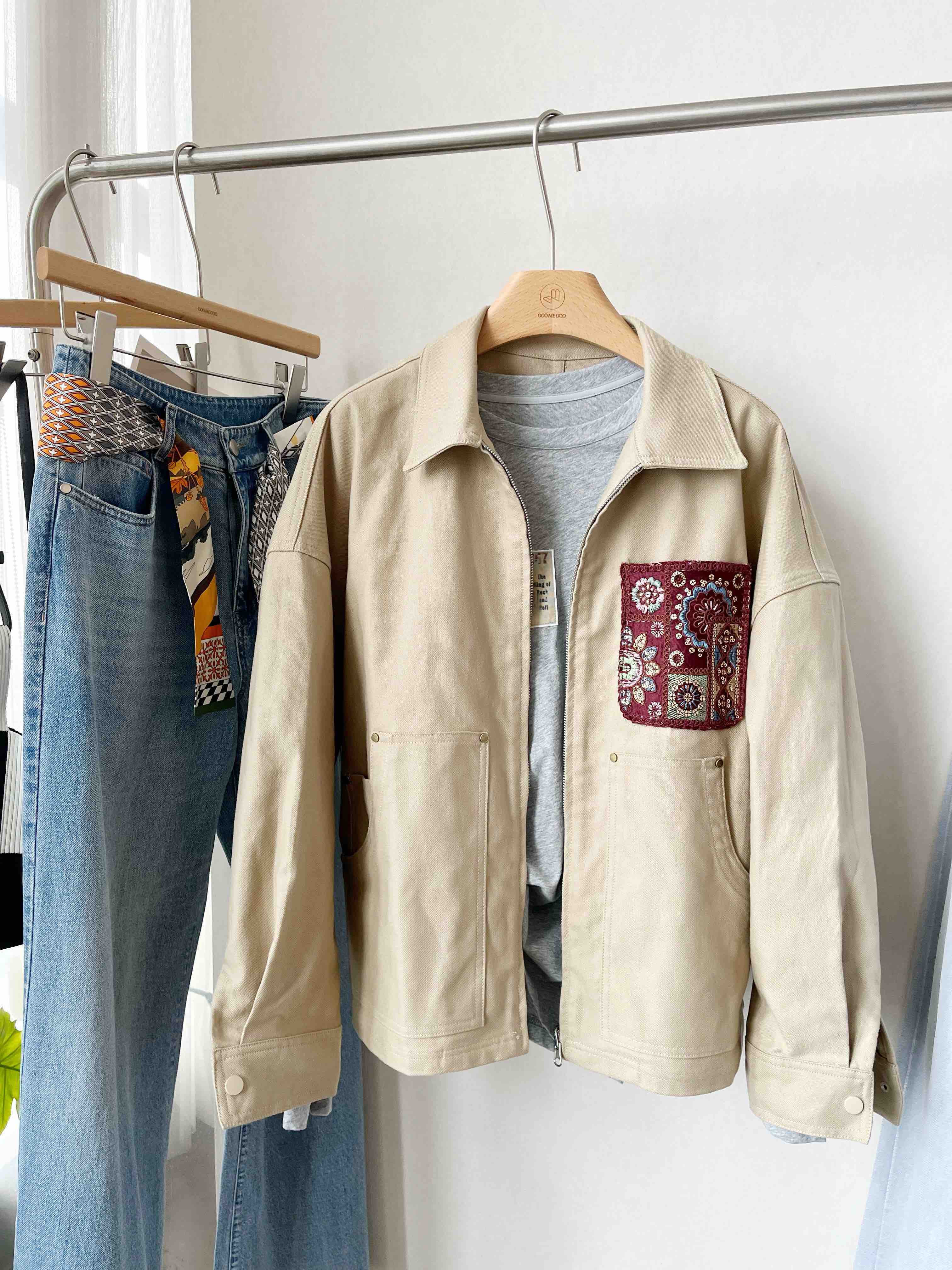 局里局气穿搭 #卡其色外套天花板 #刺绣点缀小心机 #短款干练神器 #单层面料多季穿