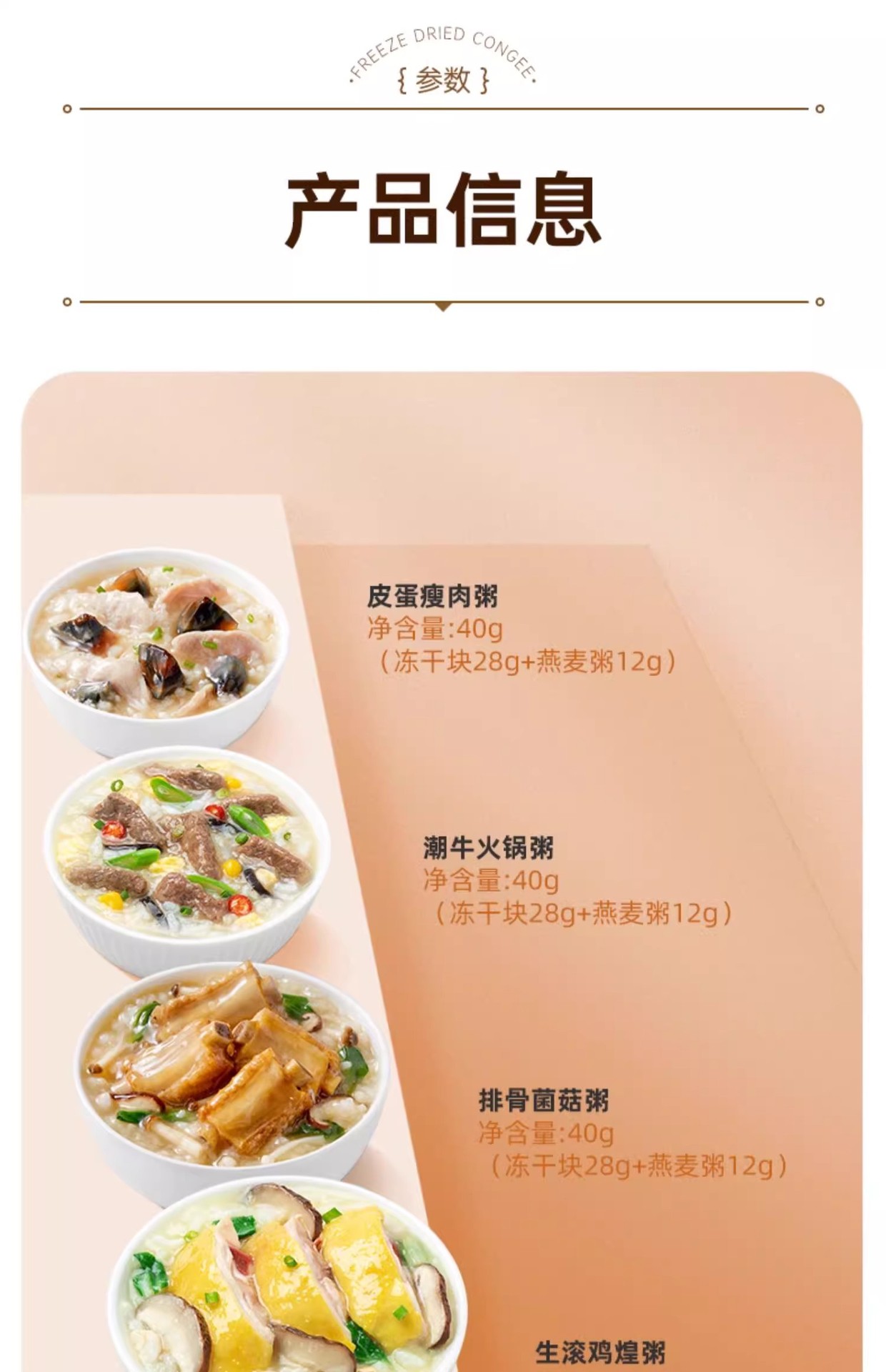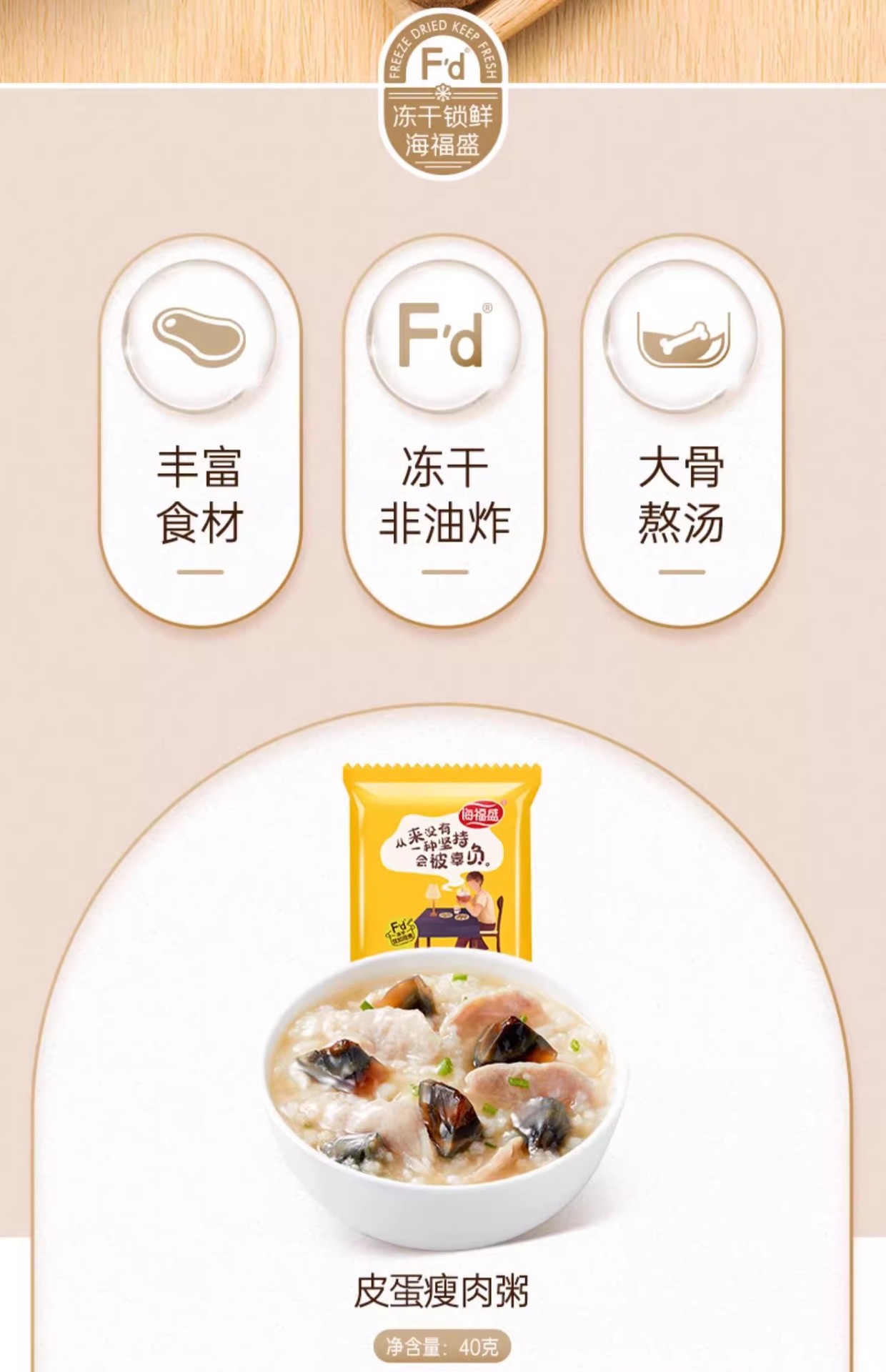 【有肉有菜❗养胃早餐】海福盛冻干速食粥早餐袋装皮蛋瘦肉粥即食食品营养代餐粥速食早饭。rh