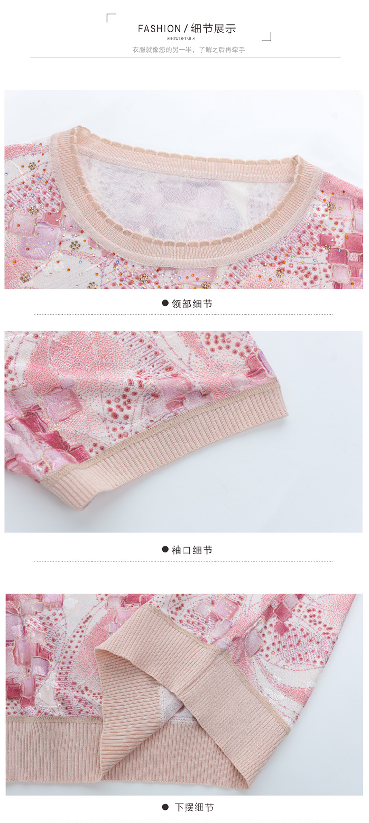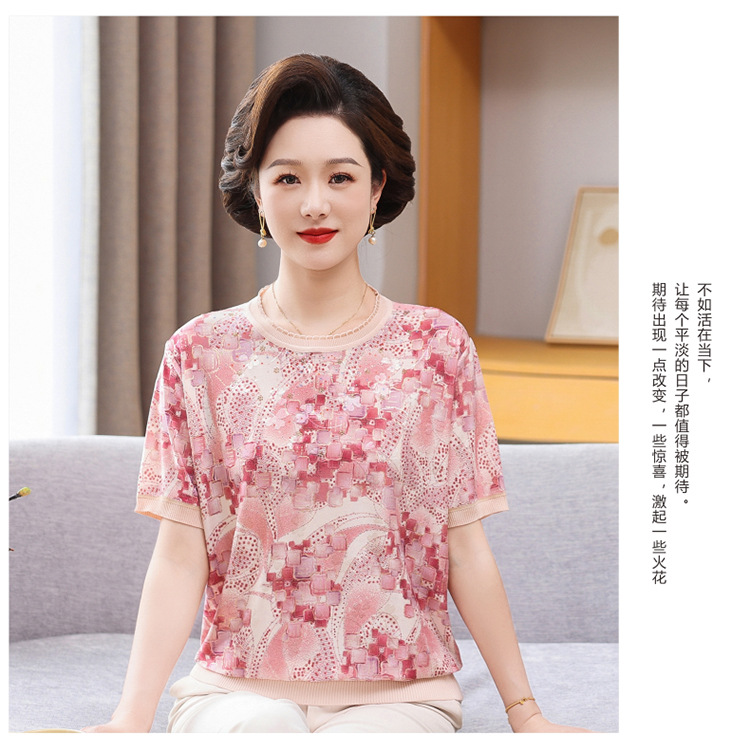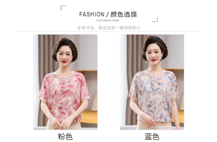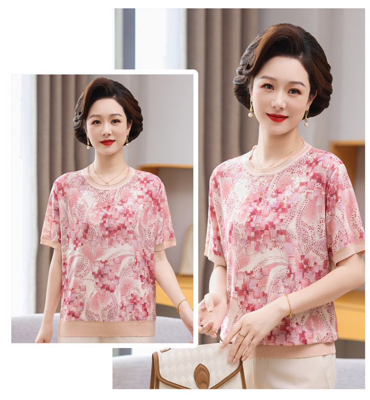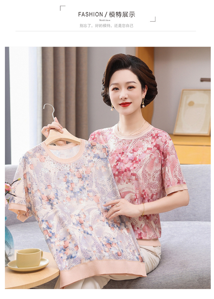 W052-2531-65-108时尚妈妈夏装新款高档冰丝小衫宽松上衣中老年女装洋气短袖T恤衫