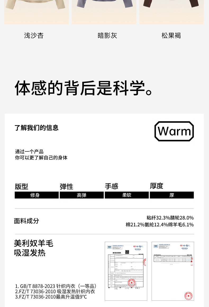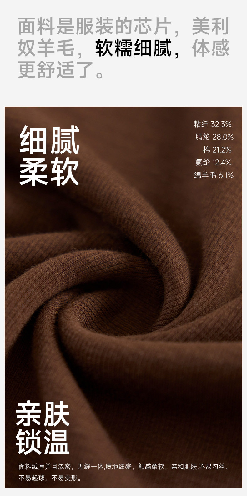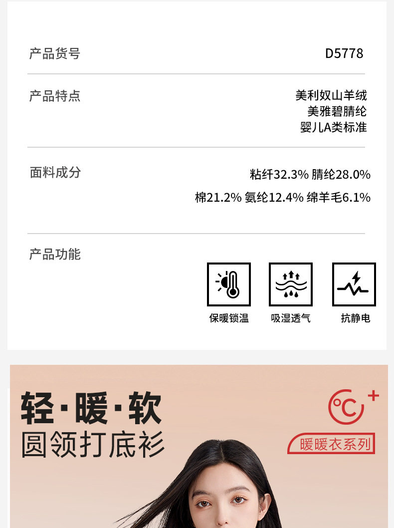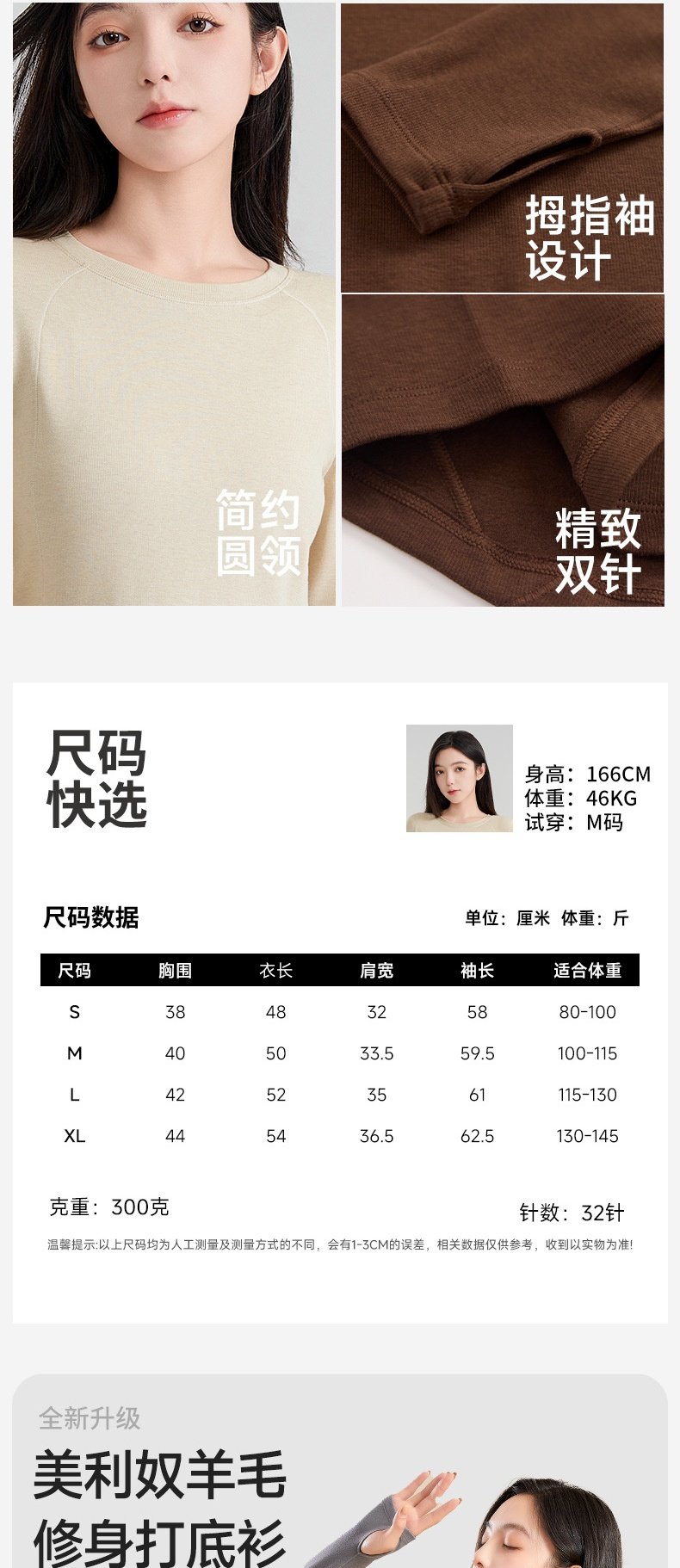 「自」全新升级【铂金会员146/天猫189/差价43】(14735)洛诗琳7A抑菌德绒打底衫2026新款美利奴羊毛修身显瘦保暖上衣女