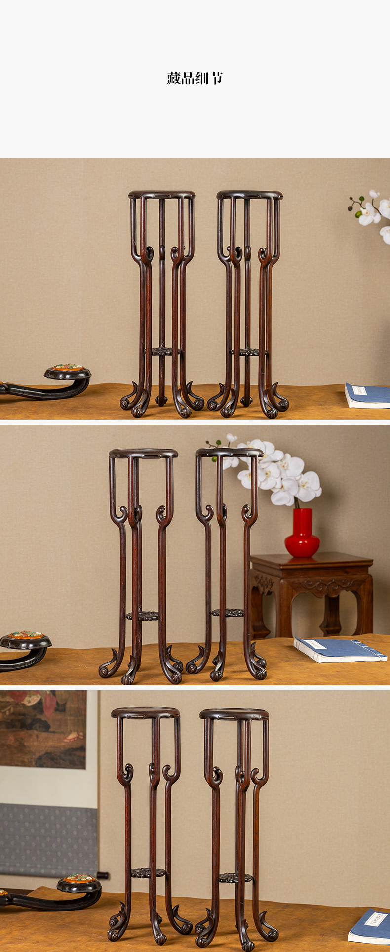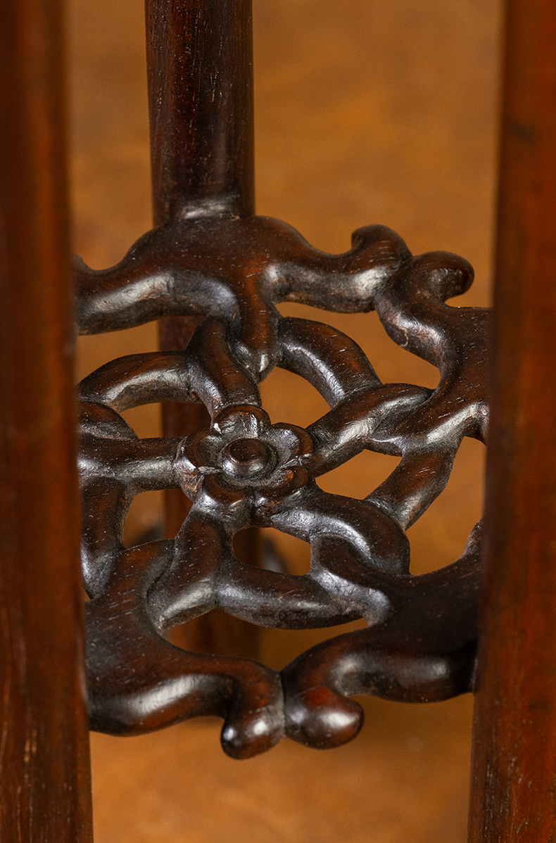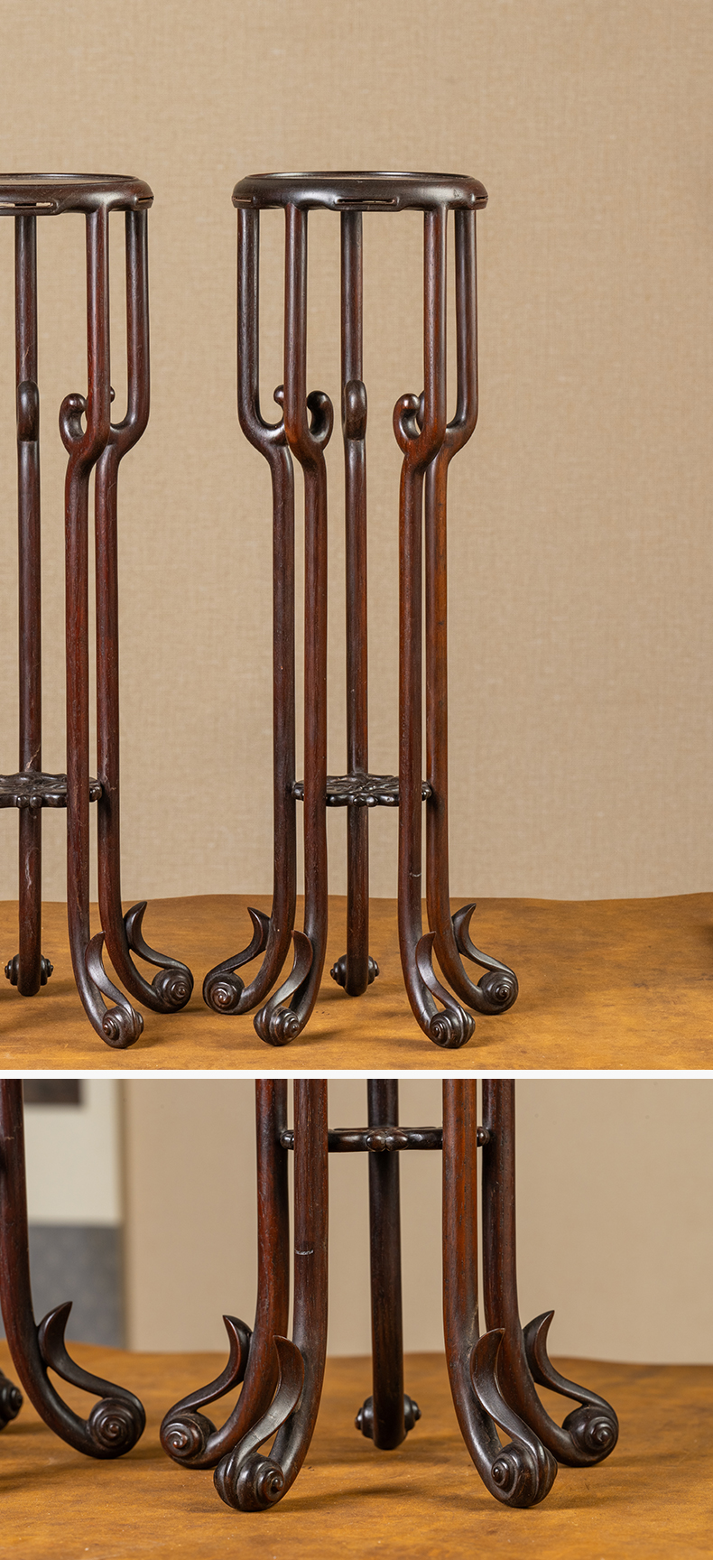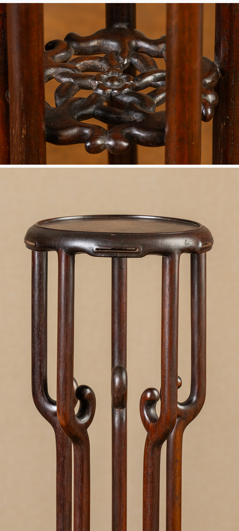 清 红木云纹五足圆花几摆件(一对)