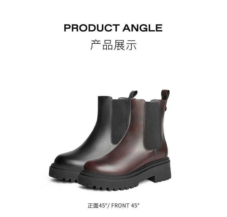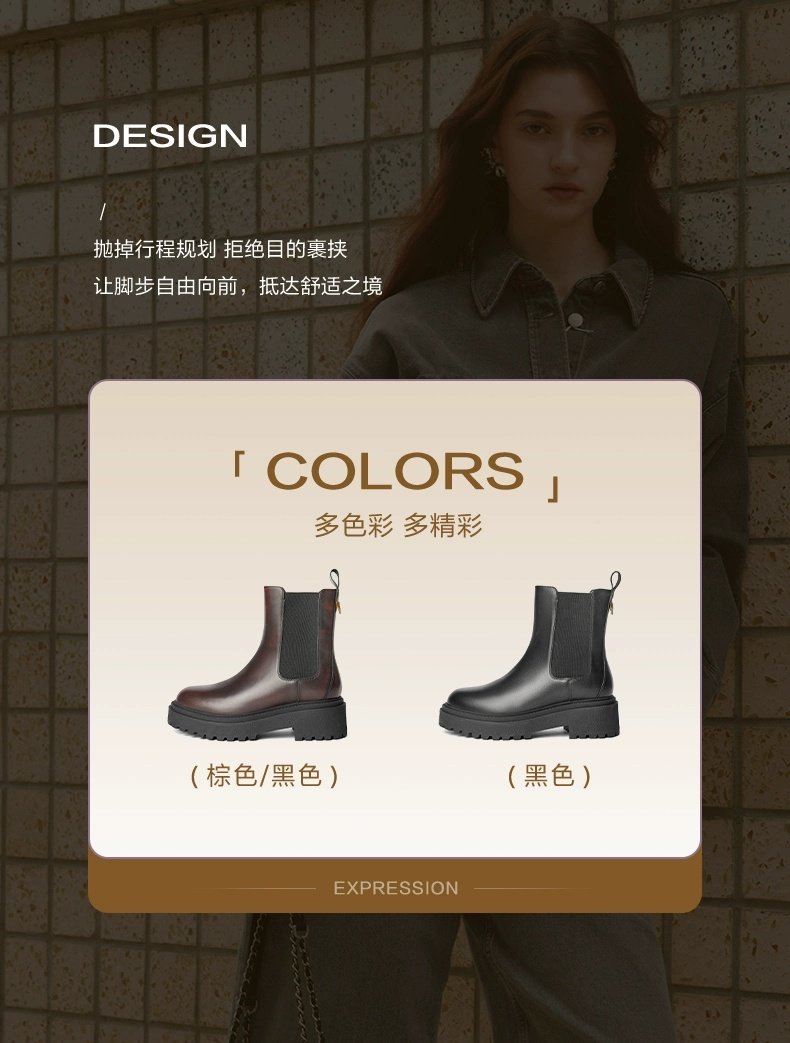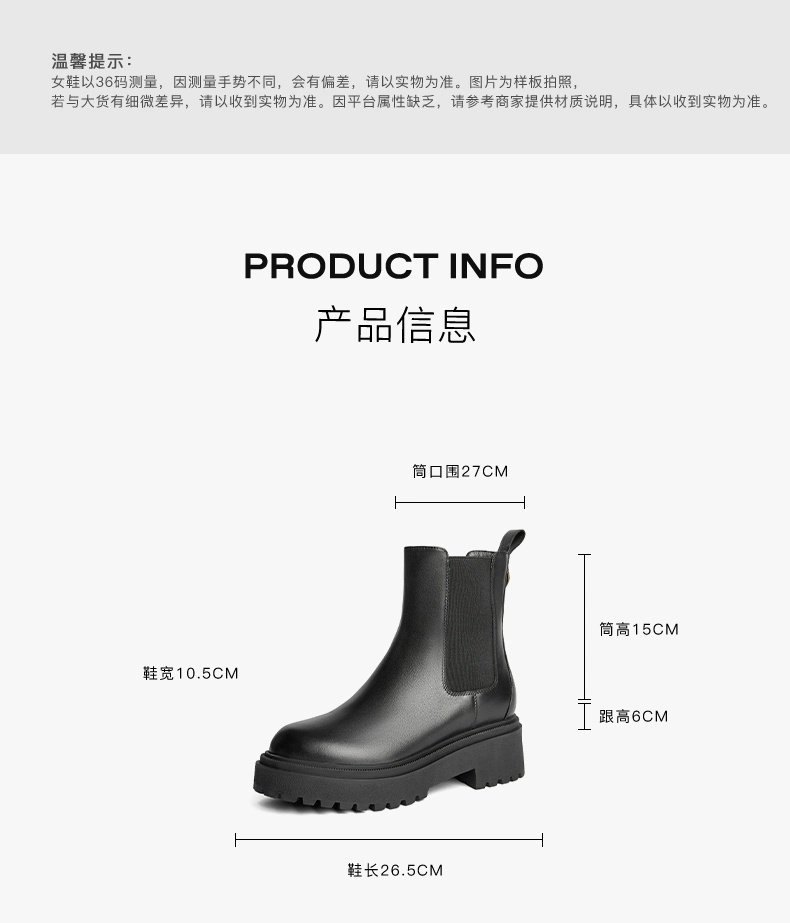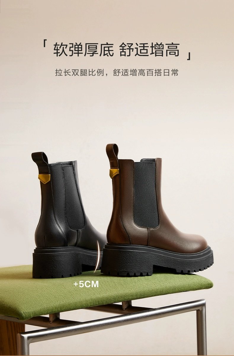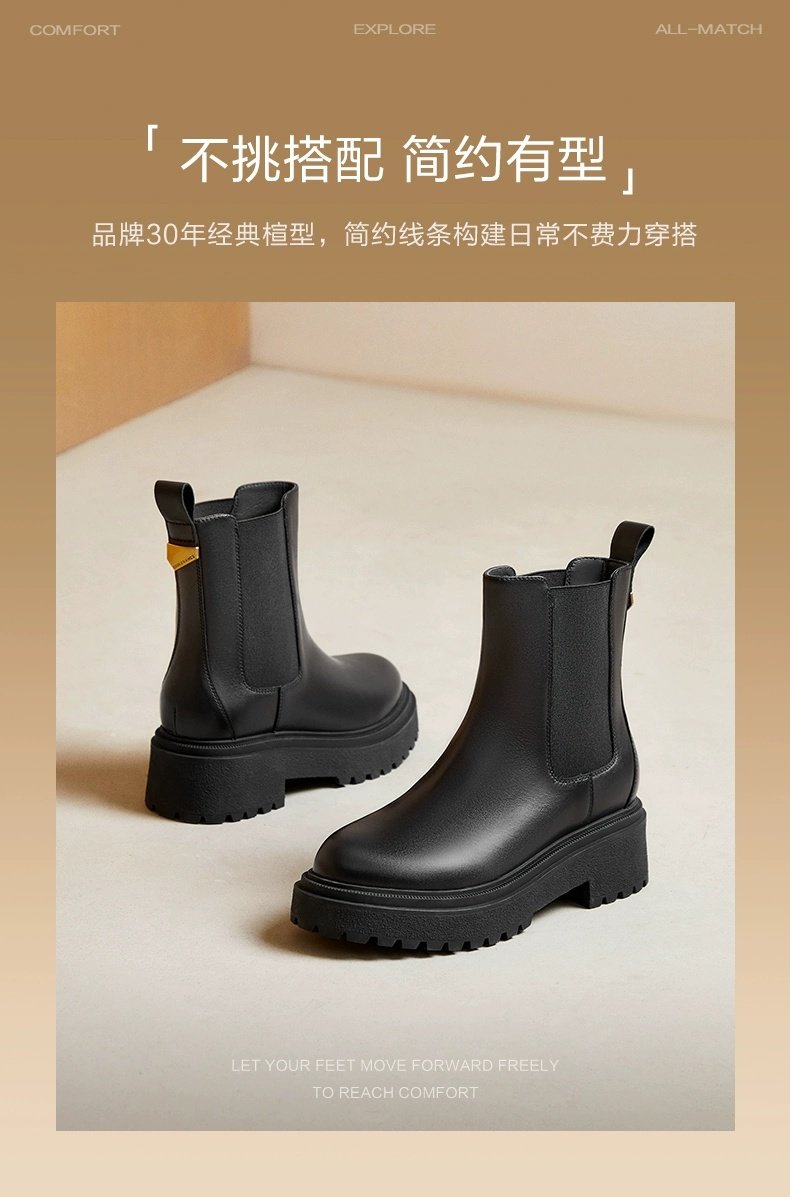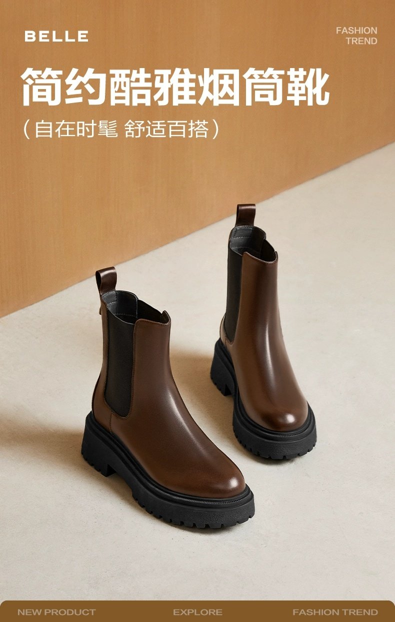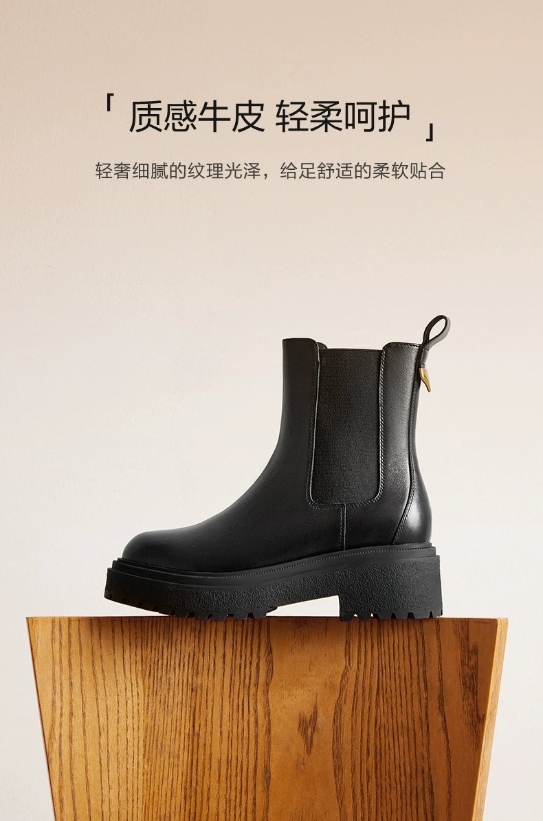 周雨彤同款百丽切尔西靴子厚底烟筒靴女加绒冬季新款短靴