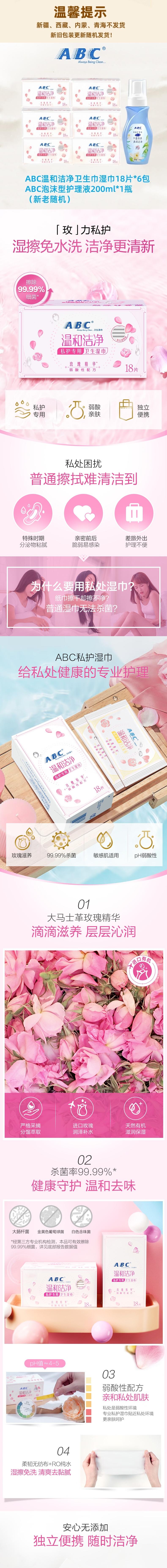 ABC 湿巾护理液组合(温和洁净18片*6包+泡沫200ml*1瓶) R06U01H