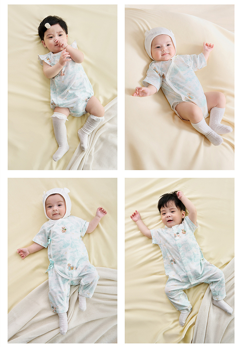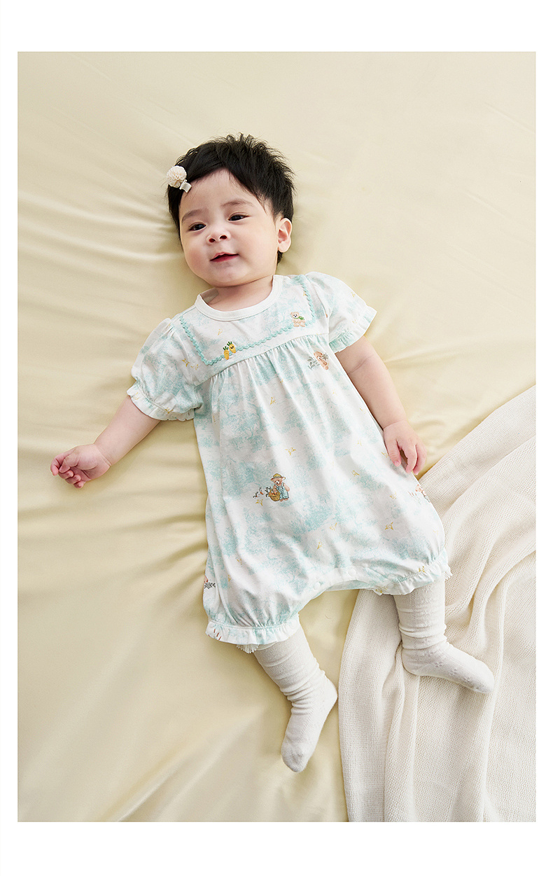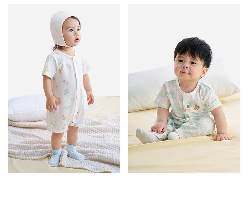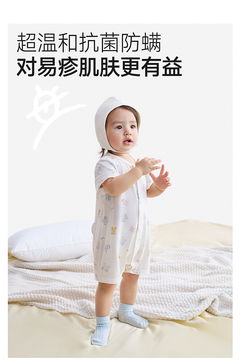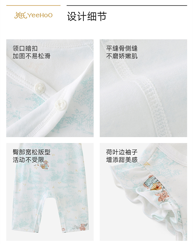 【商场同款】英氏婴儿连体衣宝宝夏季短袖哈衣防螨抗菌家居睡衣