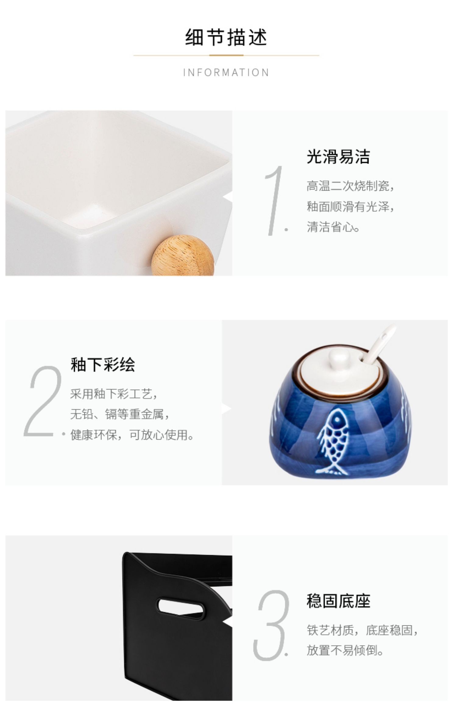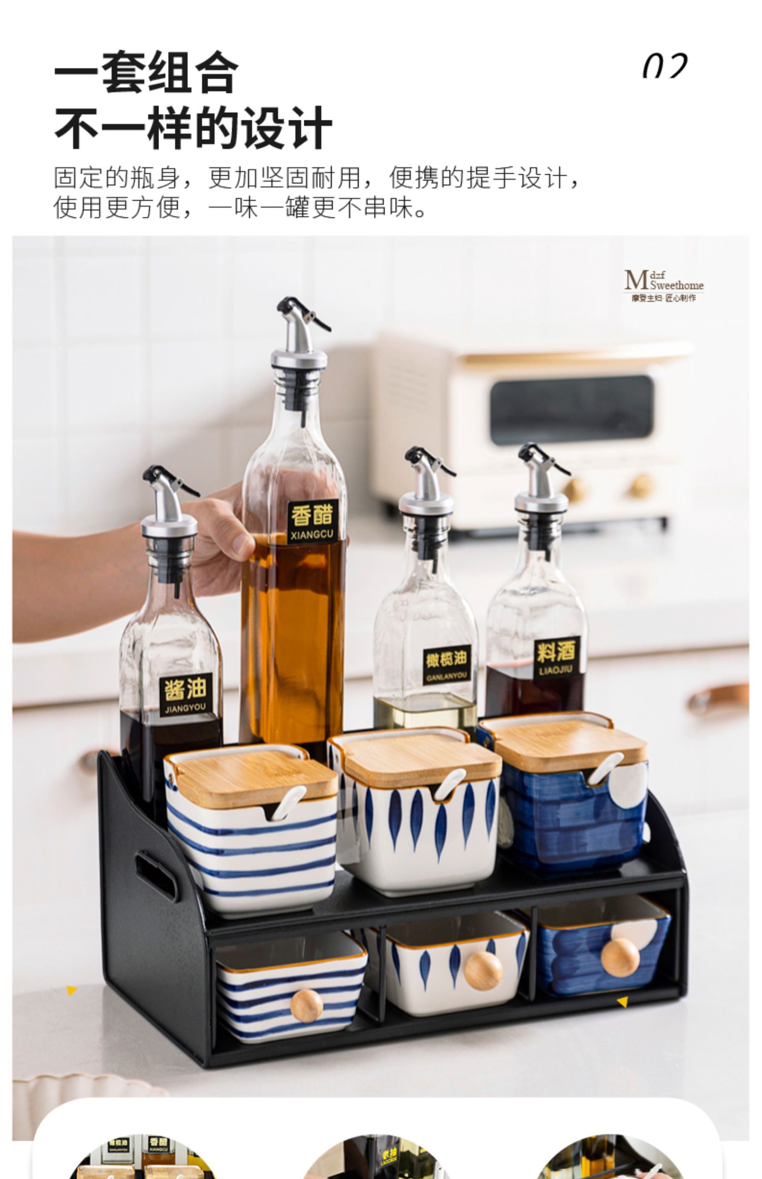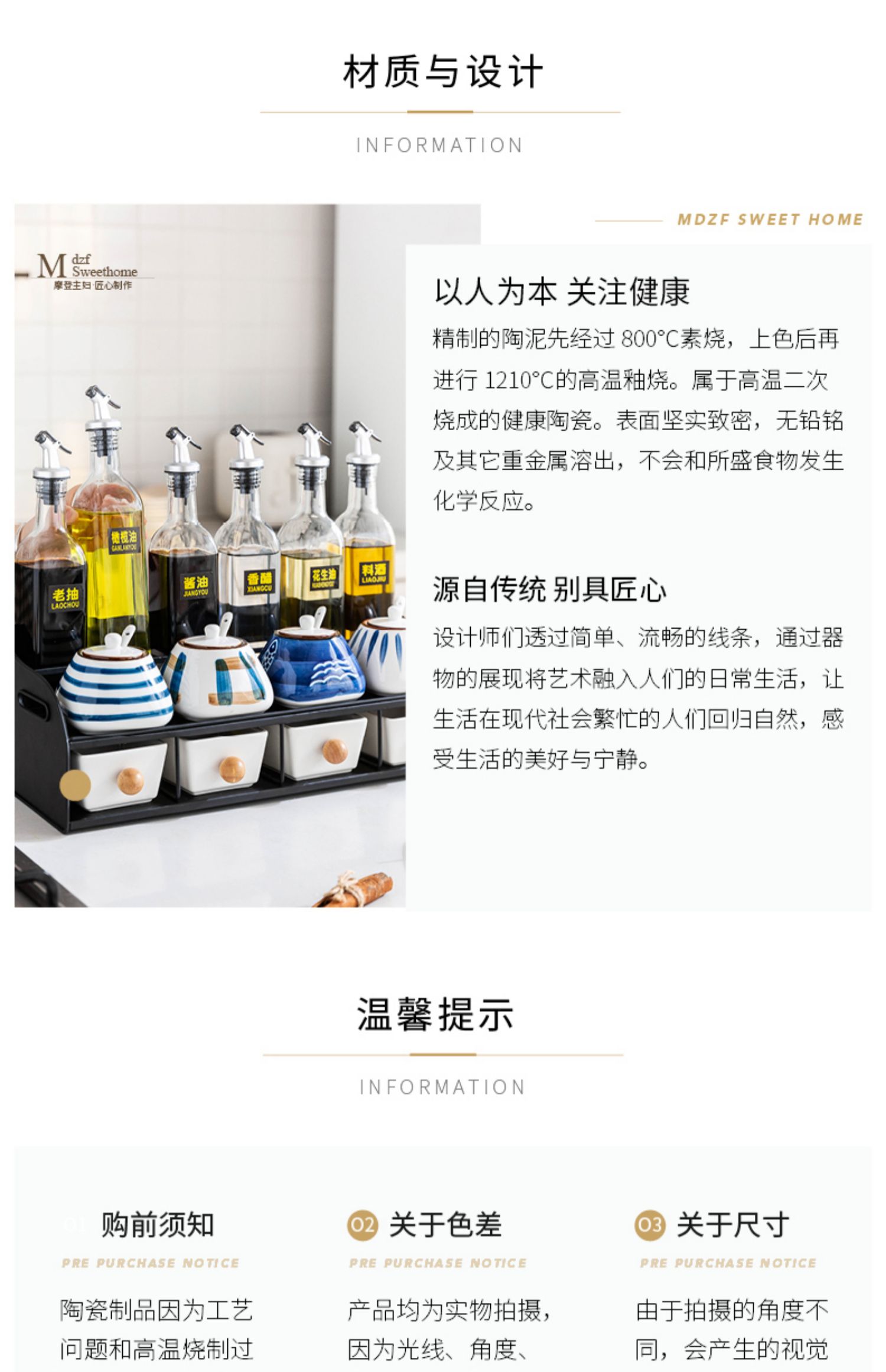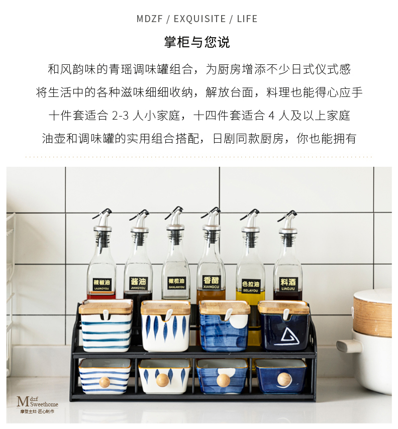 摩登主妇日式调味罐陶瓷套装家用盐罐酱醋组合厨房用品全套调料盒
