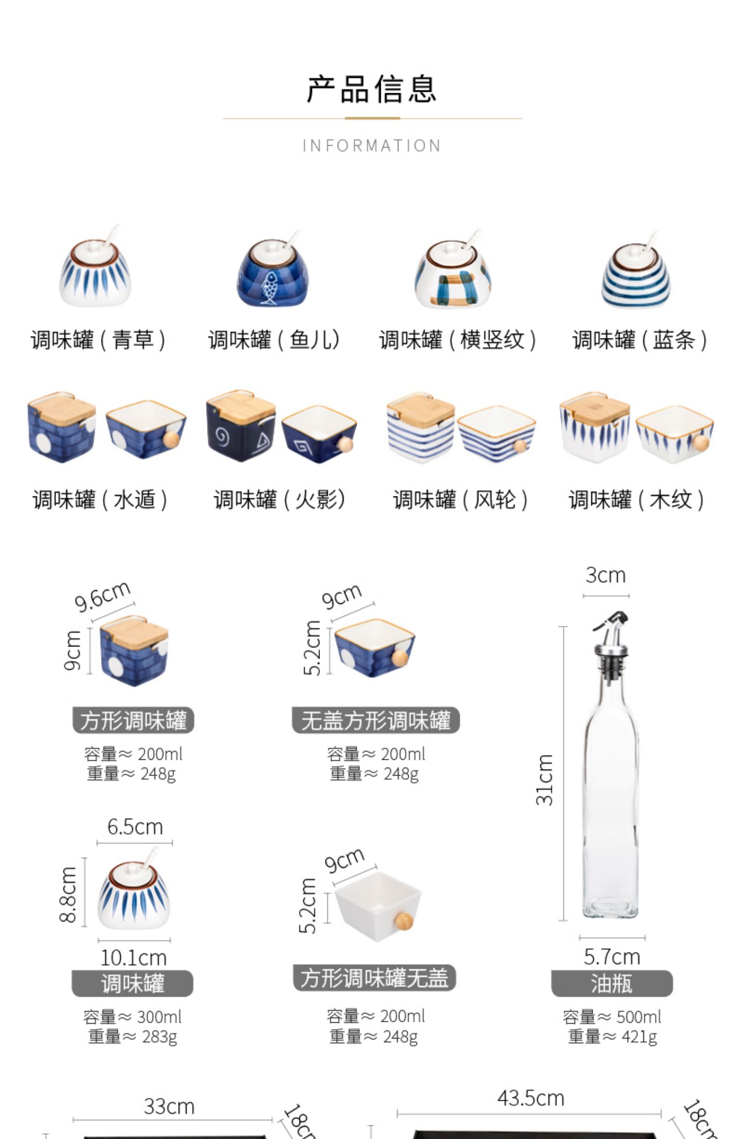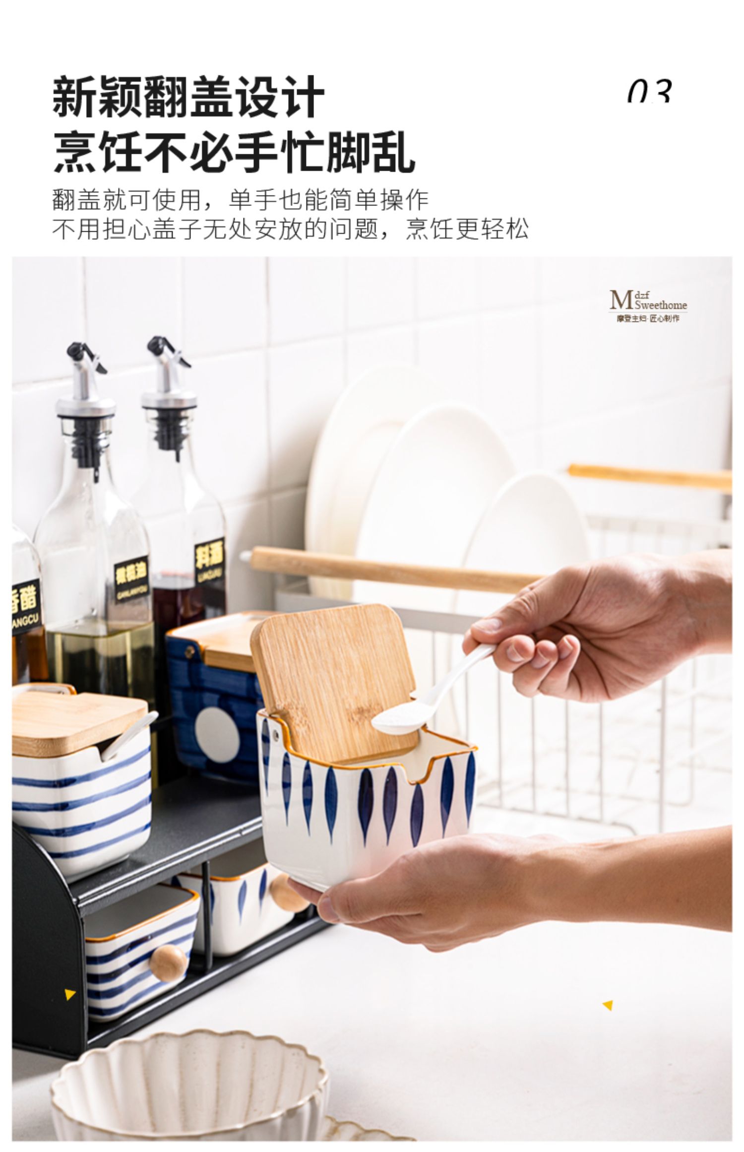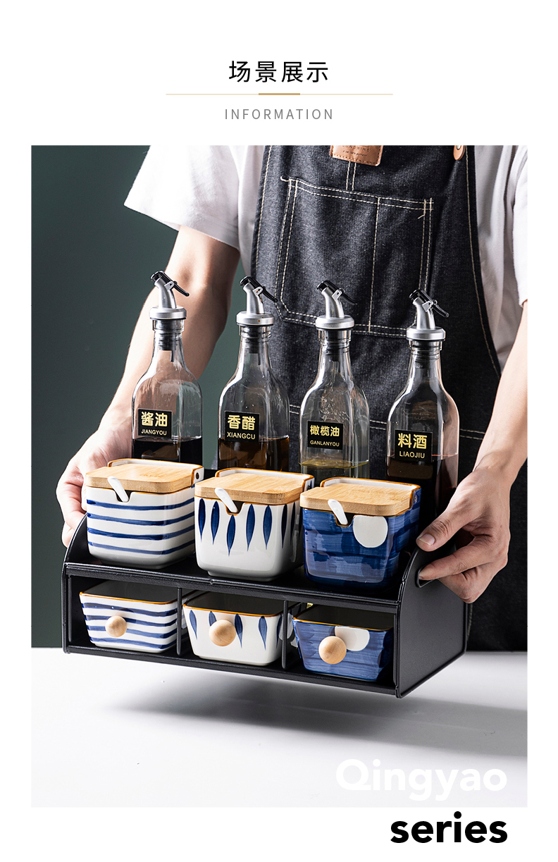 摩登主妇日式调味罐陶瓷套装家用盐罐酱醋组合厨房用品全套调料盒
