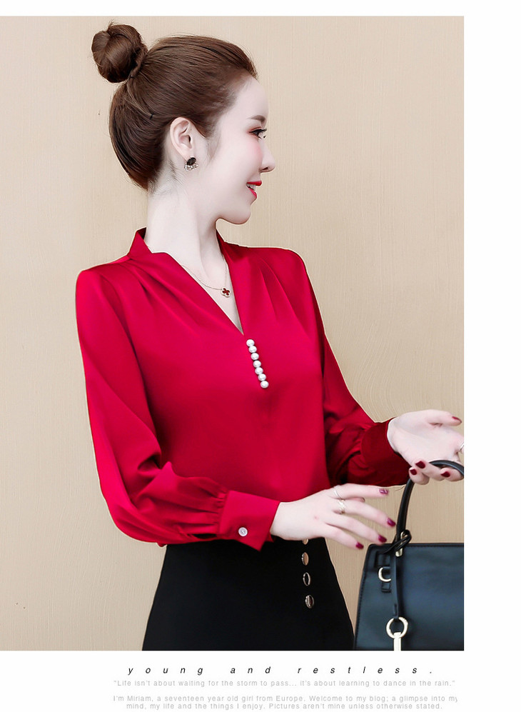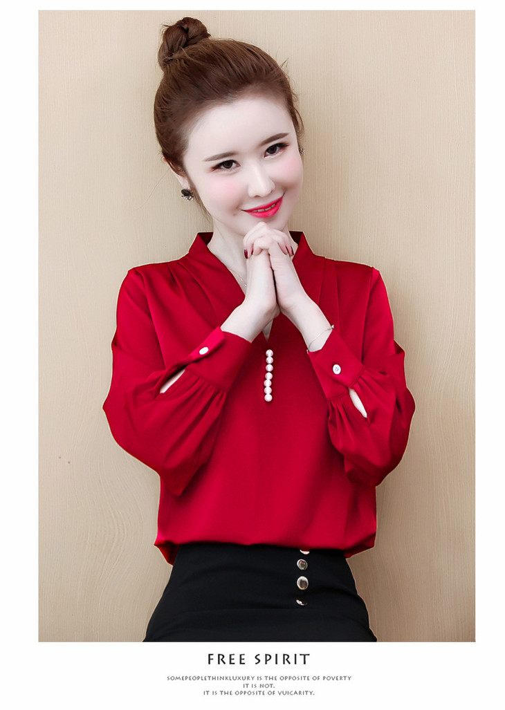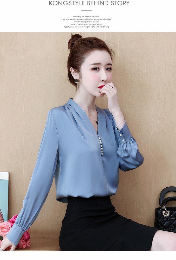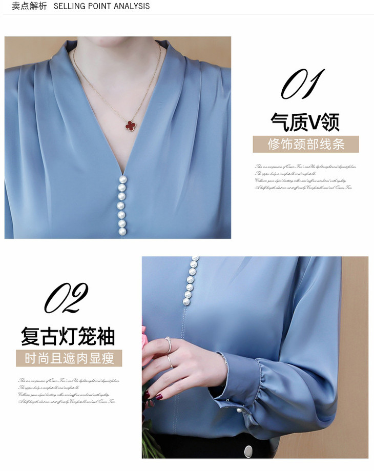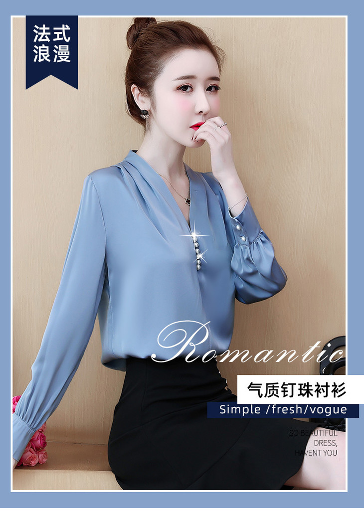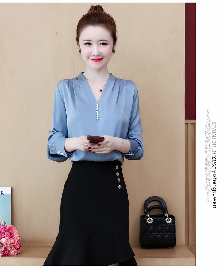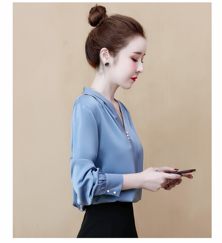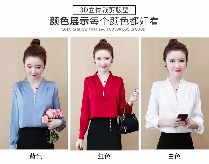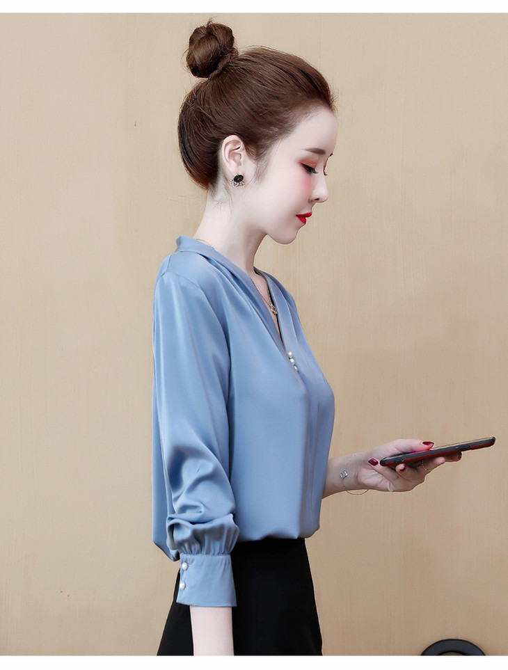 YH-2020秋装新款韩版气质V领雪纺衫上衣