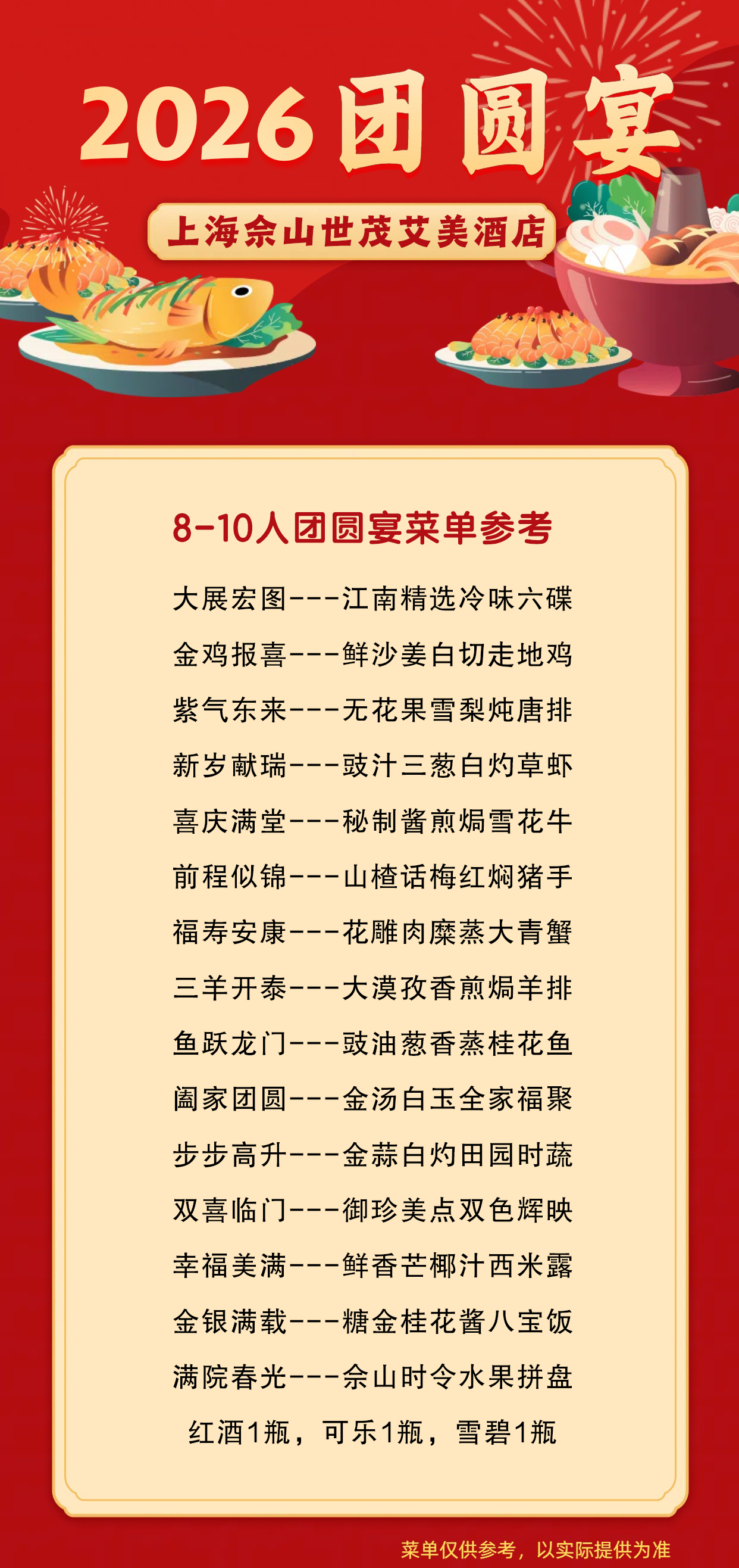 ★ 团圆宴菜单供参考,酒店可能会根据时令稍作调整,具体以酒店当天出品为准