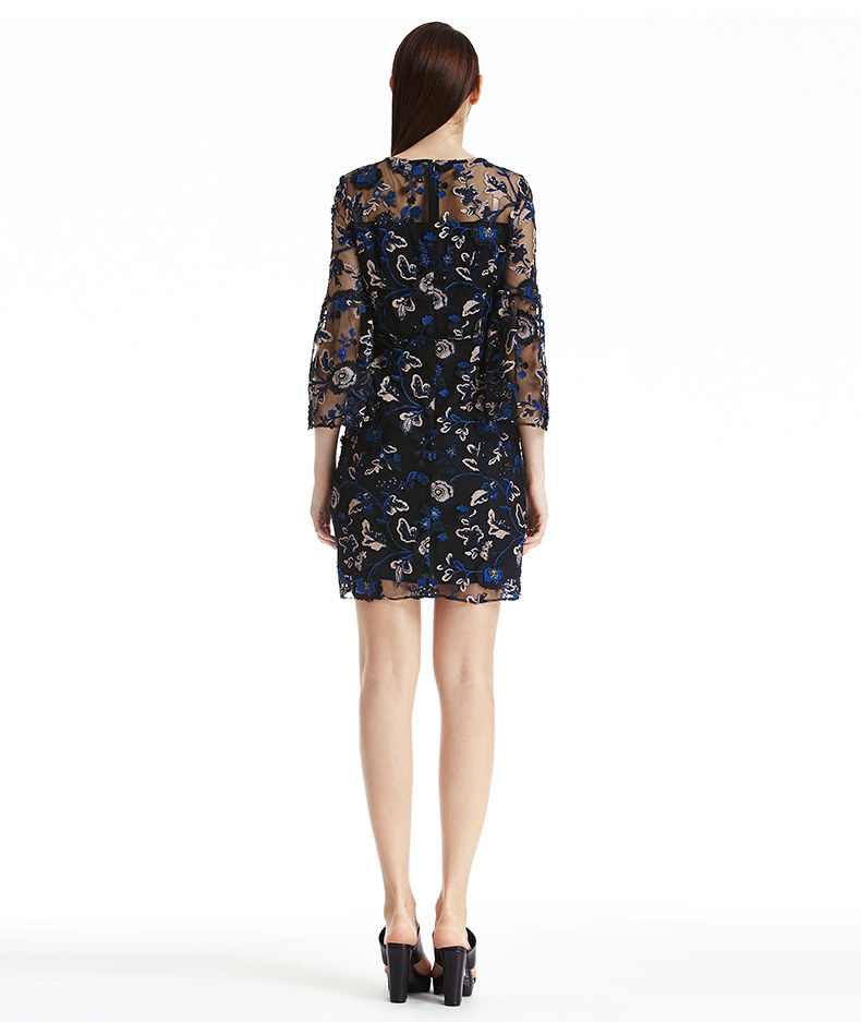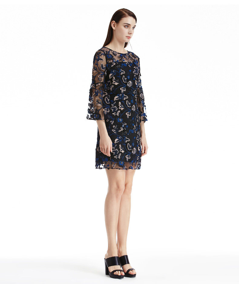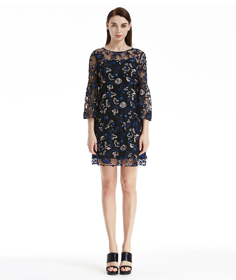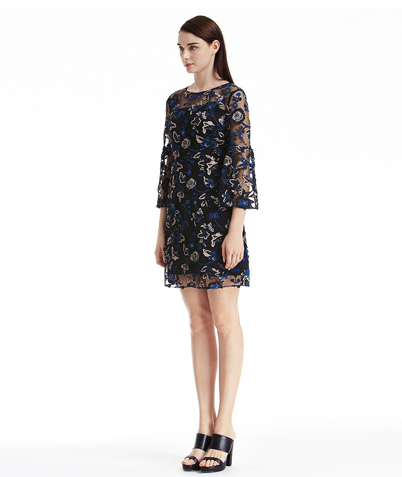EITIE爱特爱商场同款春夏季新款唯美浪漫绣花透视喇叭袖连衣裙5577212