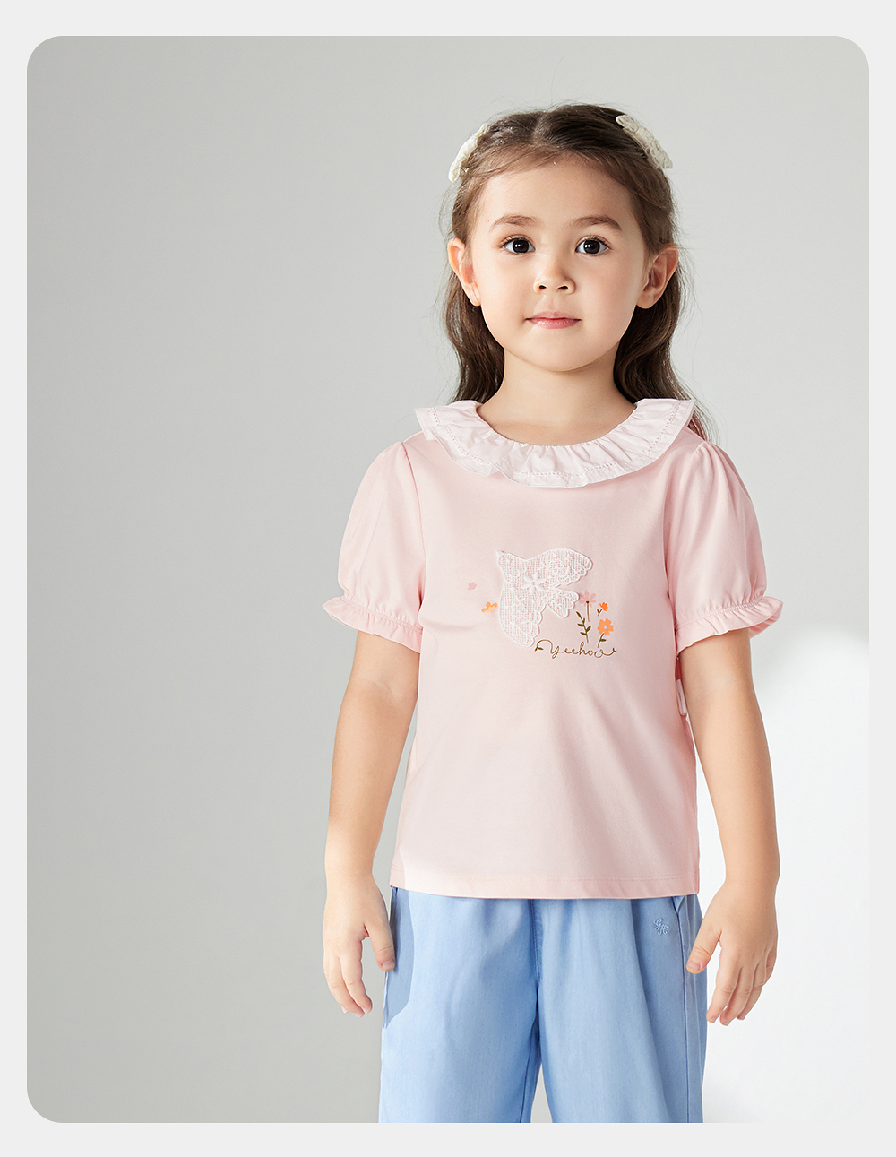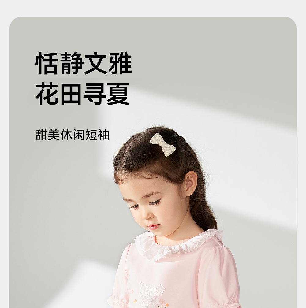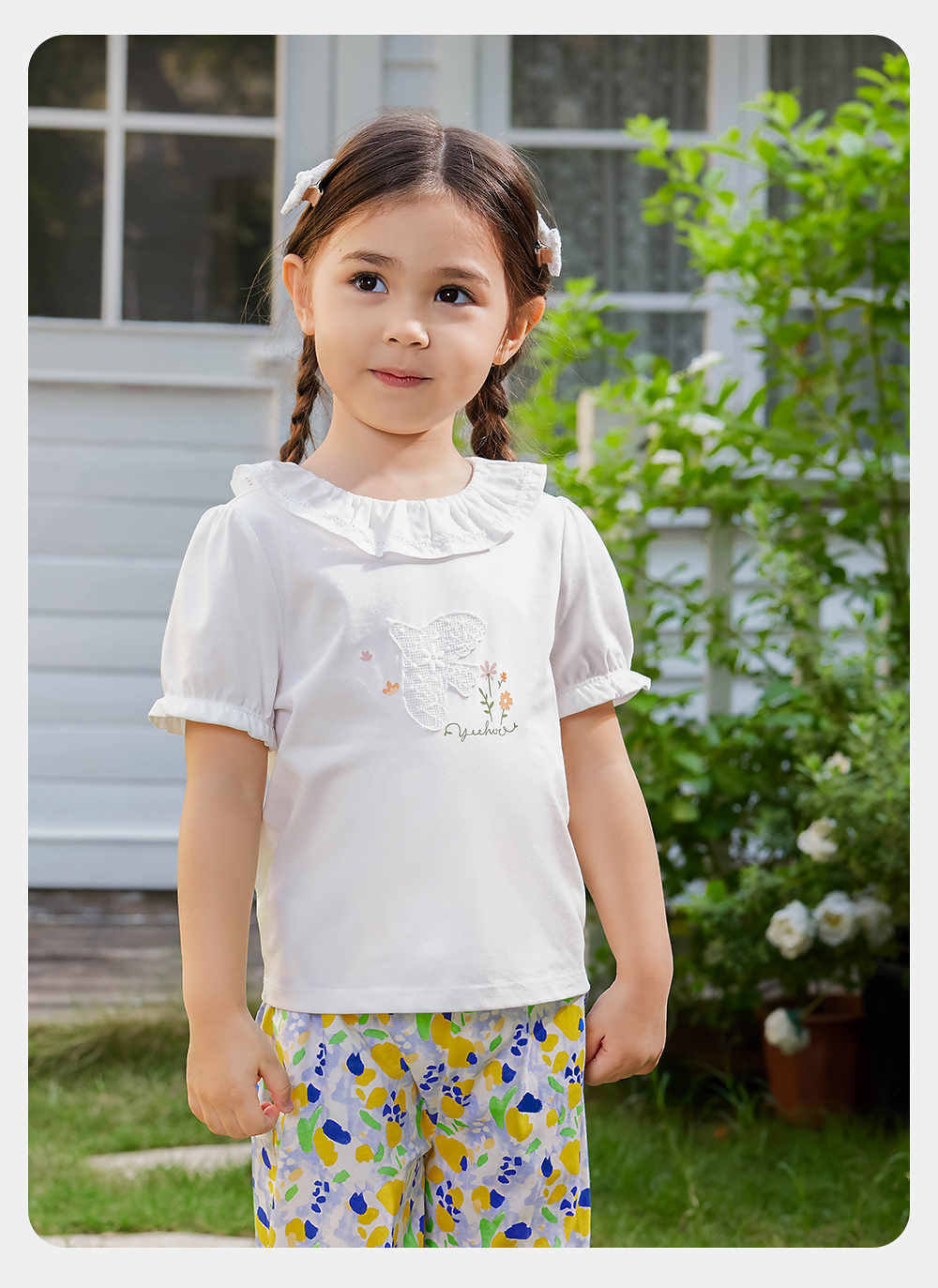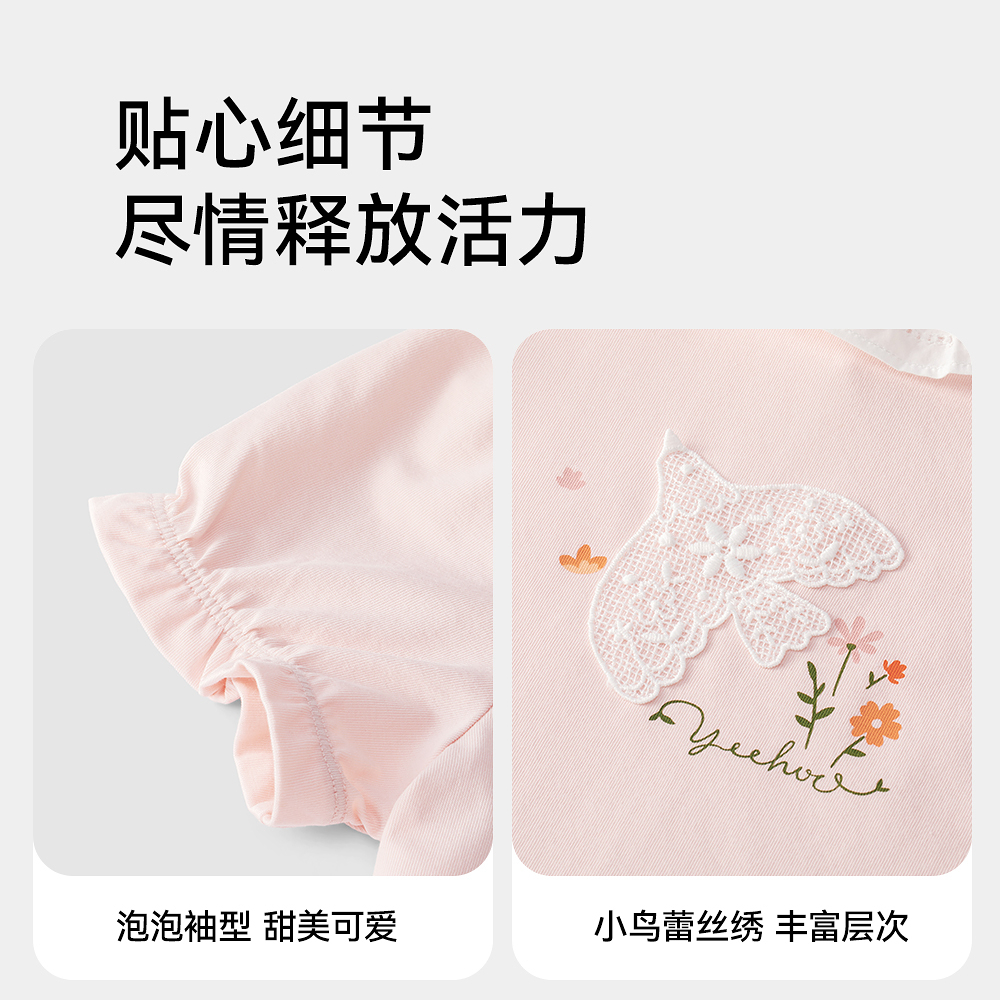 【莫奈花园系列】英氏儿童T恤夏季短袖透气上衣女童绣花休闲T恤百搭2025新款短T恤