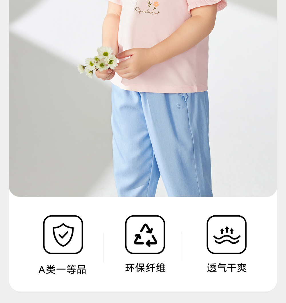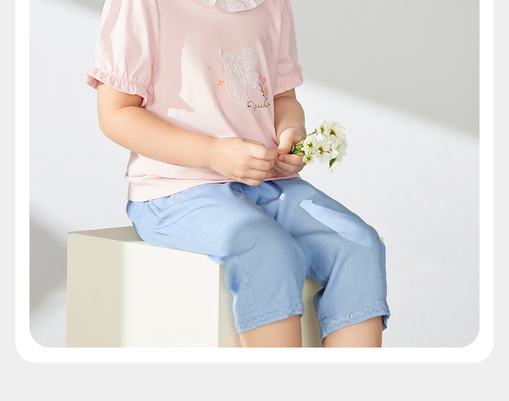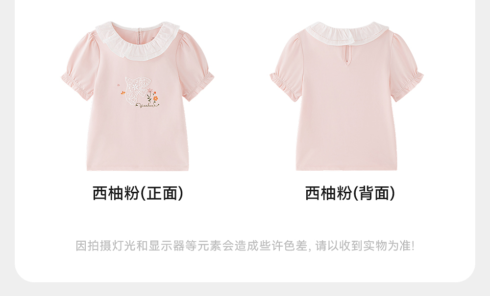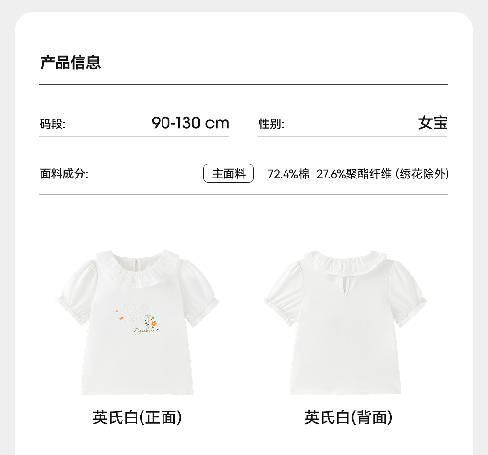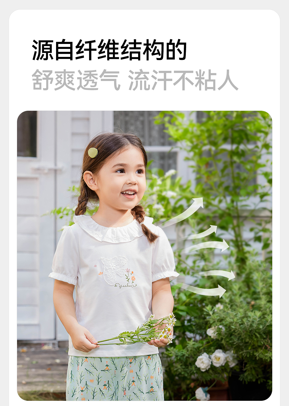 【莫奈花园系列】英氏儿童T恤夏季短袖透气上衣女童绣花休闲T恤百搭2025新款短T恤