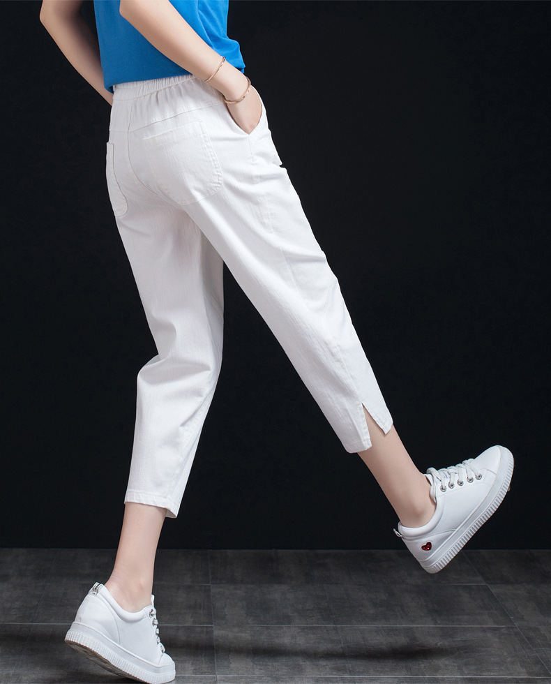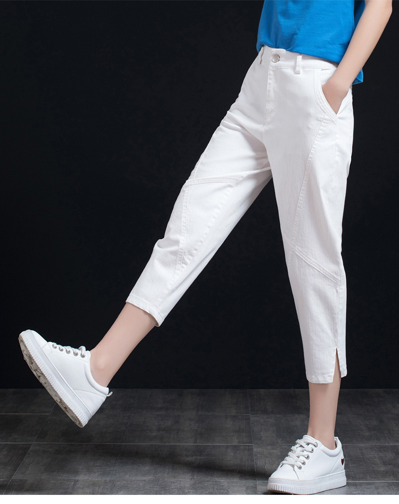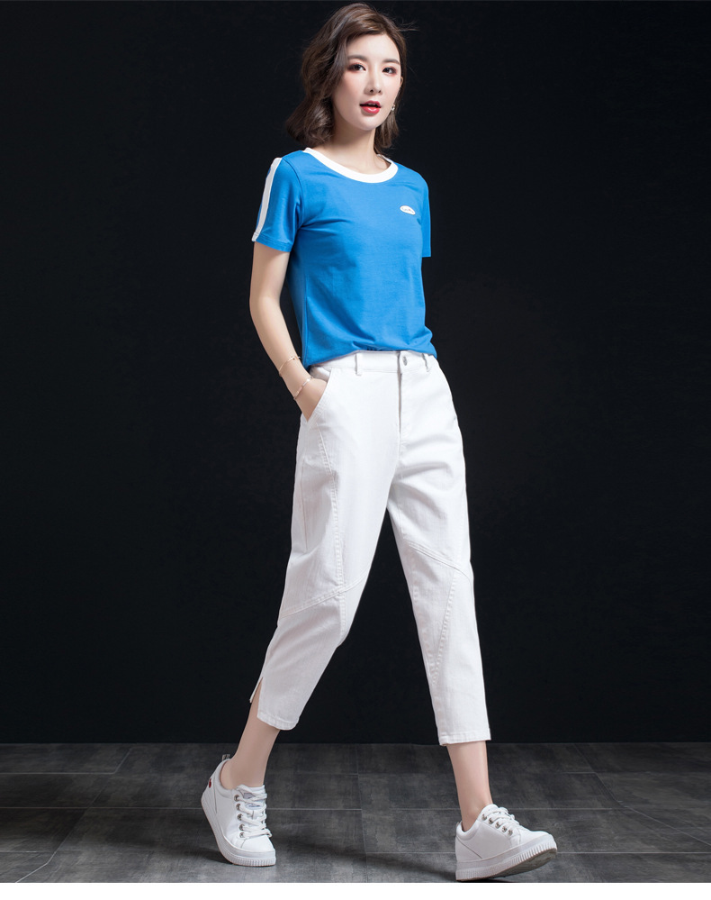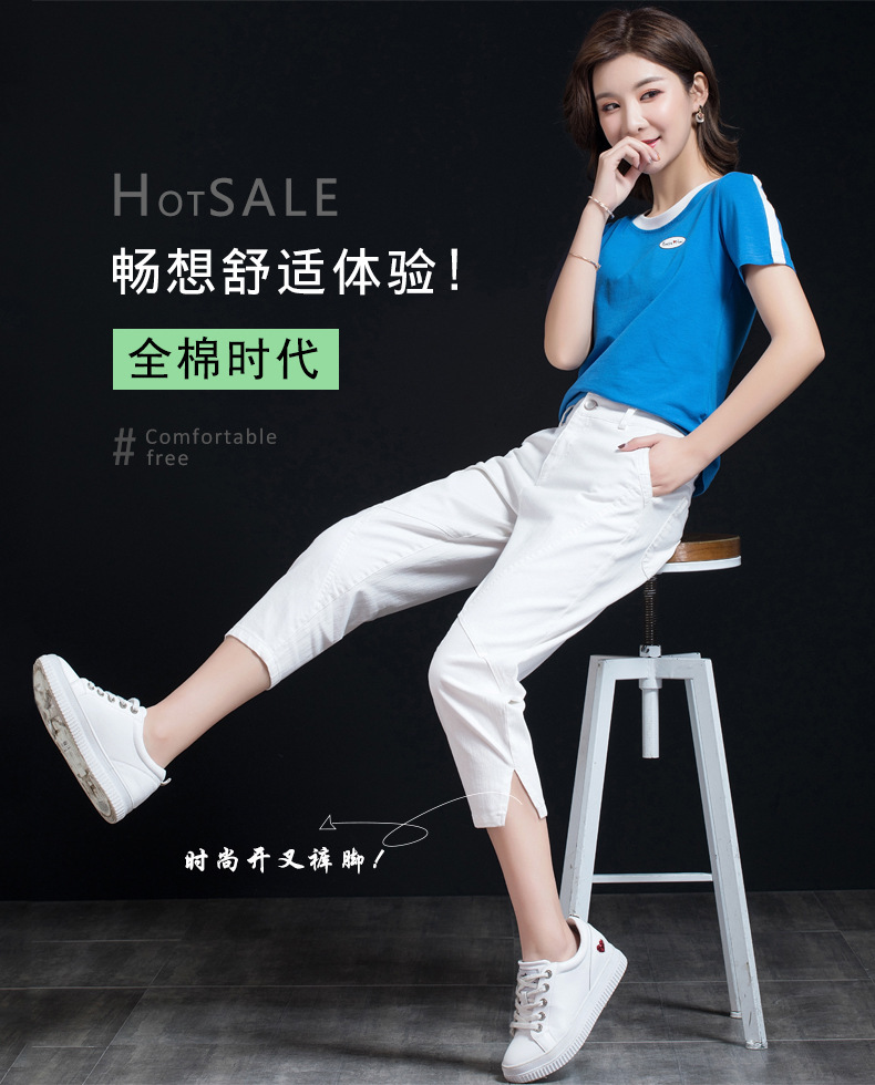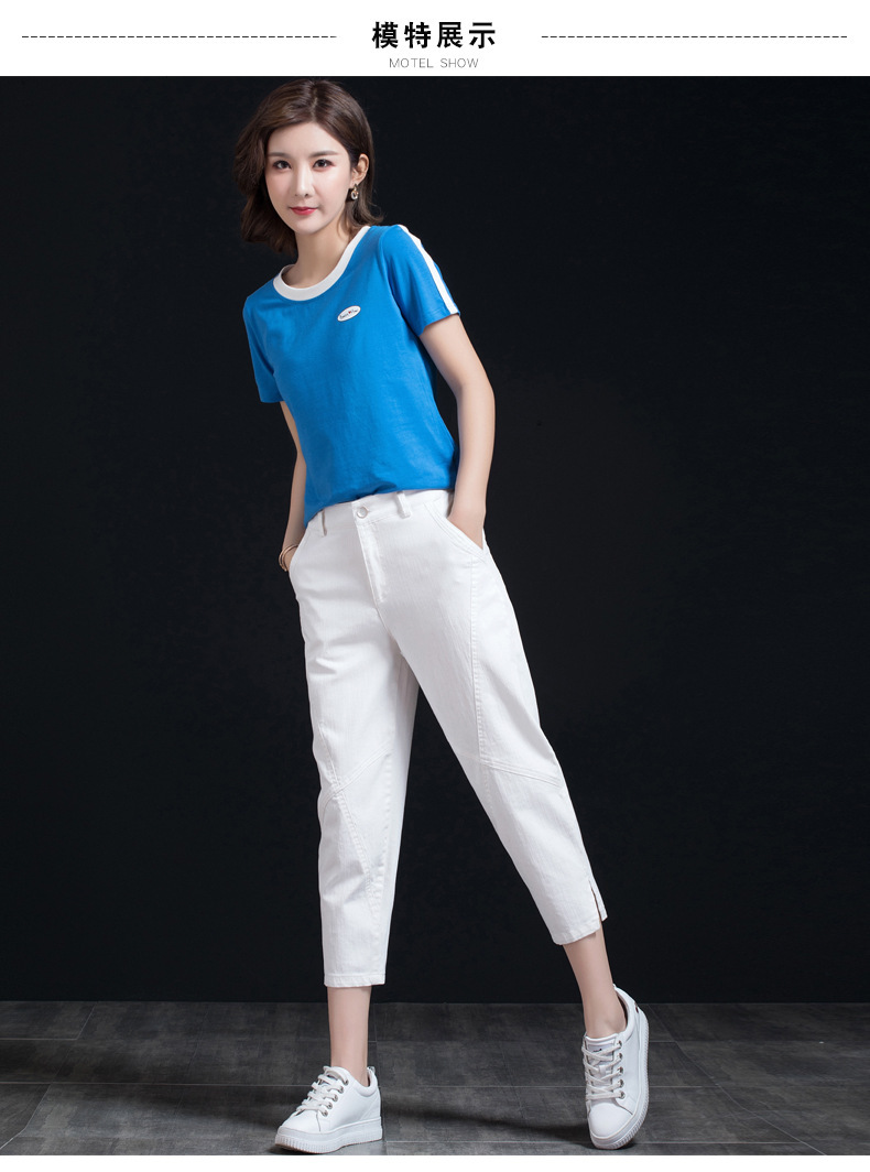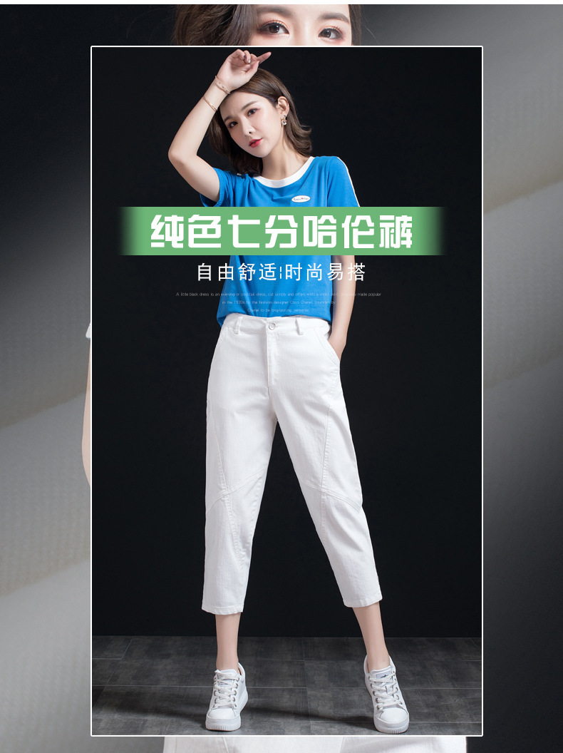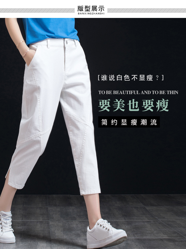胖妹妹夏新薄款,潮高腰宽松七分牛仔裤哈伦老爹萝卜裤S21S886