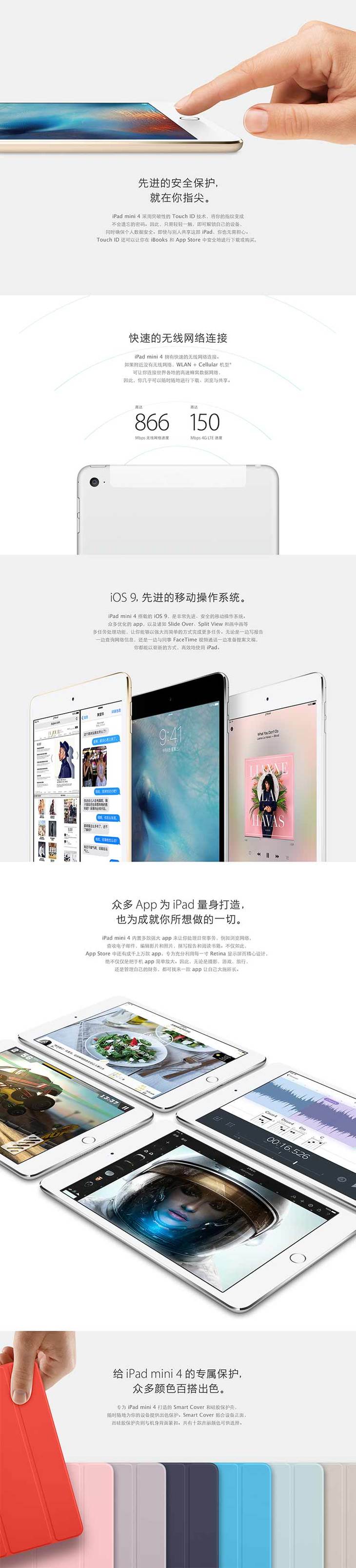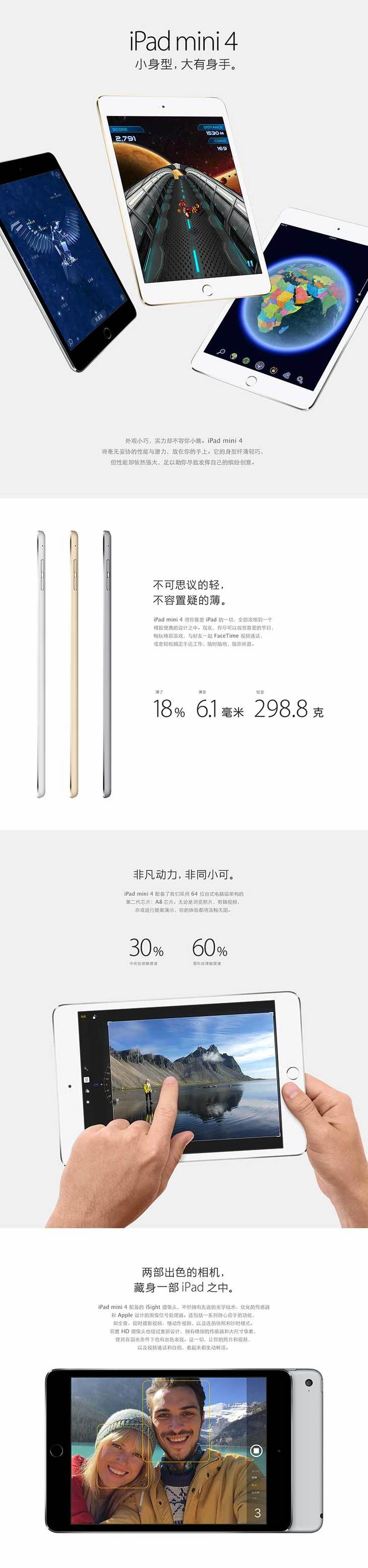 Apple iPad mini 4 平板电脑 7.9英寸(128G WLAN版/A8芯片/Retina显示屏/Touch ID技术 MK9Q2CH)金色