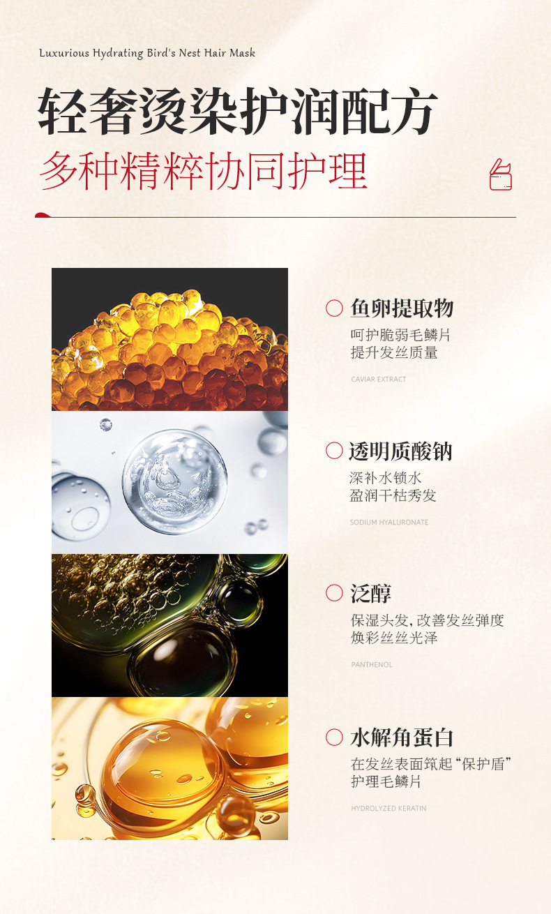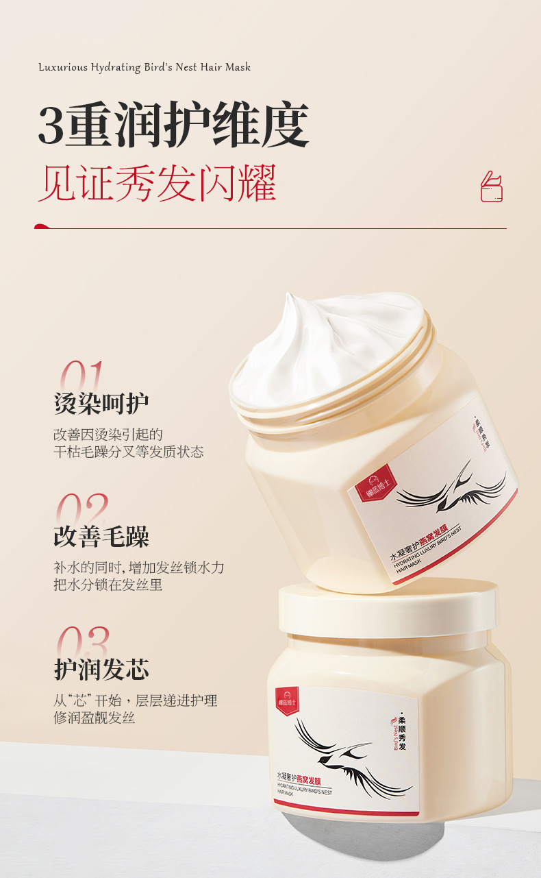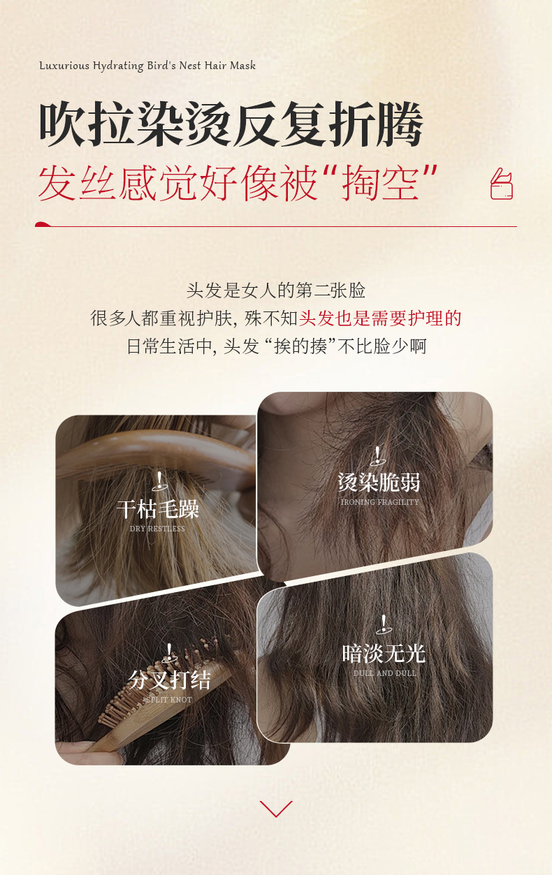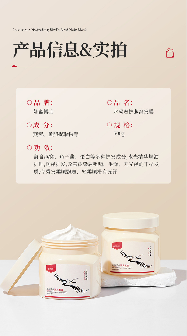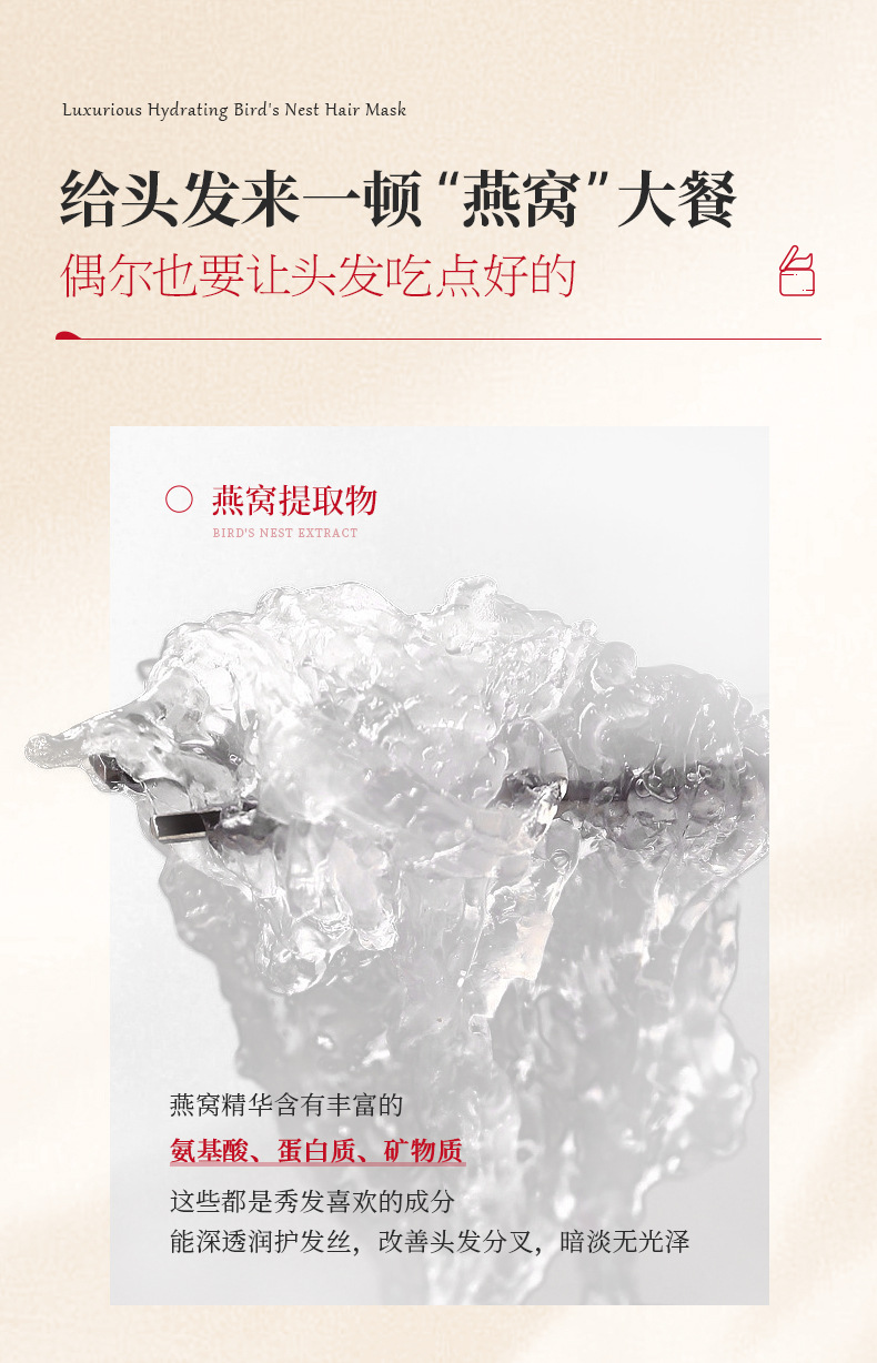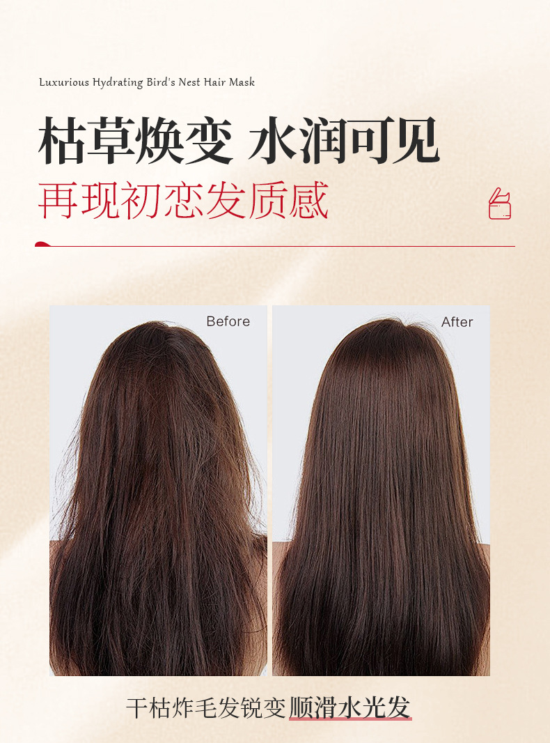 【美容珍品奢护,焕启干枯发丝光泽】水凝奢护燕窝发膜 滋润营养柔顺光泽 改善毛躁 修护受损发质 给头发来一顿“燕窝"大餐 偶尔也要让头发吃点好的-QQ