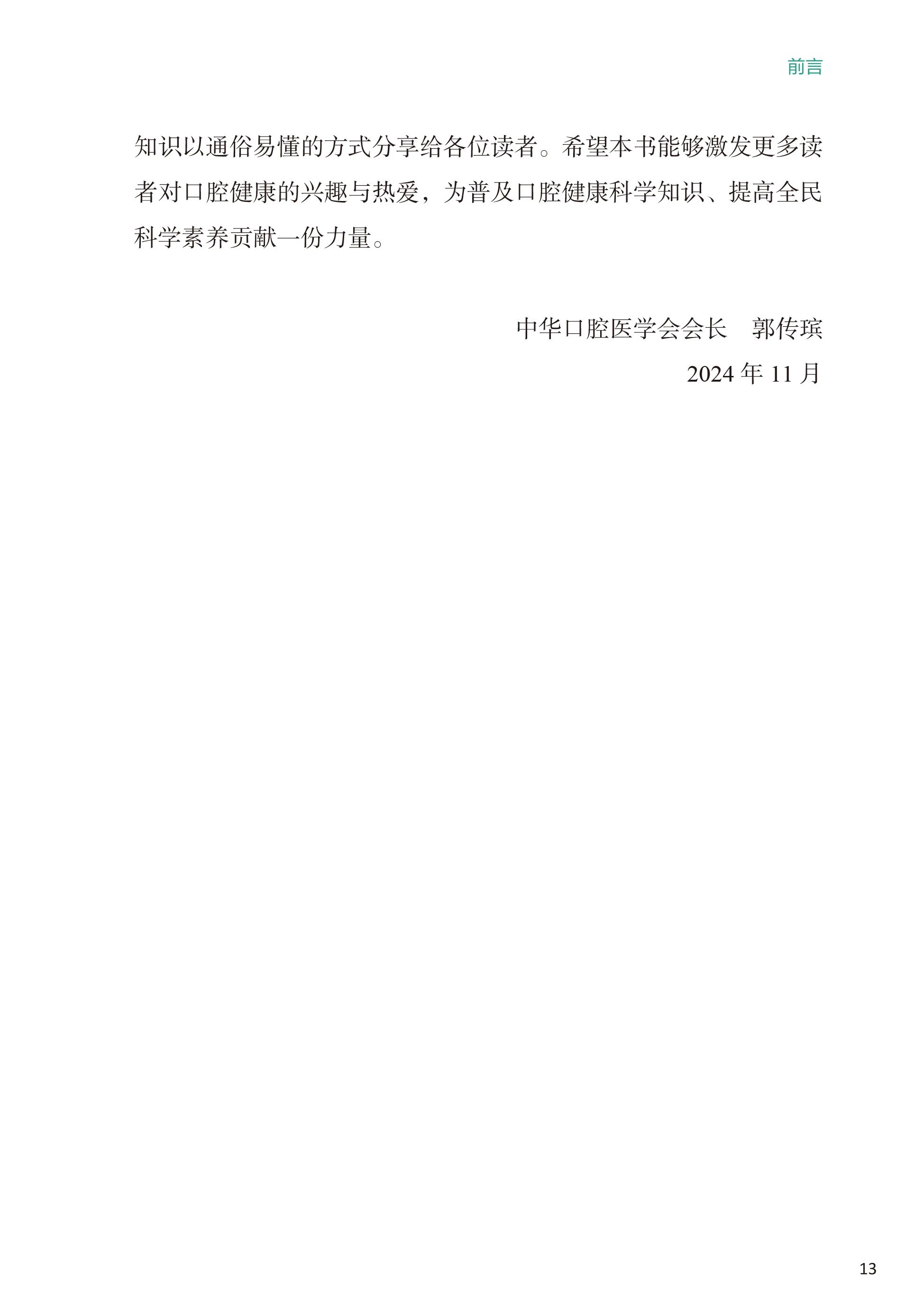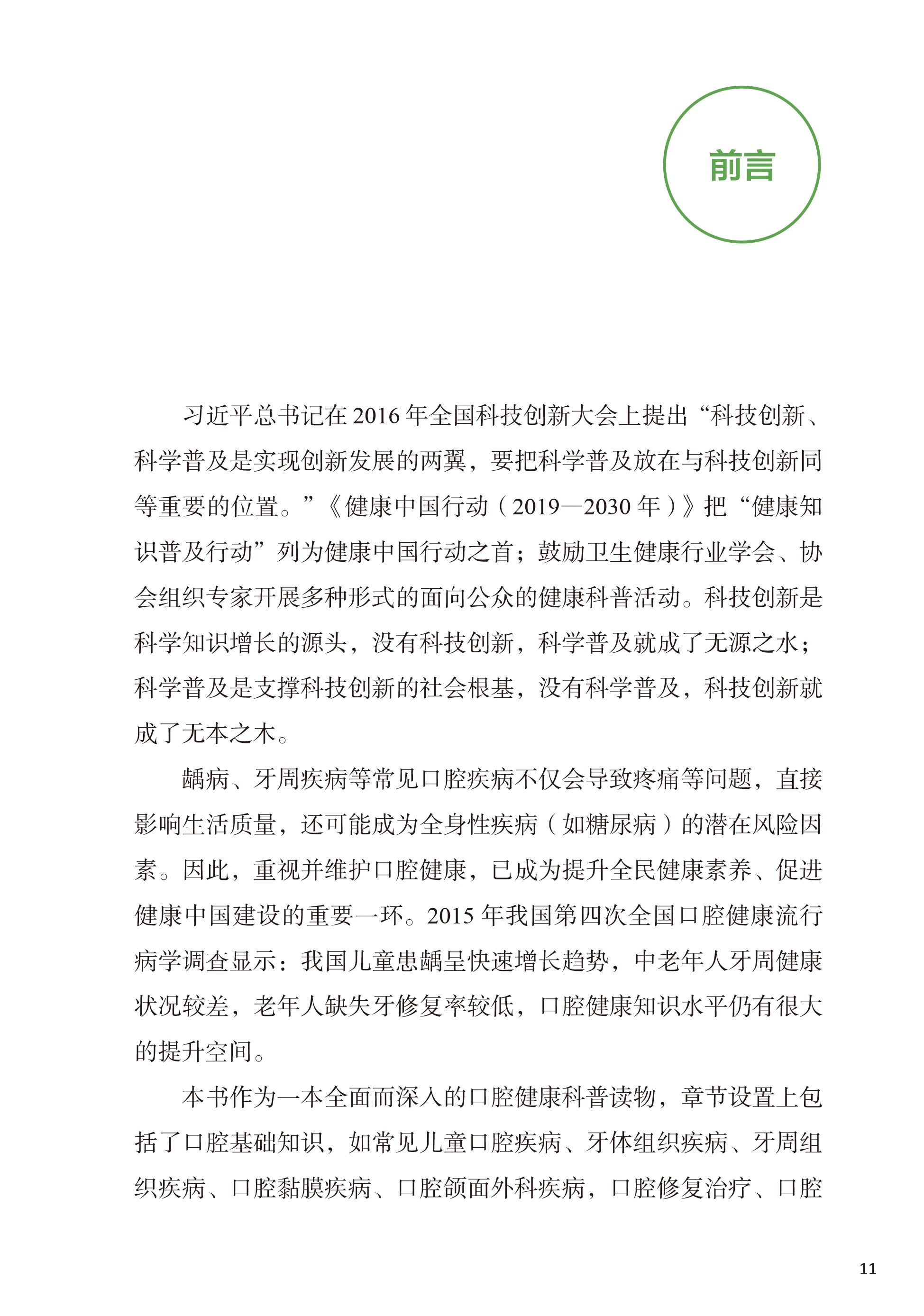 口腔疾病不仅会引起疼痛等问题,直接影响人们生活质量,还可能成为全身性疾病的潜在风险因素。本书聚焦全年龄段群众关心的口腔健康热点问题,结合真实贴切的生活案例,按照认识→揭秘→预防防治结合体系编写,图文并茂,配以视频、自测题等融媒体资料,对提升全人群口腔健康意识和行为能力,促进全民健康知识水平提升有重要意义。