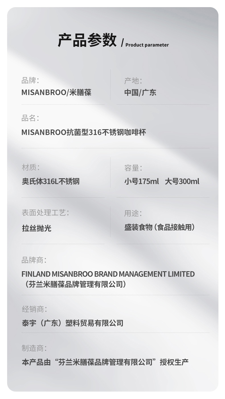 【芬兰MISANBROO】米膳葆抗菌型316不锈钢咖啡杯