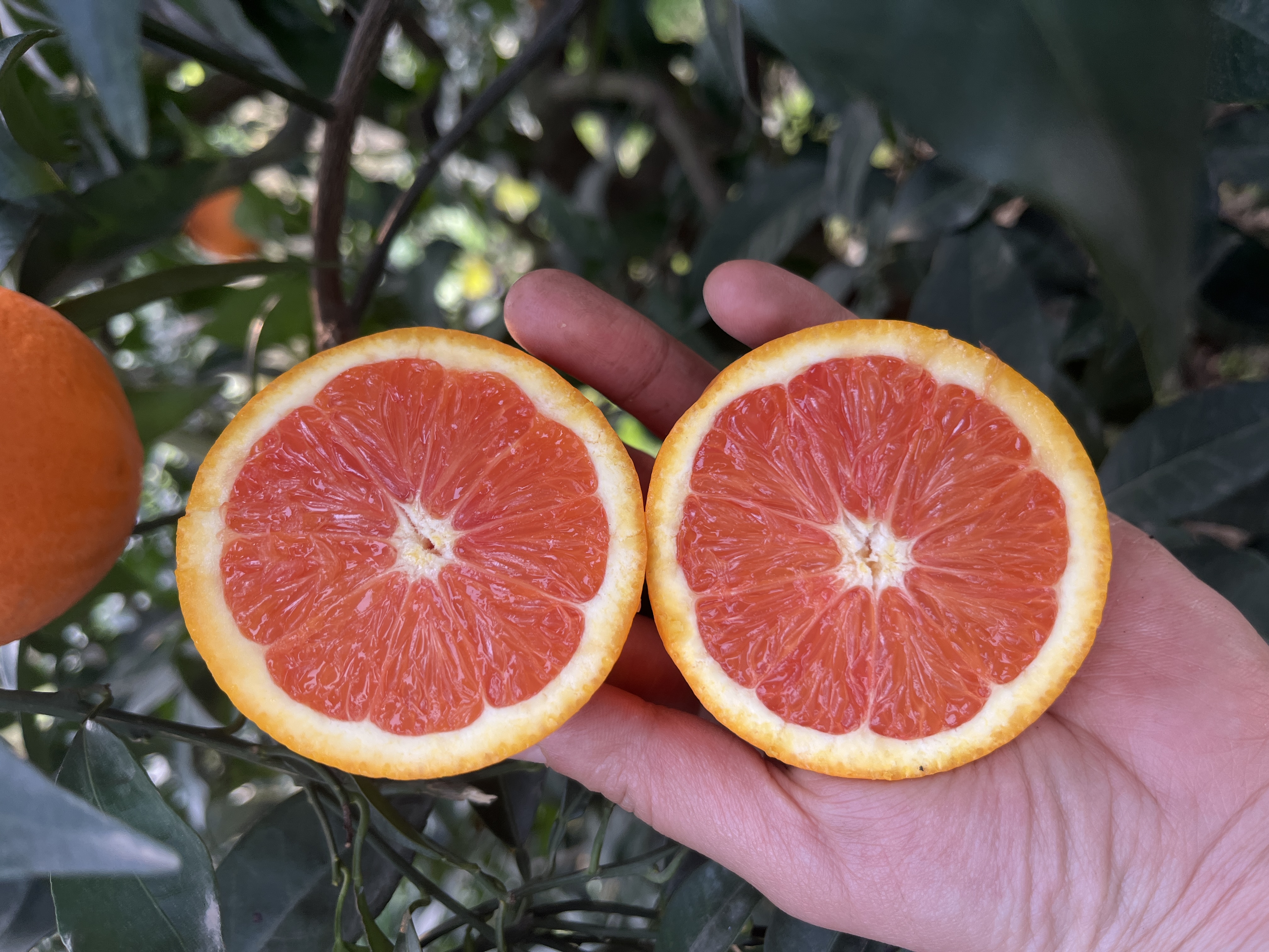 中华红血橙:奉节中华红血橙个圆,个头不大,皮色金黄,果肉和汁液为血红色,富含维C、花青素等,有一种特别的芬芳香味,清甜可口。深得女性顾客的青睐。