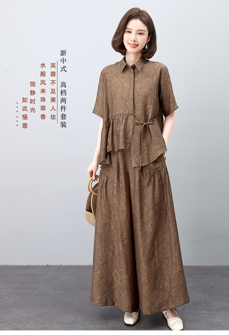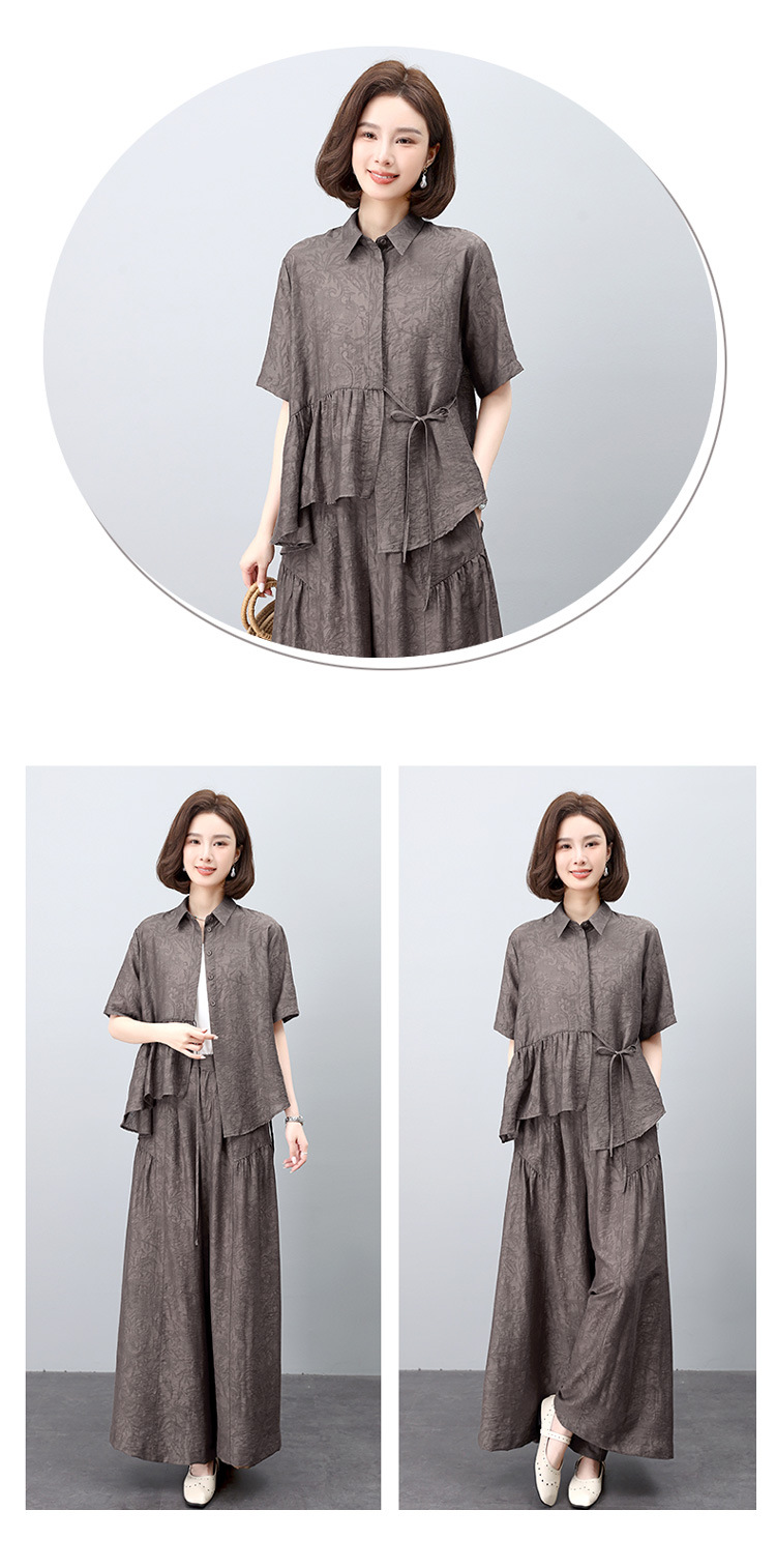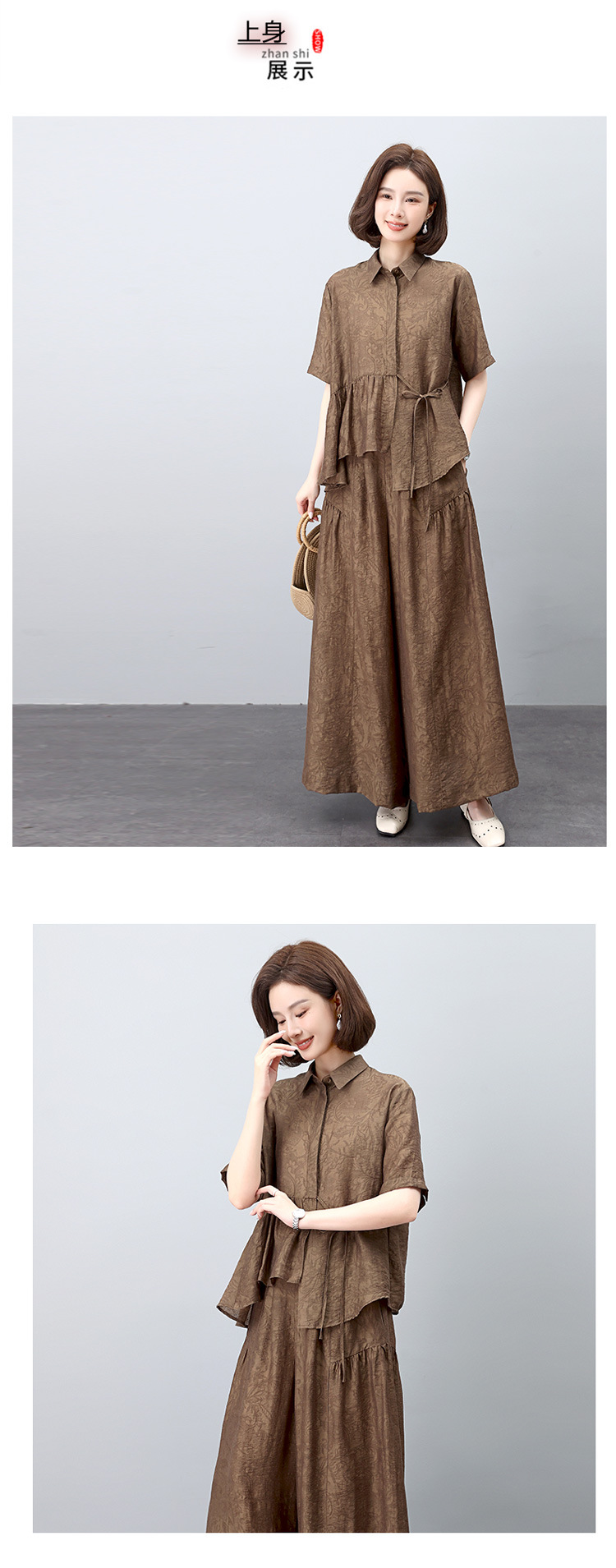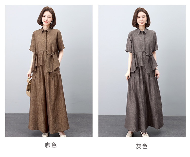 HRXYYH60632025夏装新款天丝衬衫阔腿裤套装女夏中年洋气减龄时尚高端宽松两