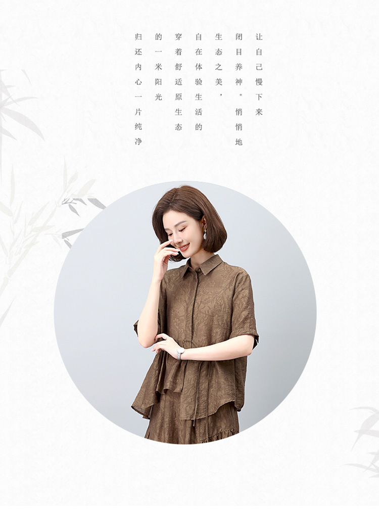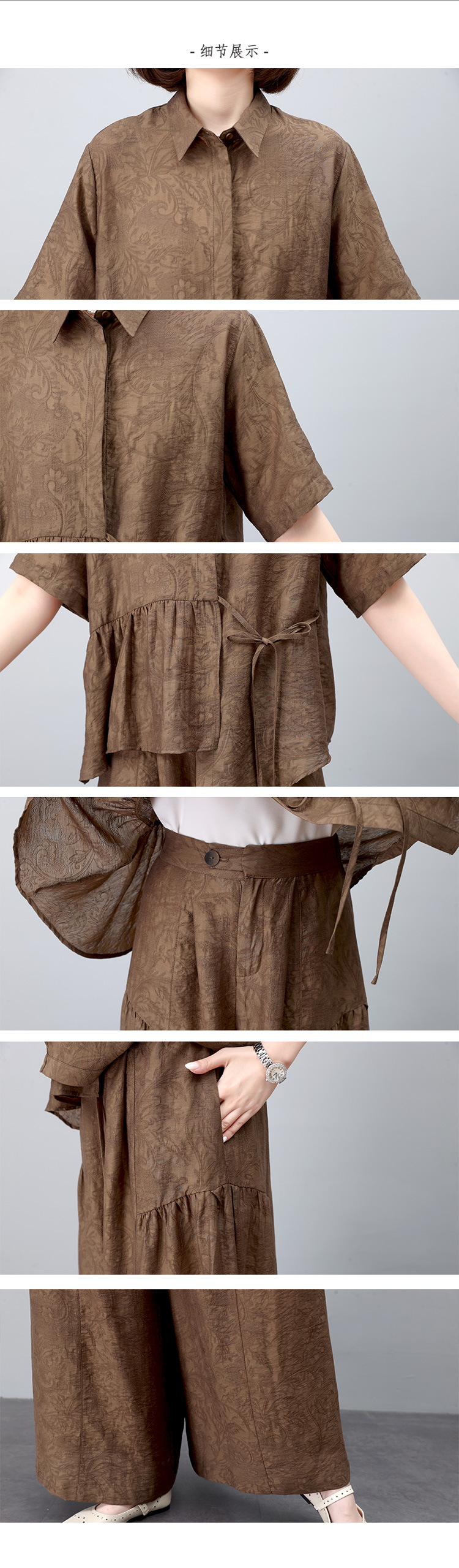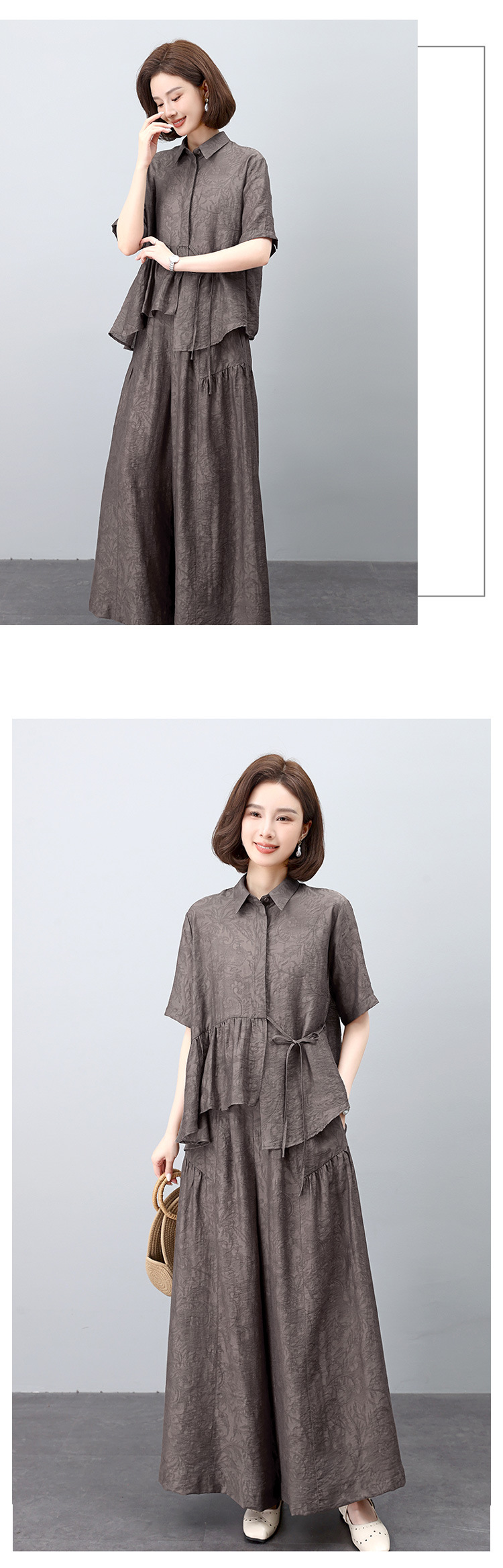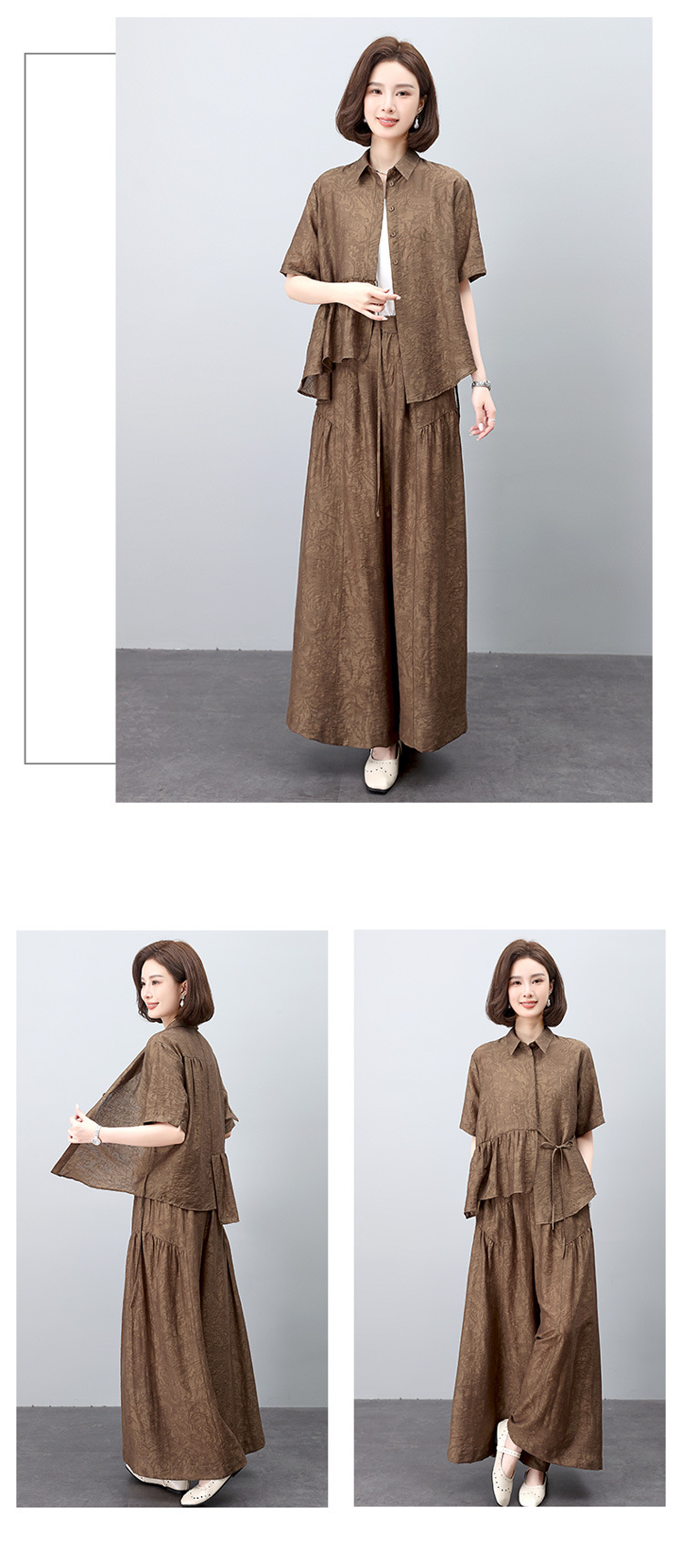 HRXYYH60632025夏装新款天丝衬衫阔腿裤套装女夏中年洋气减龄时尚高端宽松两