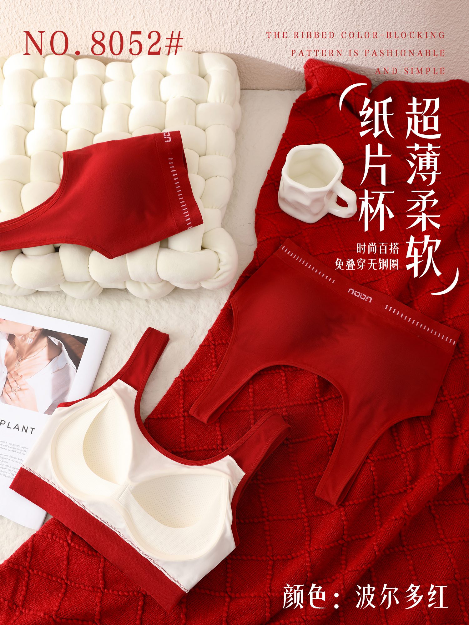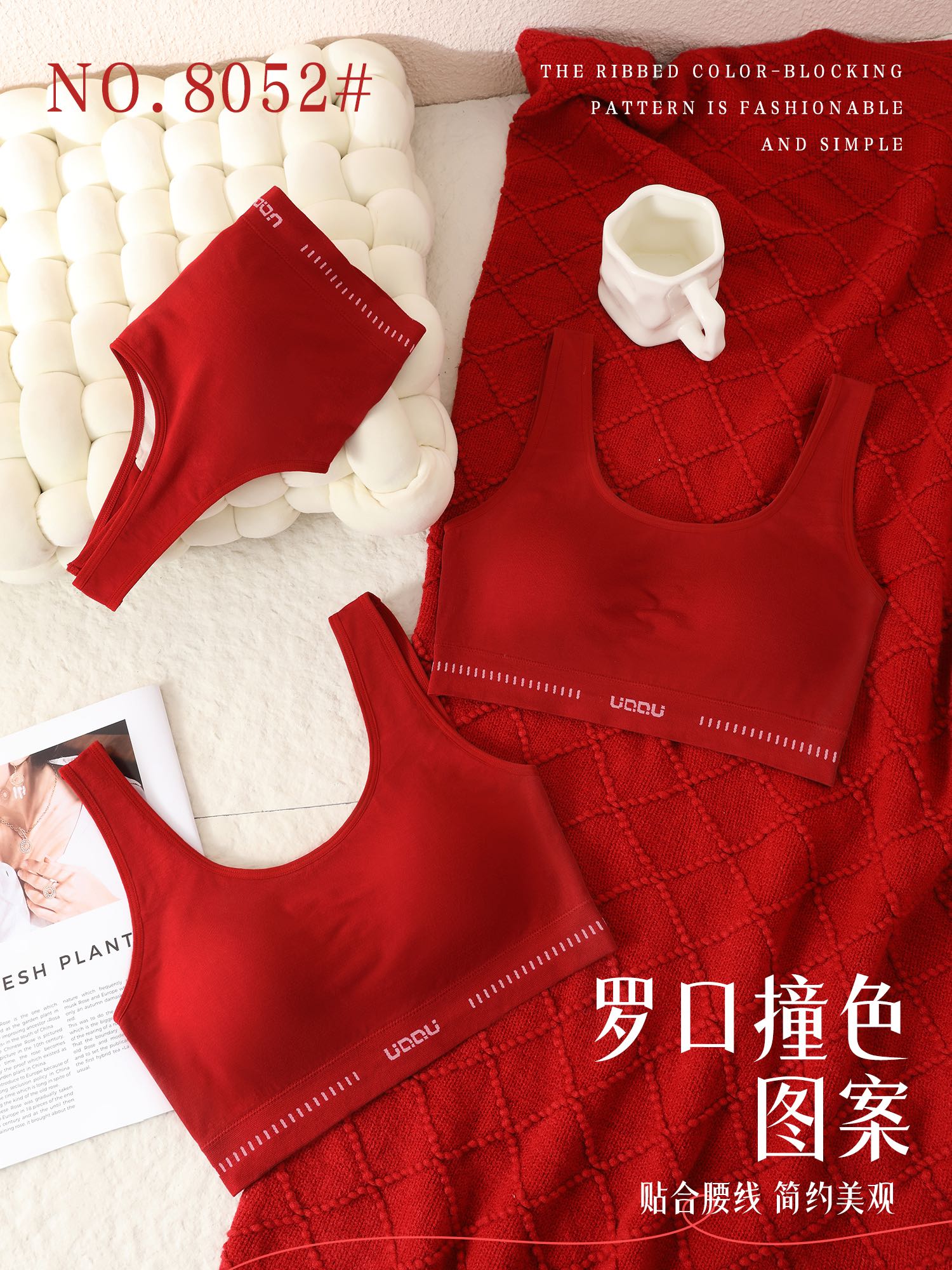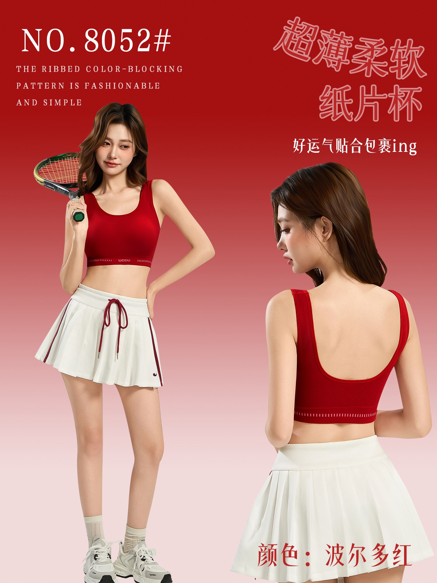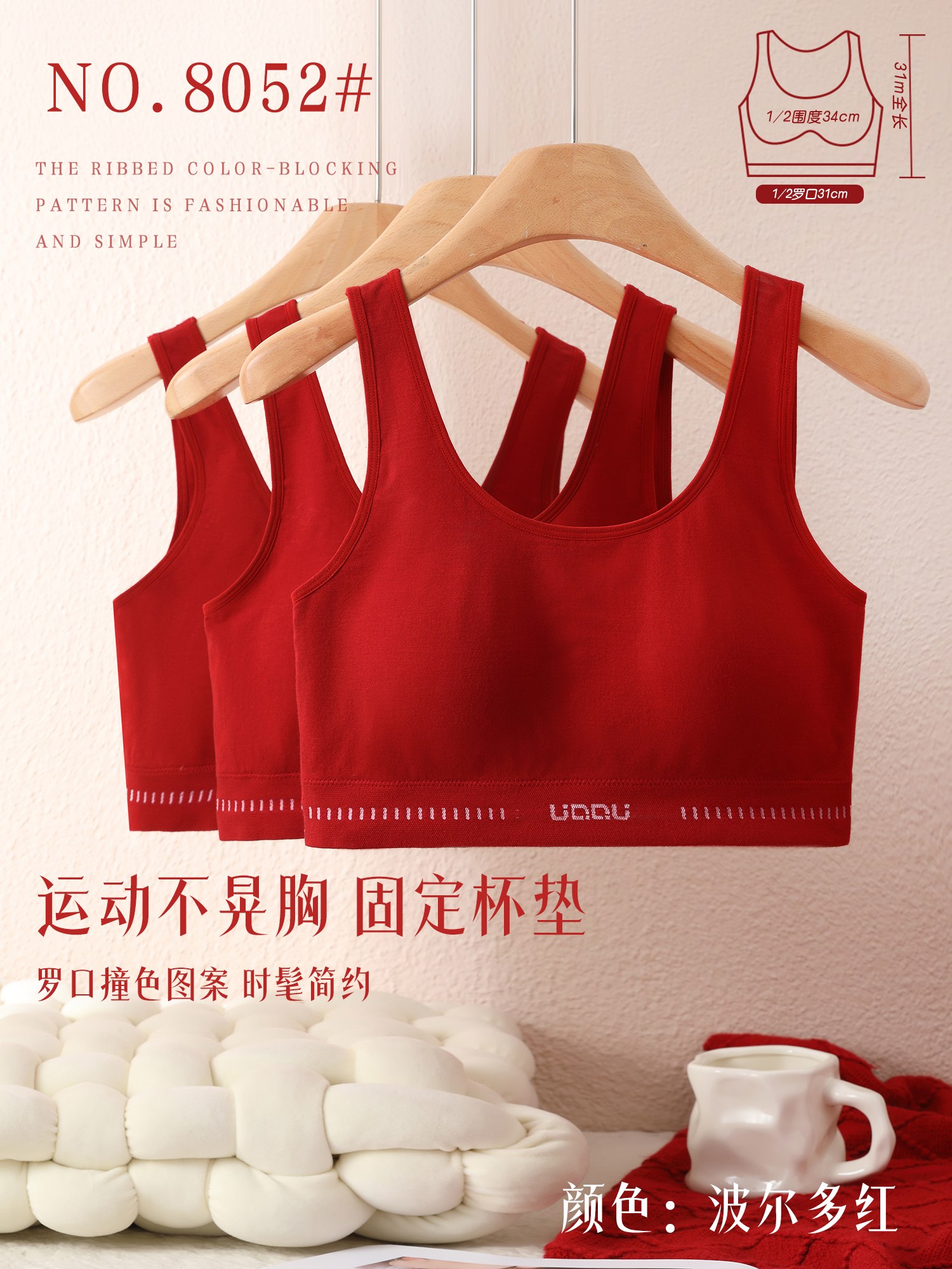 【品名】LS竹纤维女士固定杯罗口撞色美背文胸8052