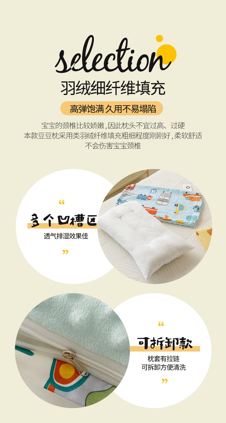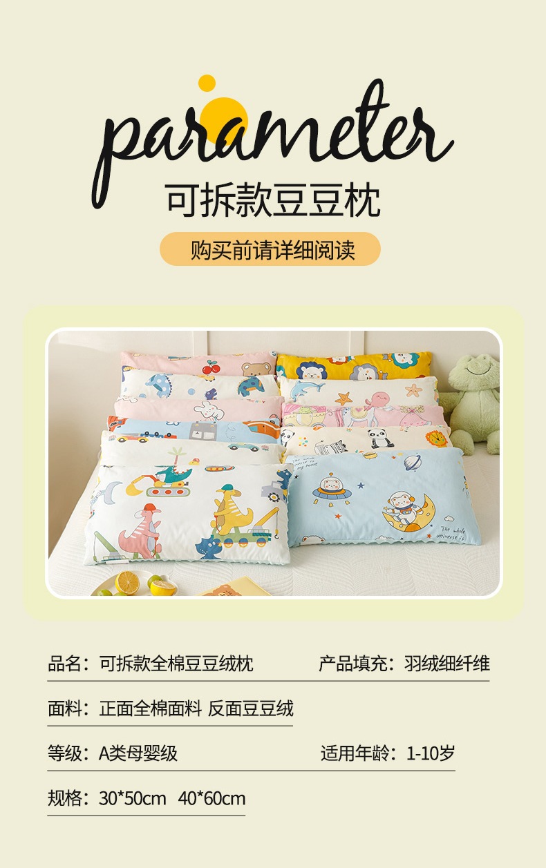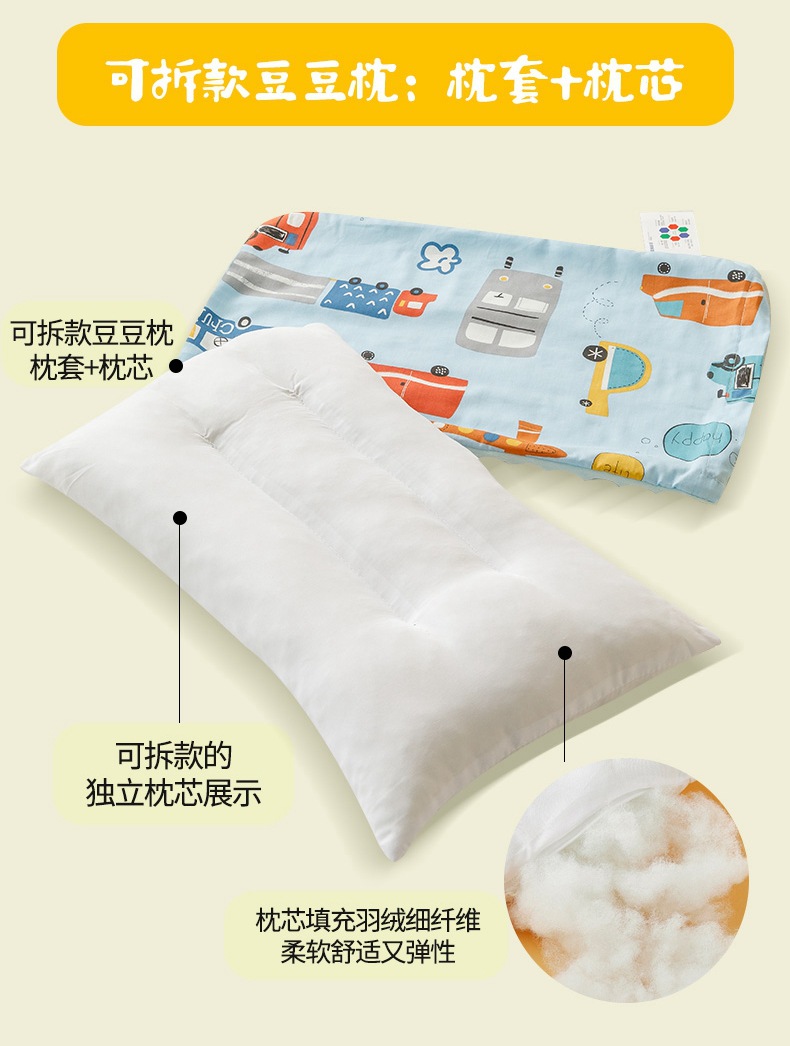 【可拆款全棉豆豆枕,双面可用宠爱加倍】陪伴健康成全儿童安抚豆豆枕,婴儿孕妇枕敏感肌亦可裸睡呵护娇嫩肌肤,透气面料,绒底加固不脱落,1-3-6岁以上宝宝枕头学生幼儿园2婴儿枕芯