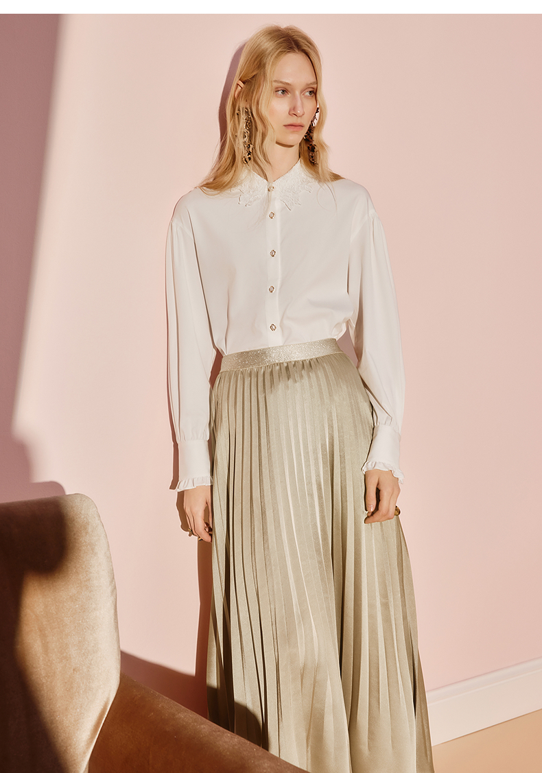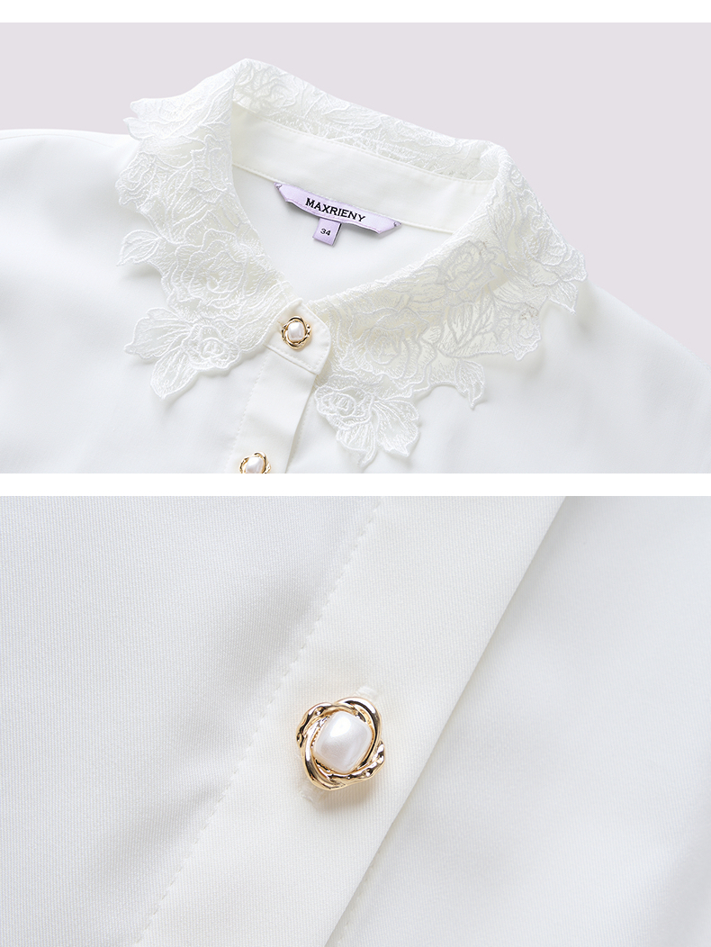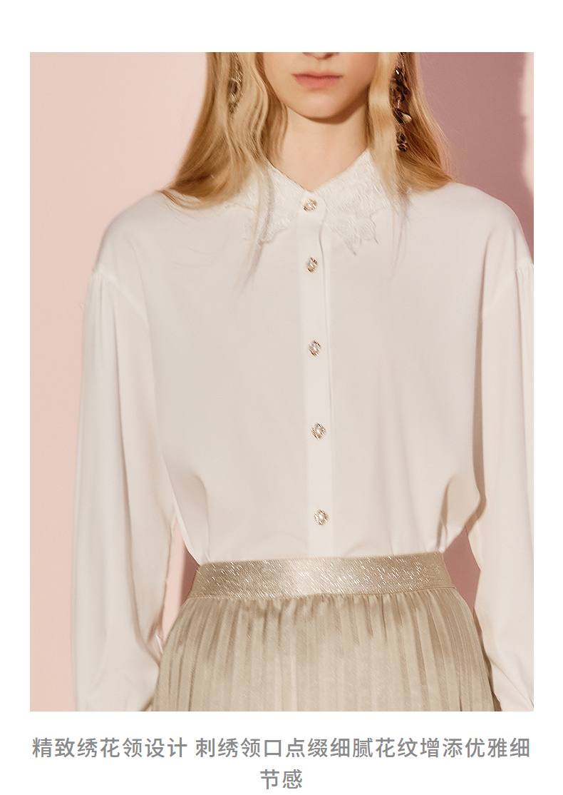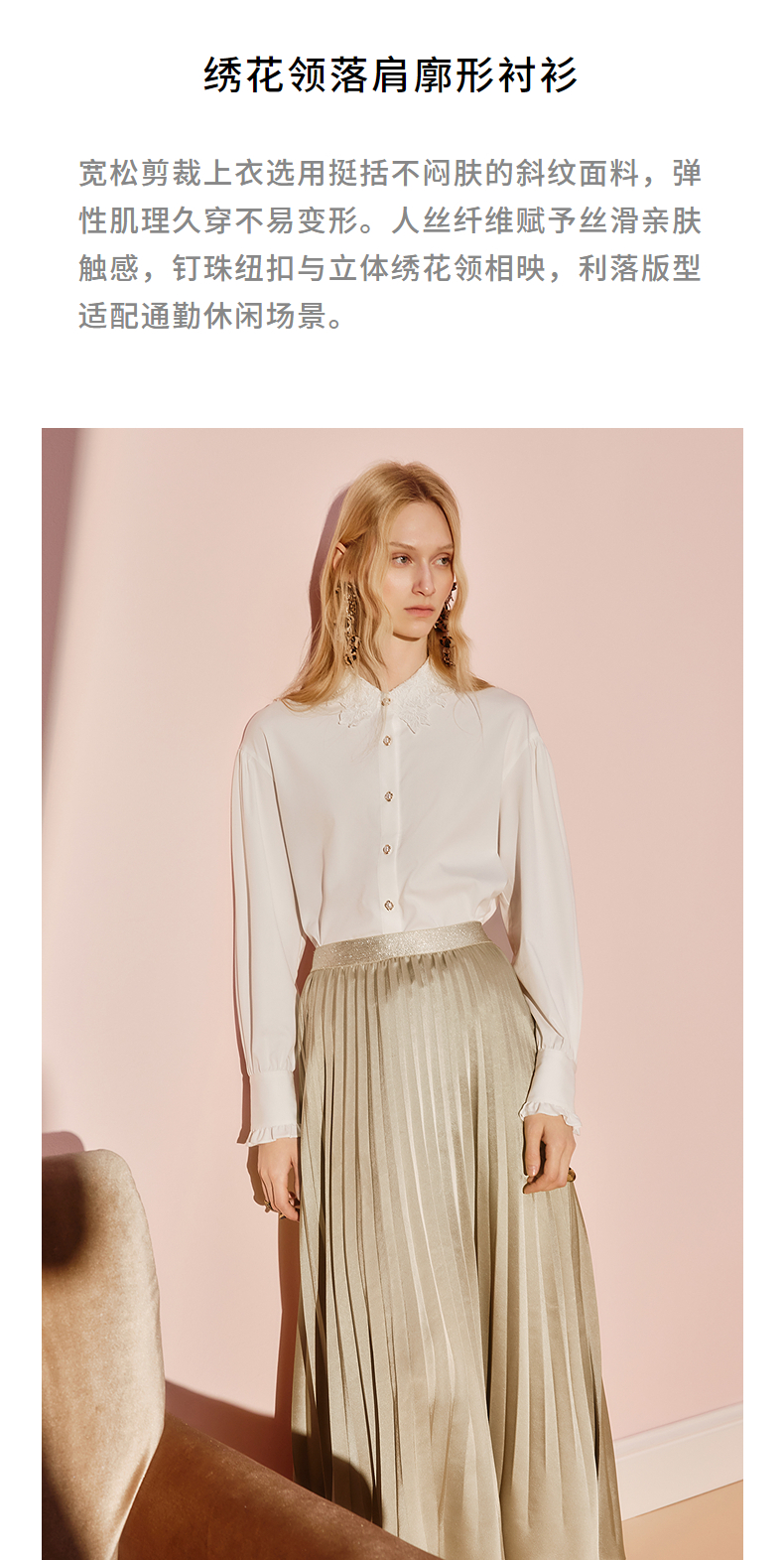 MAXRIENY宫廷复古气质感穿搭绣花领落肩廓形衬衫宽松长袖上衣秋(货号:MS86TP514)