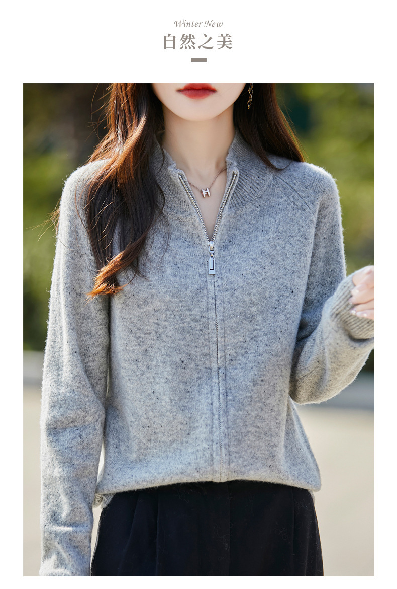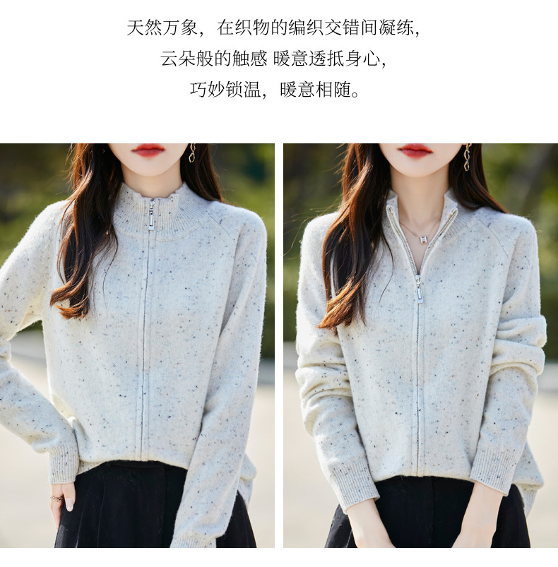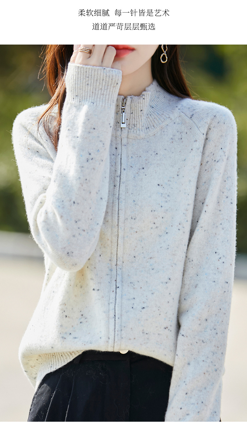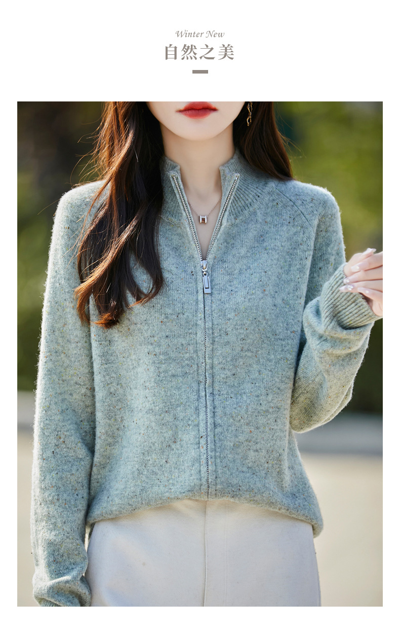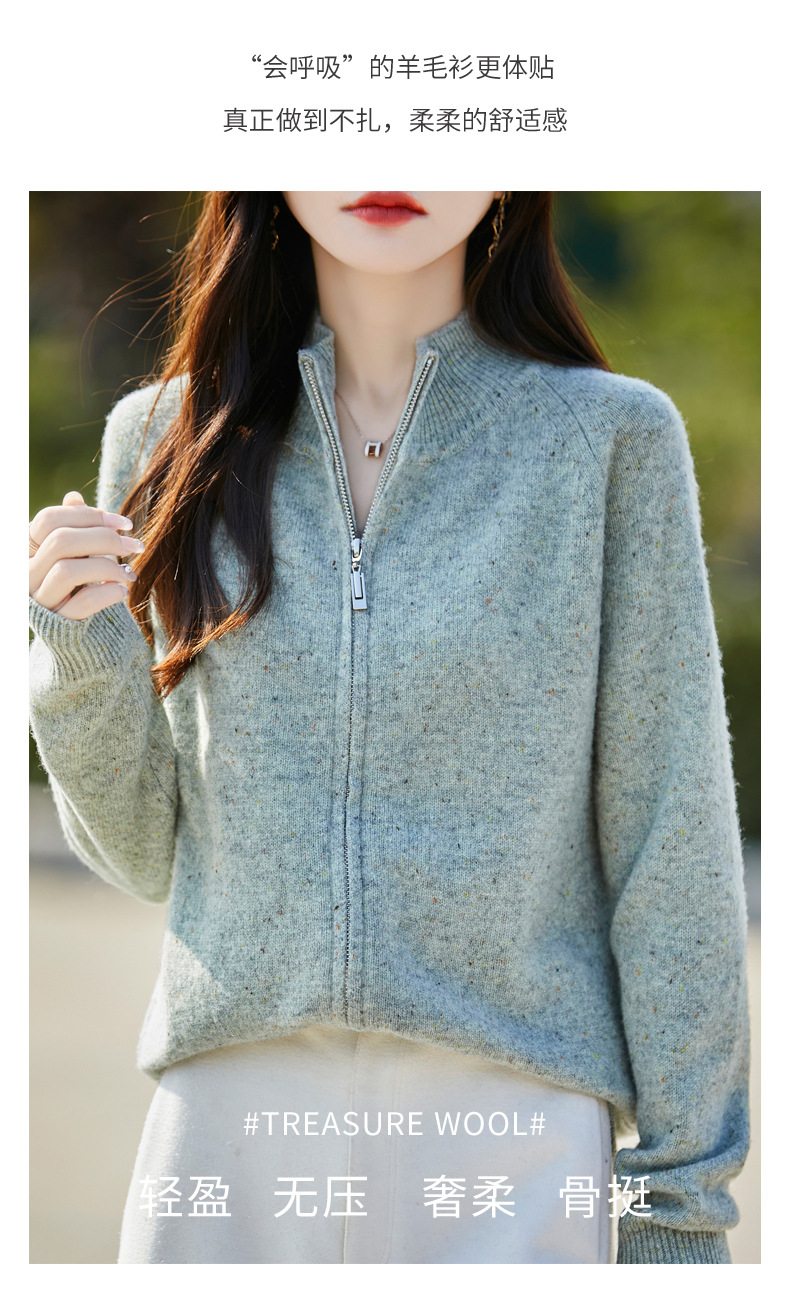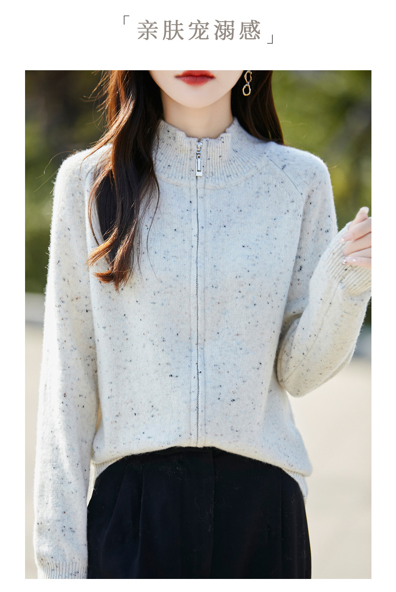 丁摩 100%纯羊毛点子纱拉链开衫女ZM-086-75