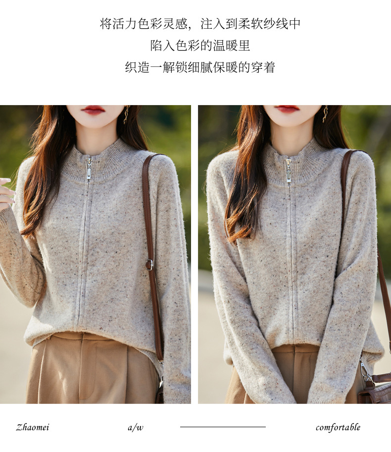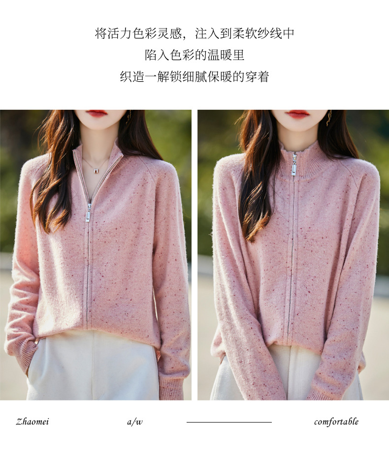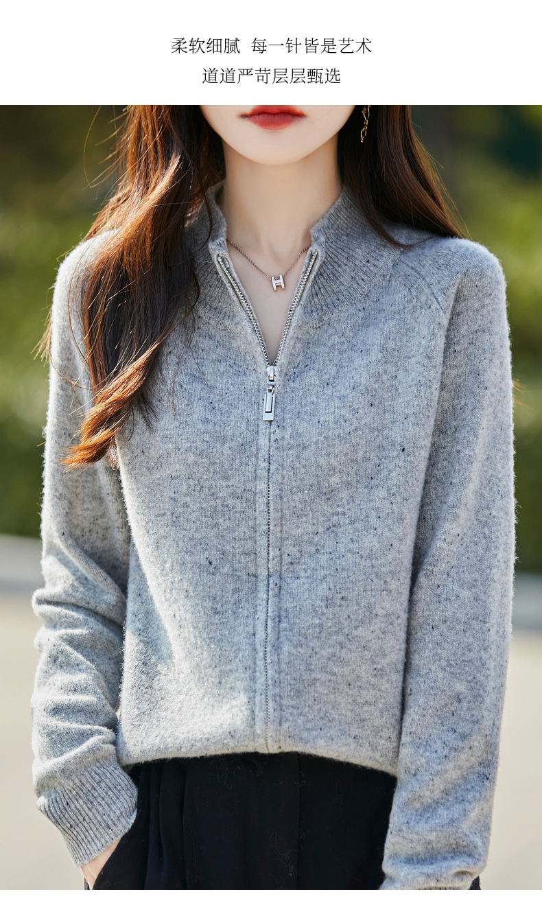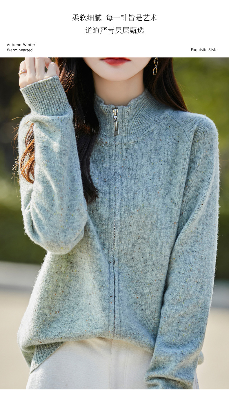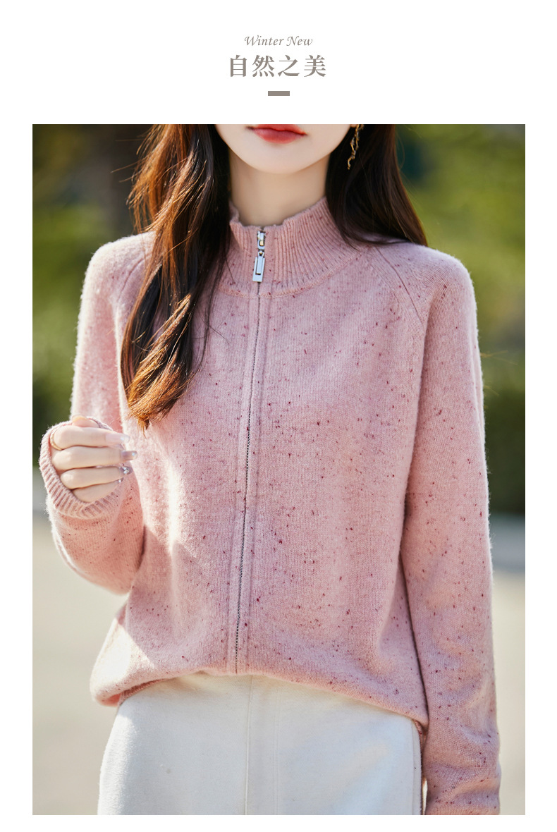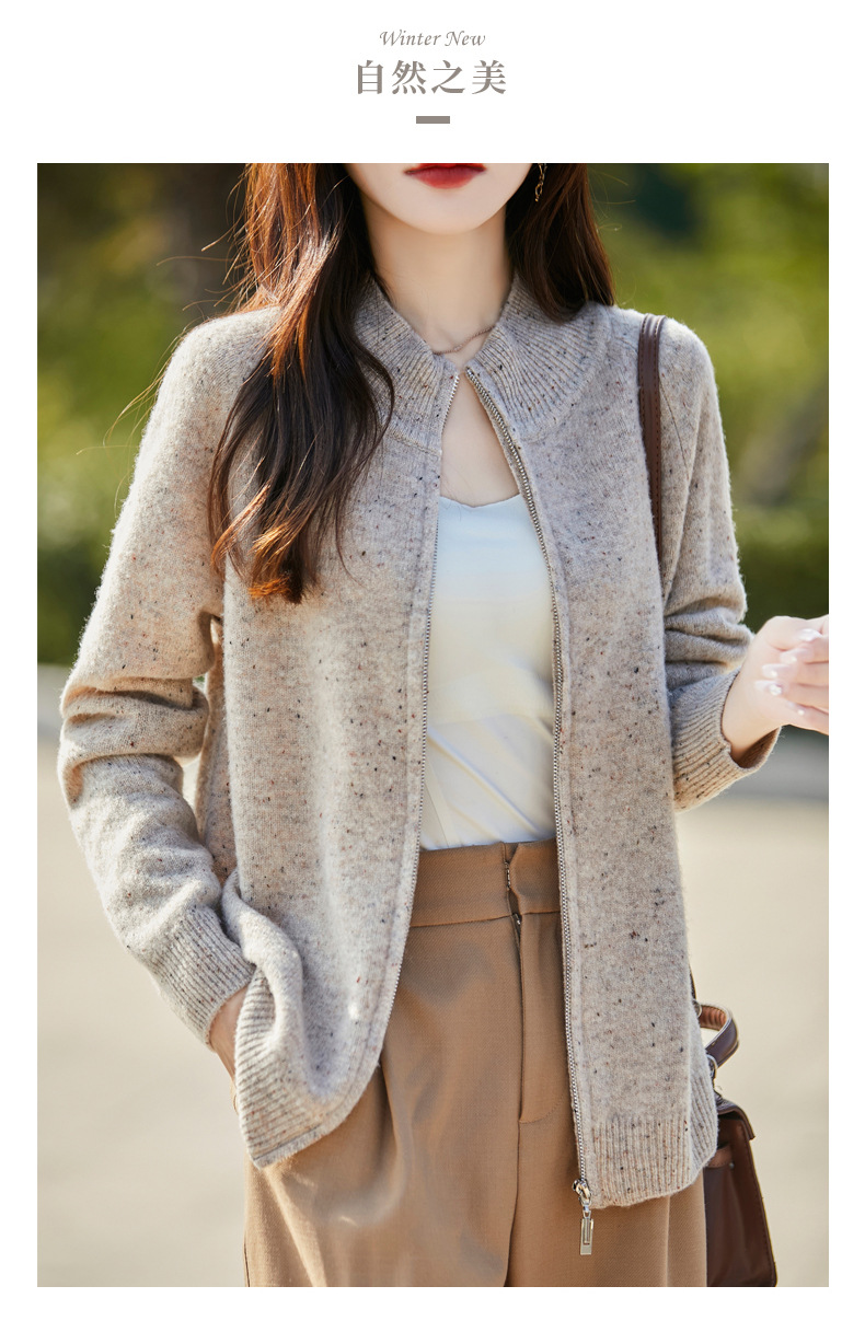 丁摩 100%纯羊毛点子纱拉链开衫女ZM-086-75