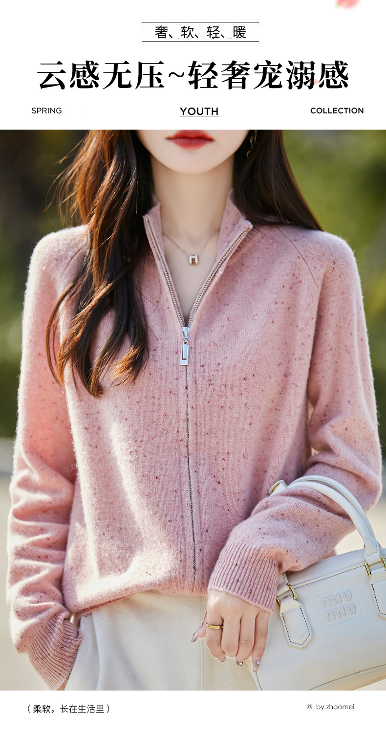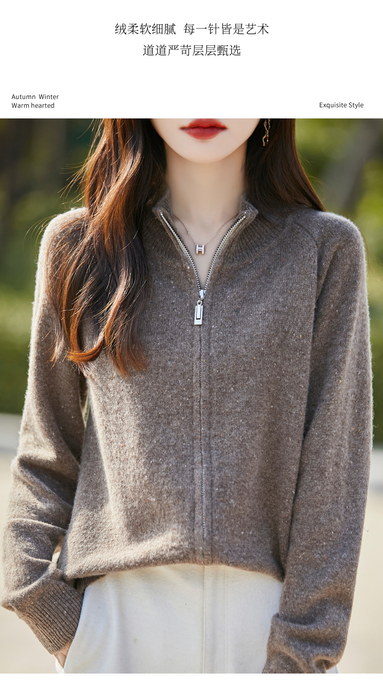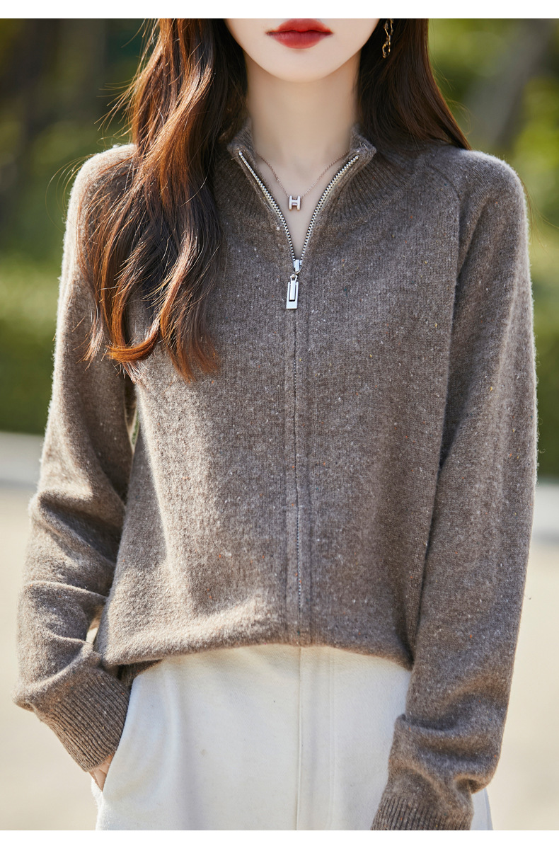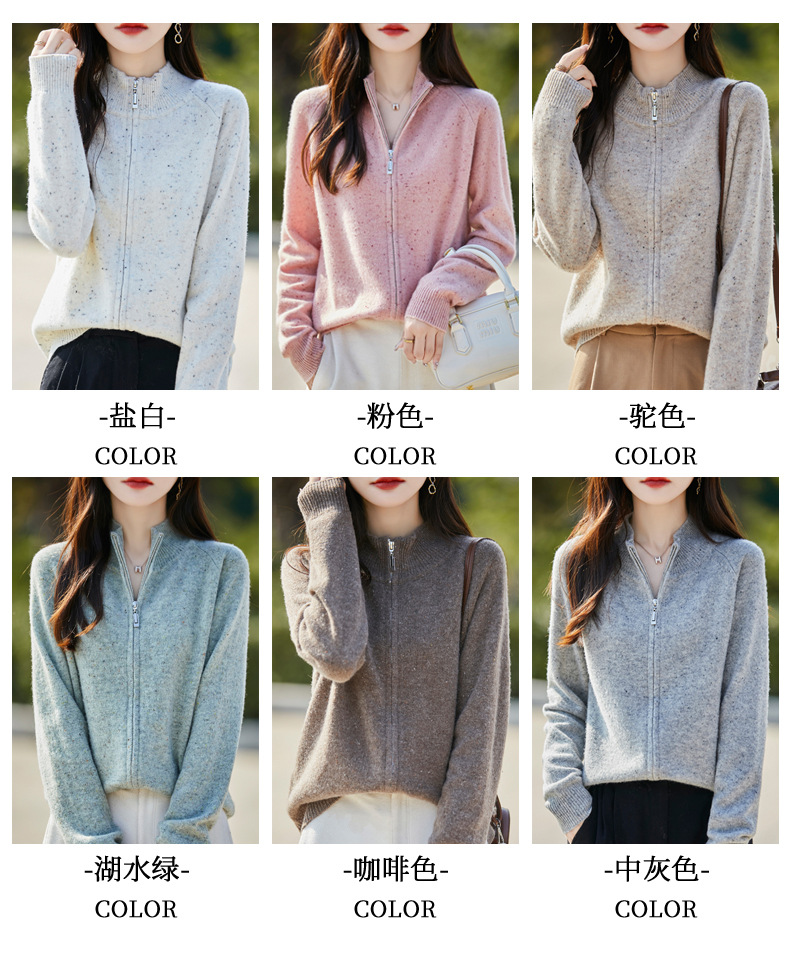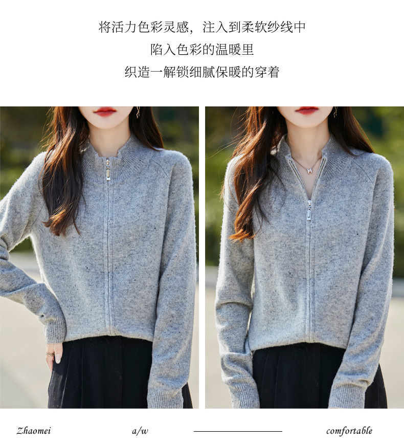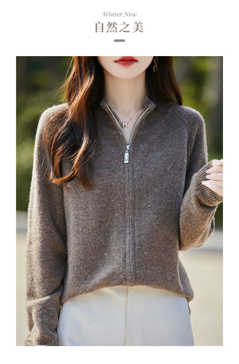 丁摩 100%纯羊毛点子纱拉链开衫女ZM-086-75