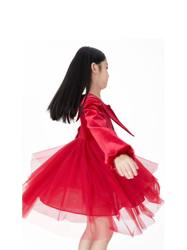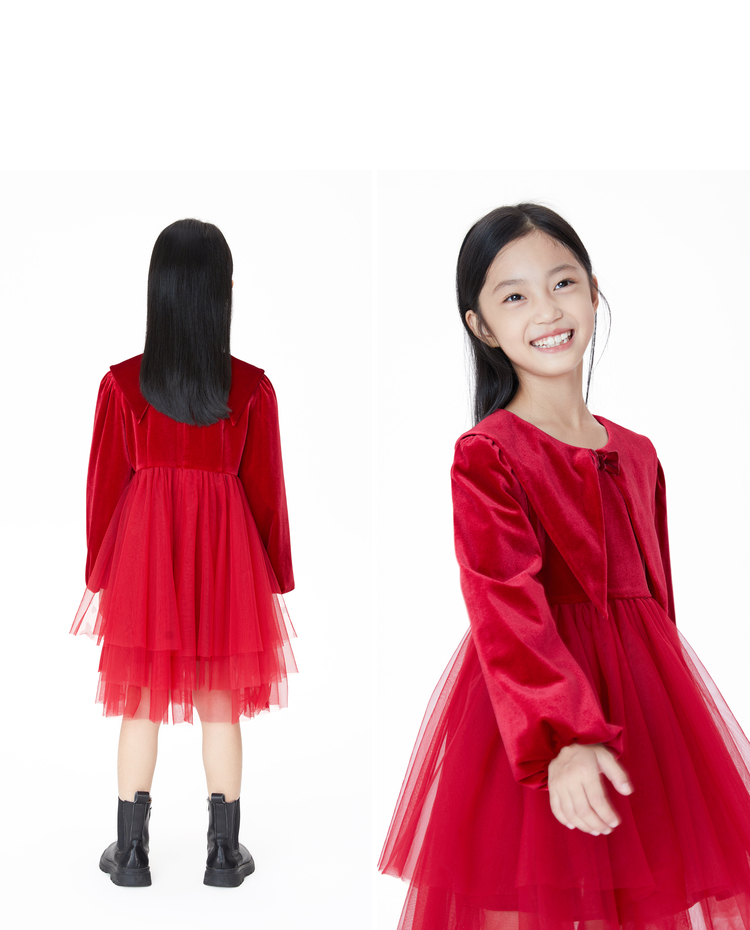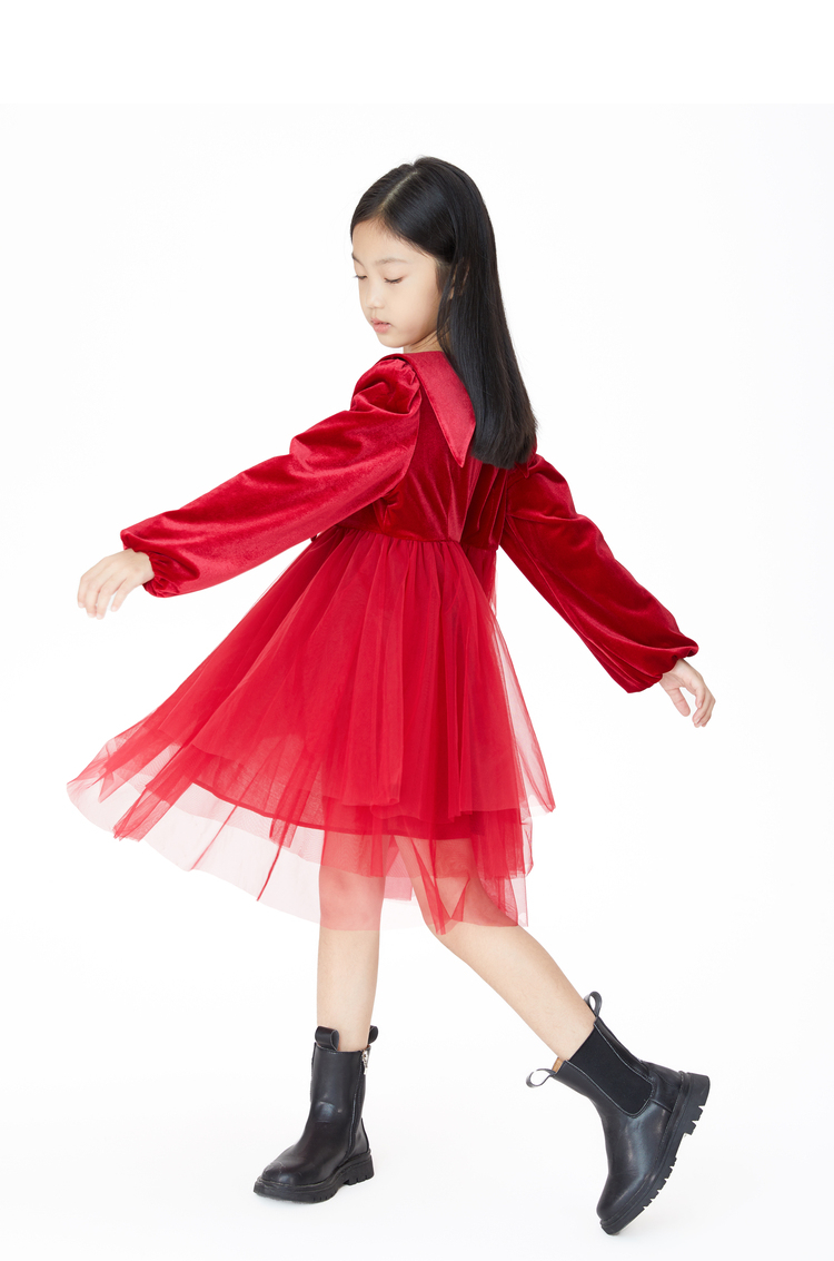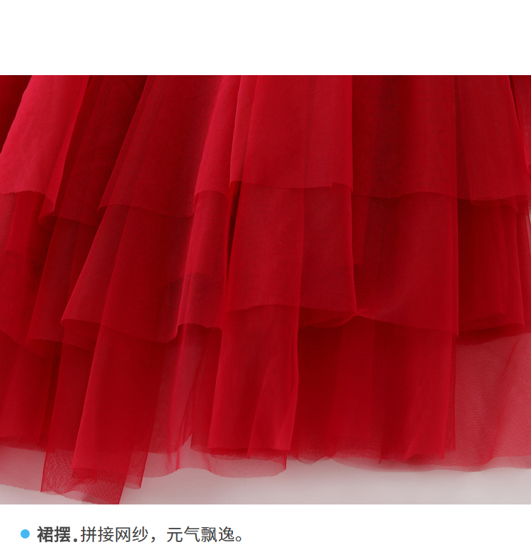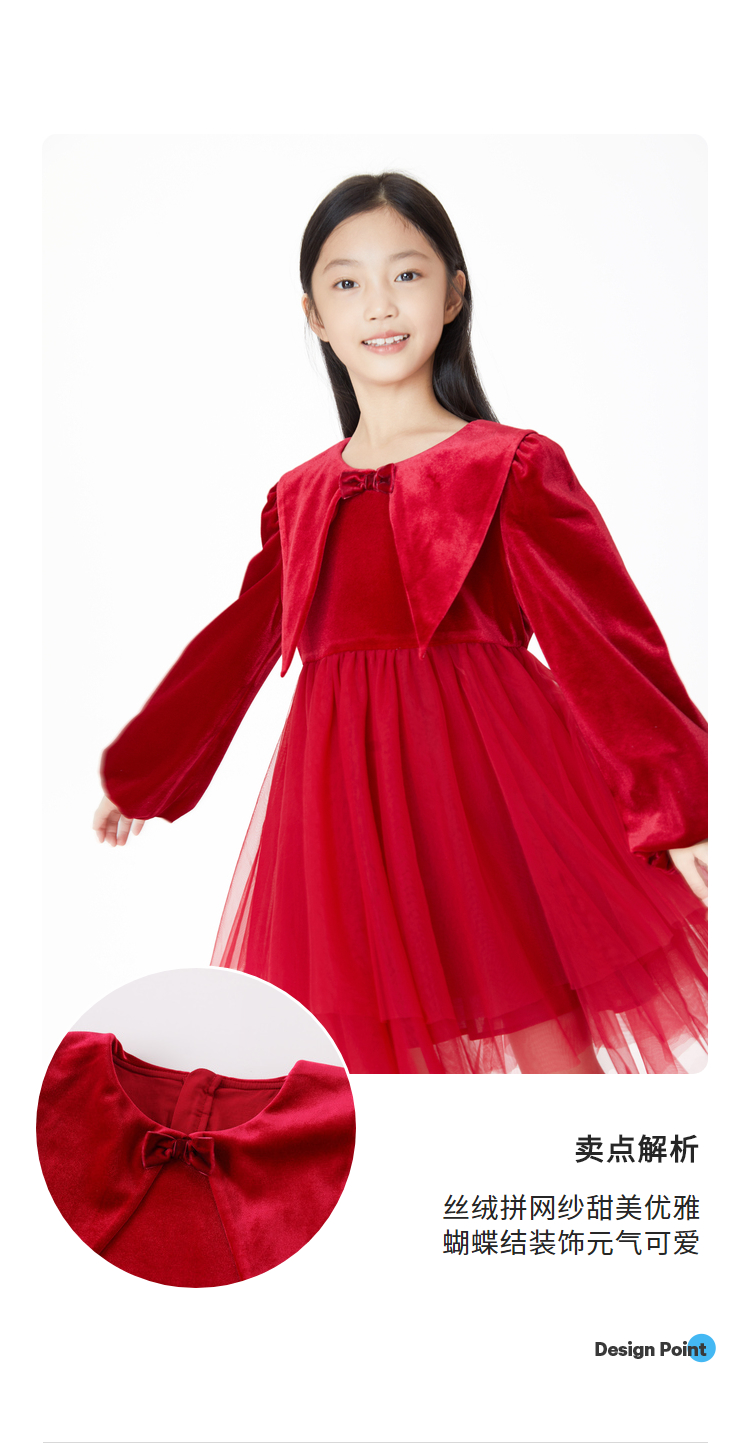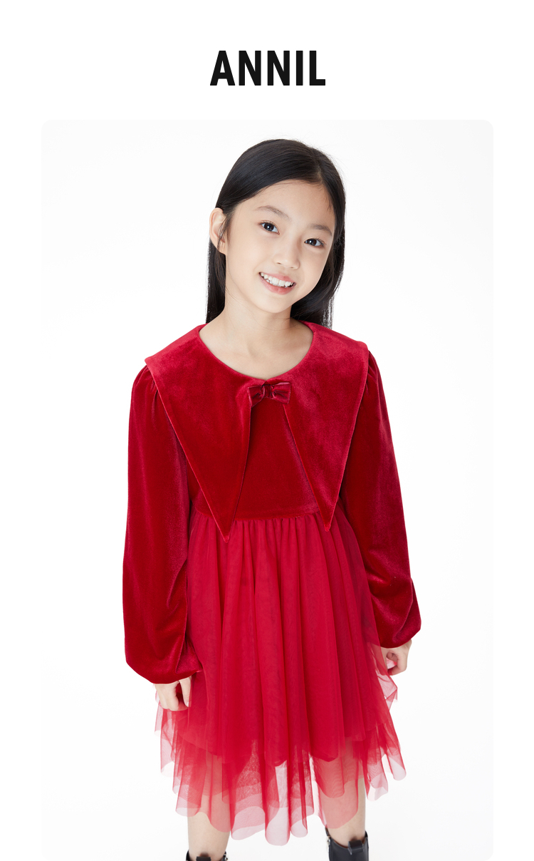 【实体店同款】【新年红】女童连衣裙公主裙秋新款长袖裙子安奈儿童装AG313579