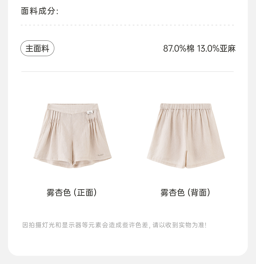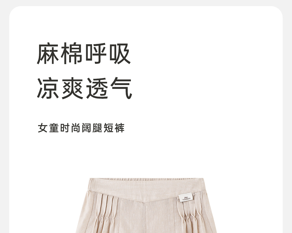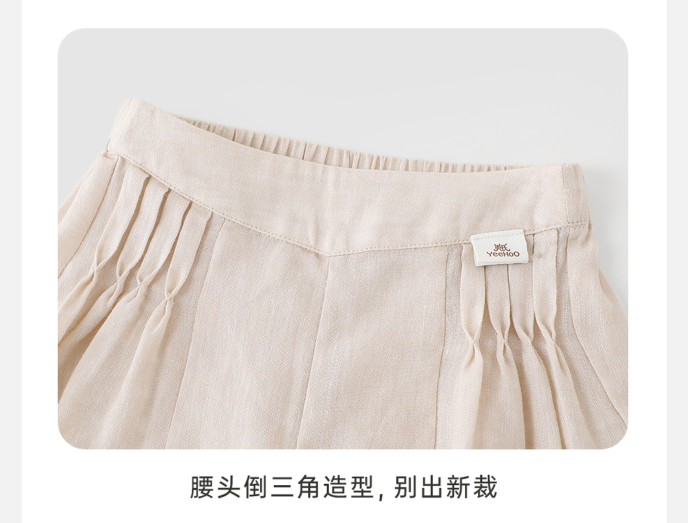 【高定系列】英氏儿童裤子夏季亚麻透气女童短裤中大童宽松休闲裤