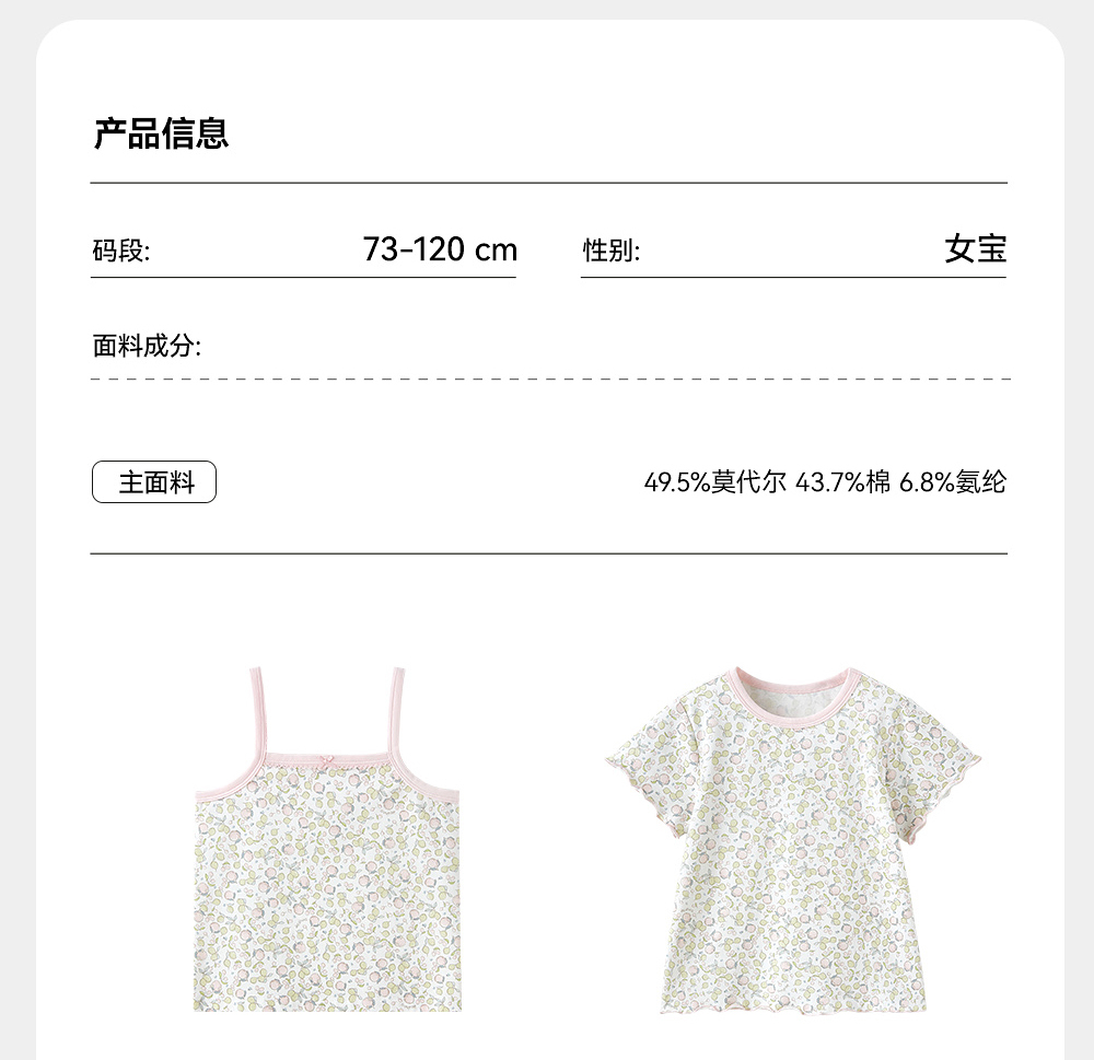 【商场同款】英氏儿童家居服夏季抗菌莫代尔女童家居睡衣背心短裤