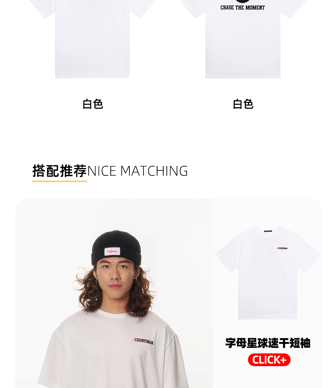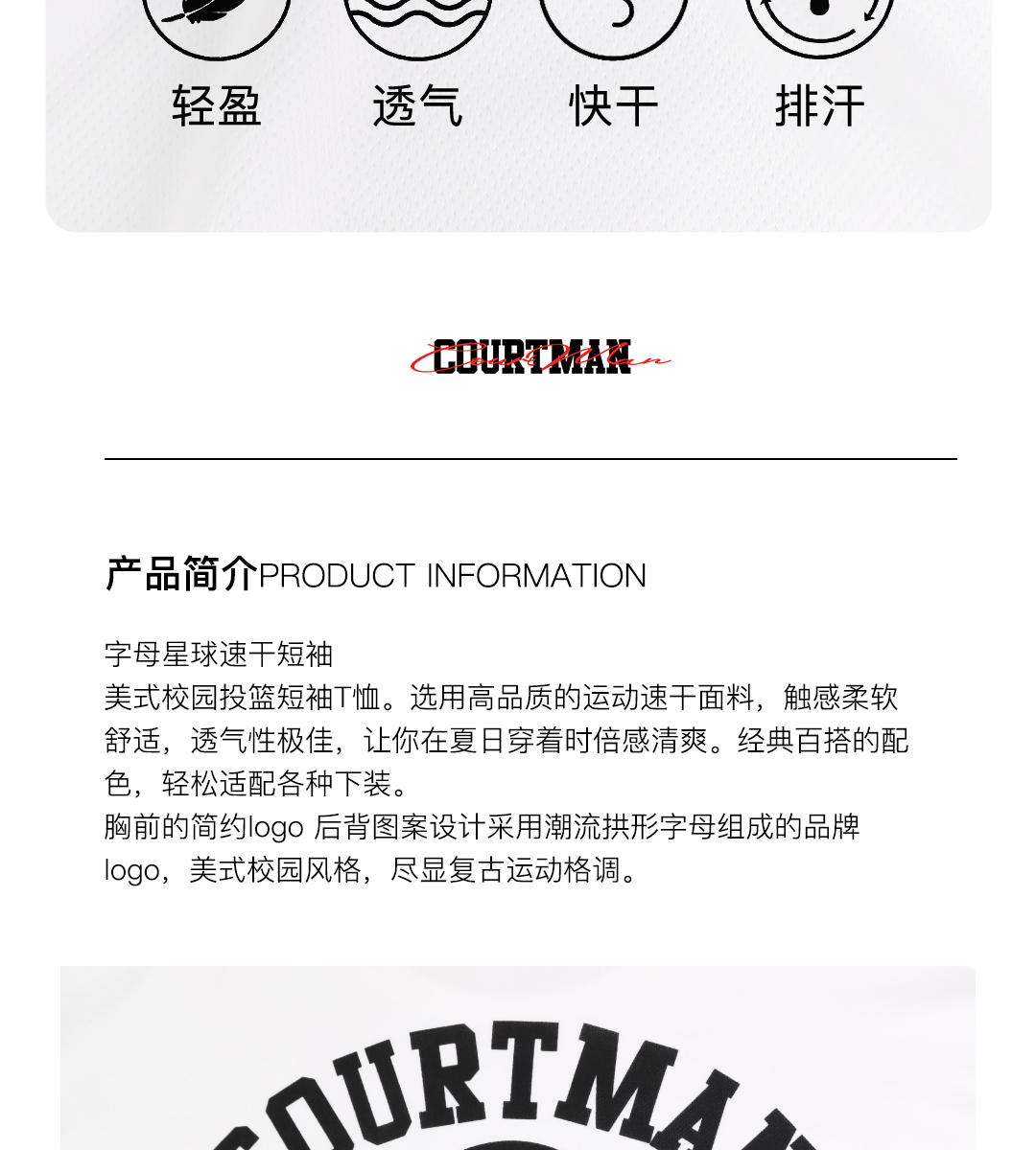 COURTMAN野球帝美式投篮服运动休闲T恤男女同款篮球短袖字母星球
