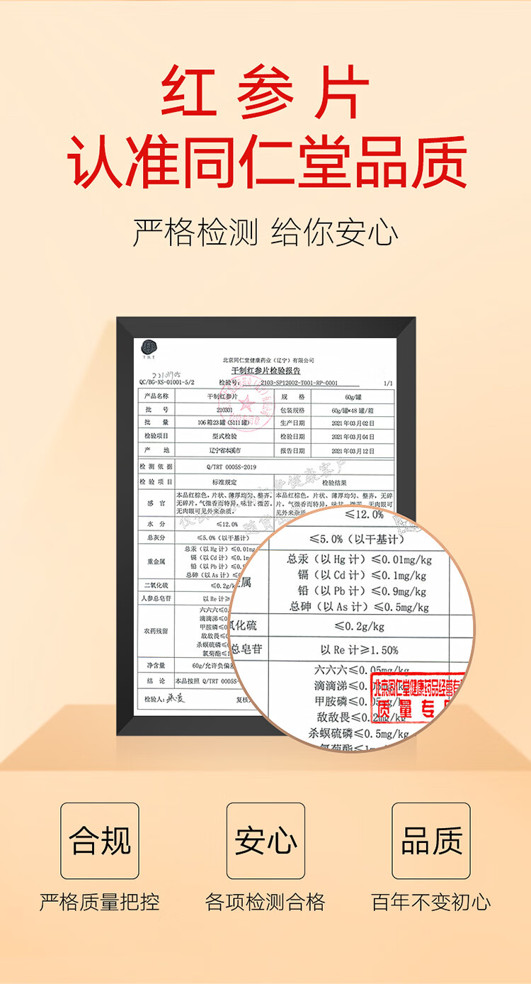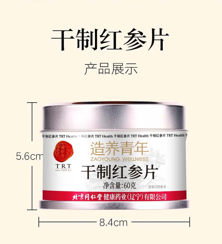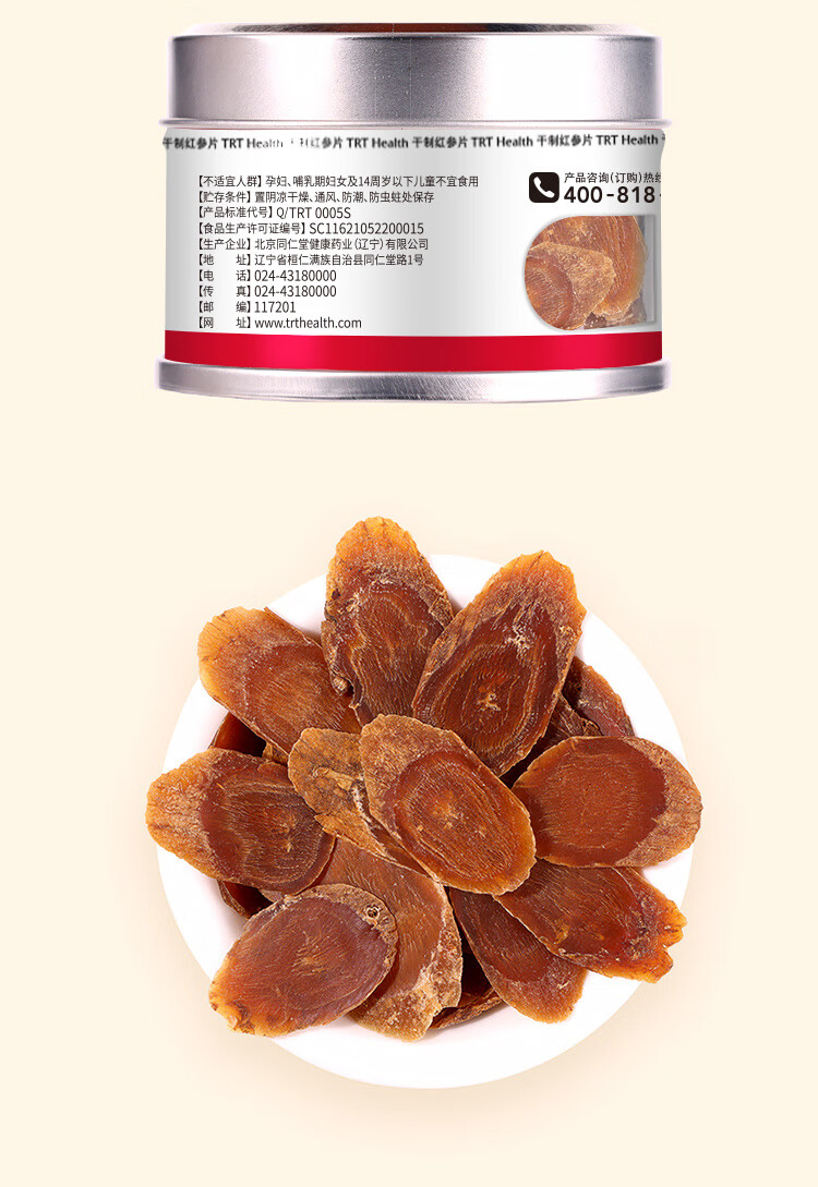 【积分兑换】北京同仁堂 造养青年 干制红参片60g/罐 红罐 辽宁红参 红参片 整支切片 片大均匀 精美铁盒装SY