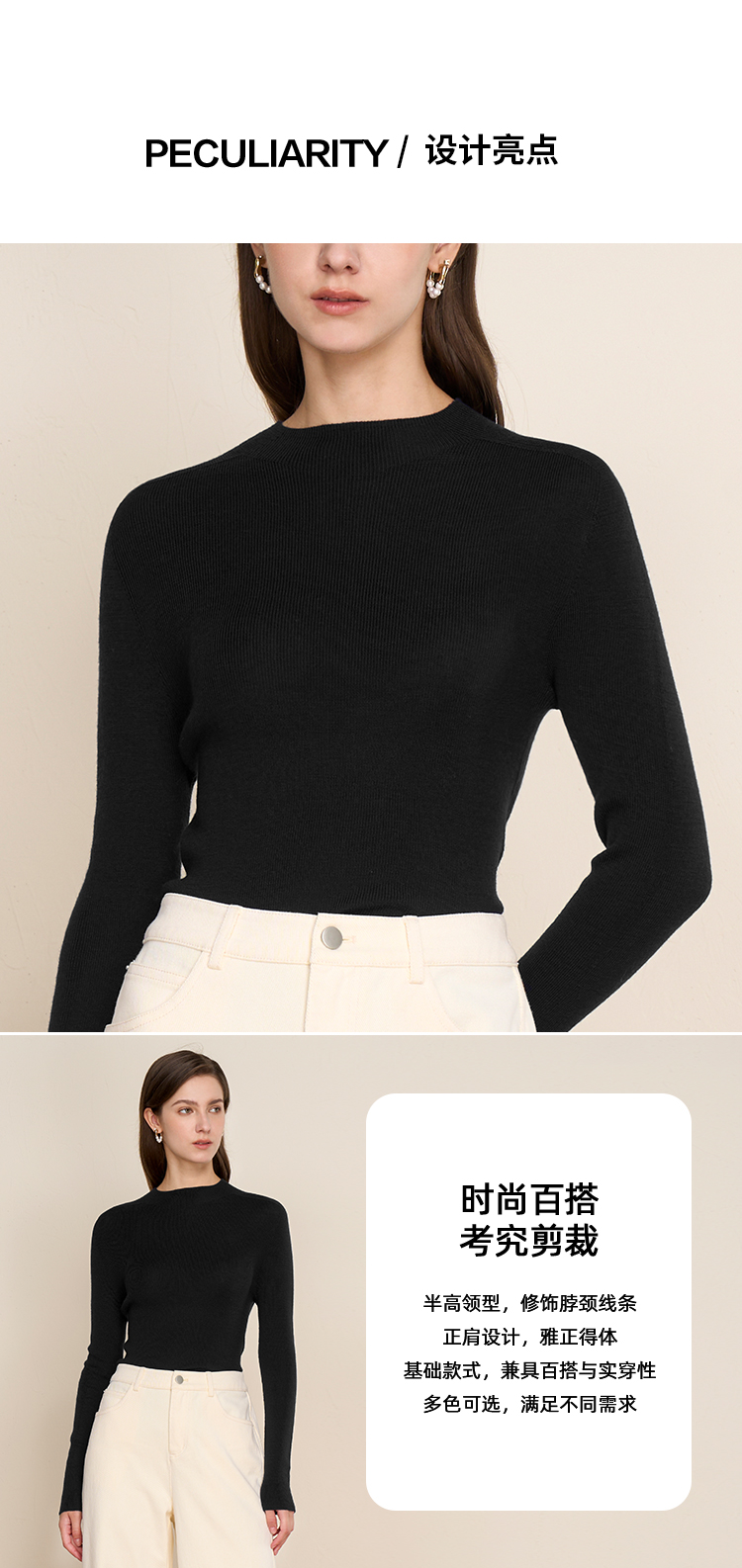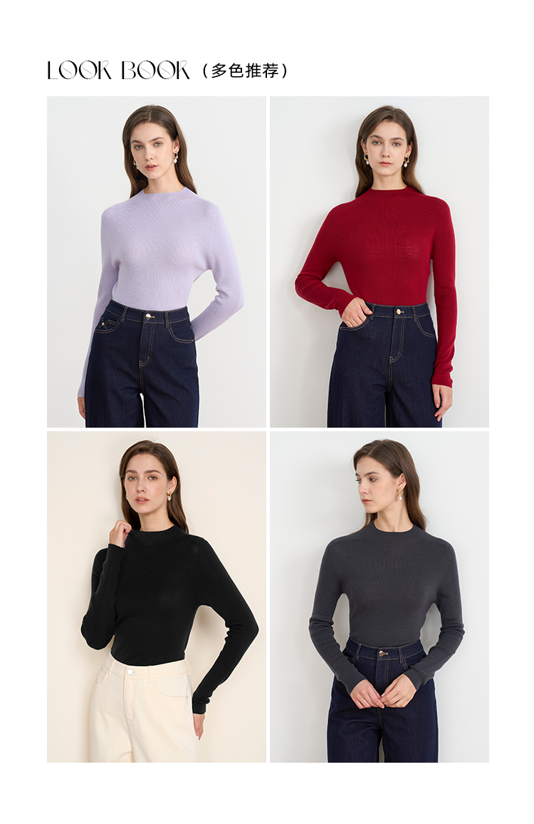 【精纺羊毛针织衫】EITIE爱特爱舒适打底半高领显瘦秋季新款C2501806