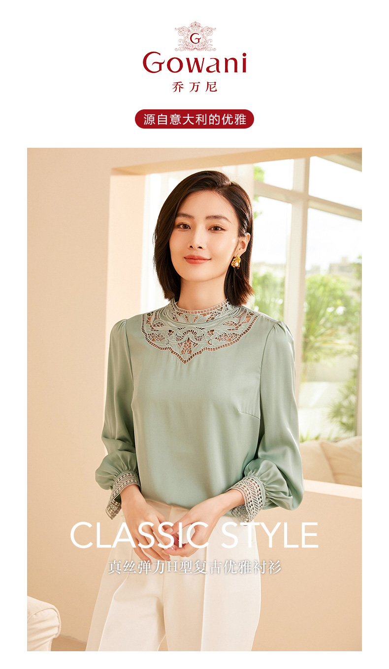 乔万尼秋新品真丝衬衫复古长袖设计ET3C612