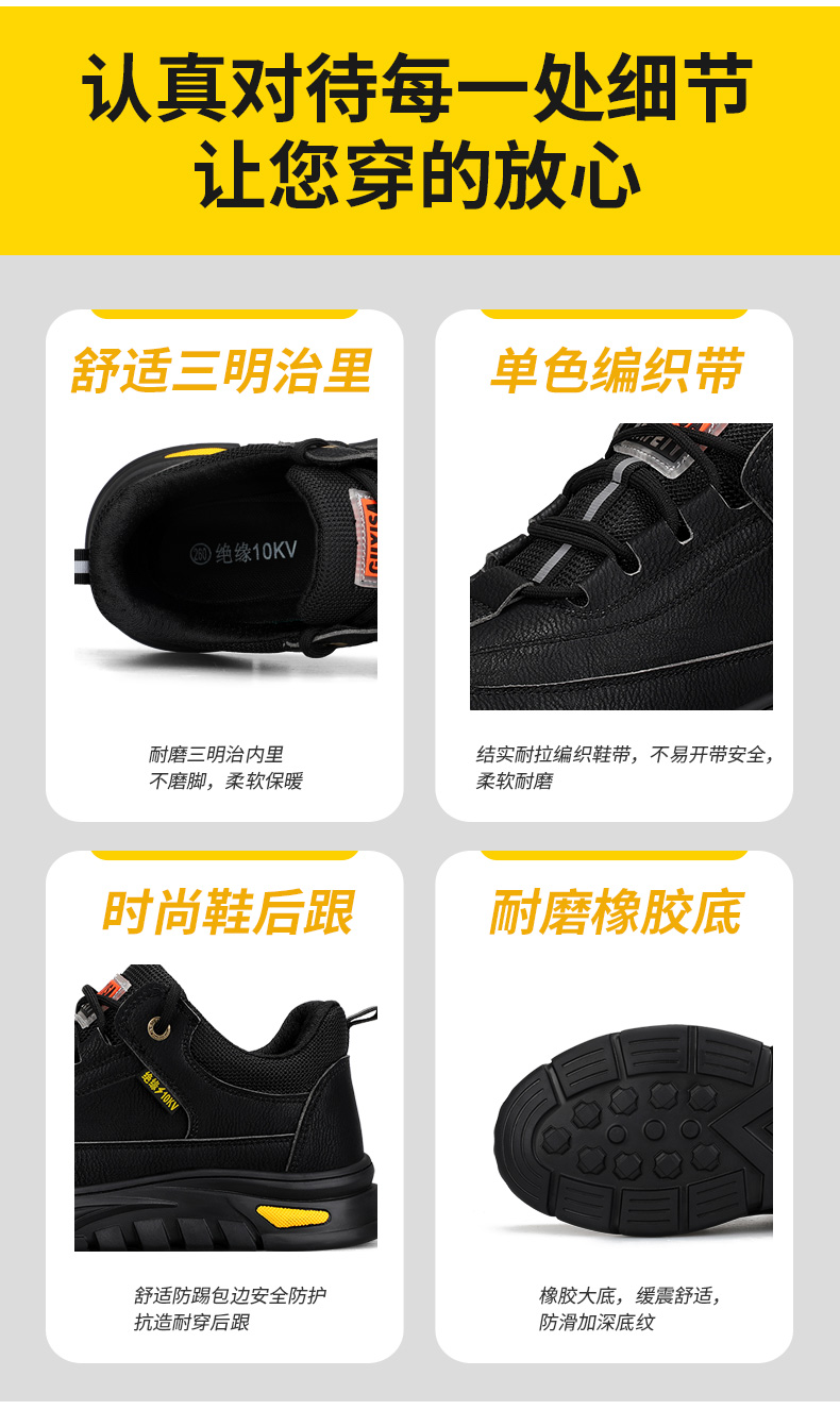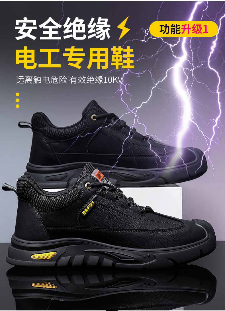 新品电绝缘10KV劳保鞋男防砸防刺工作鞋安全鞋橡胶底钢包头耐磨