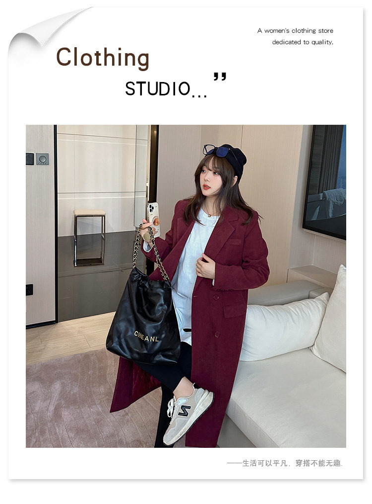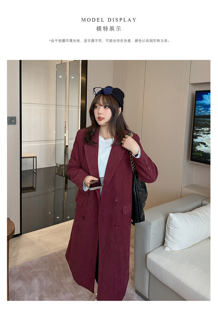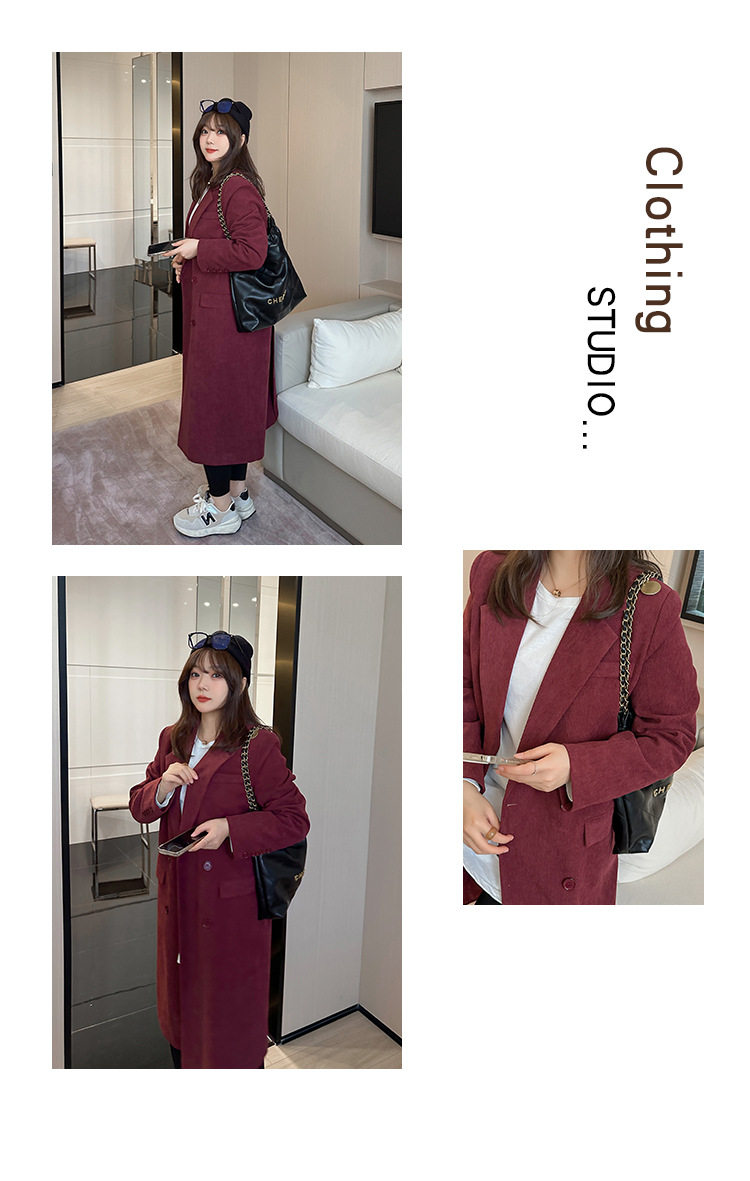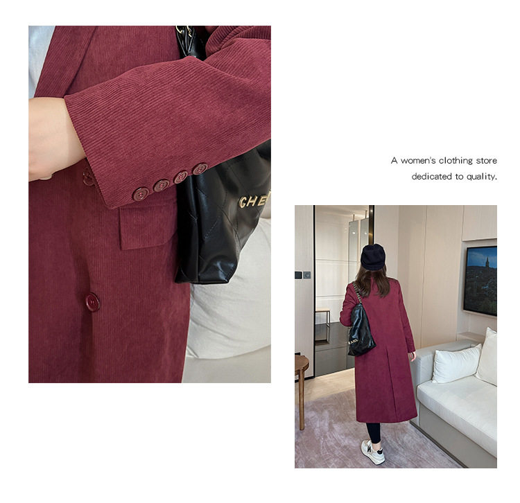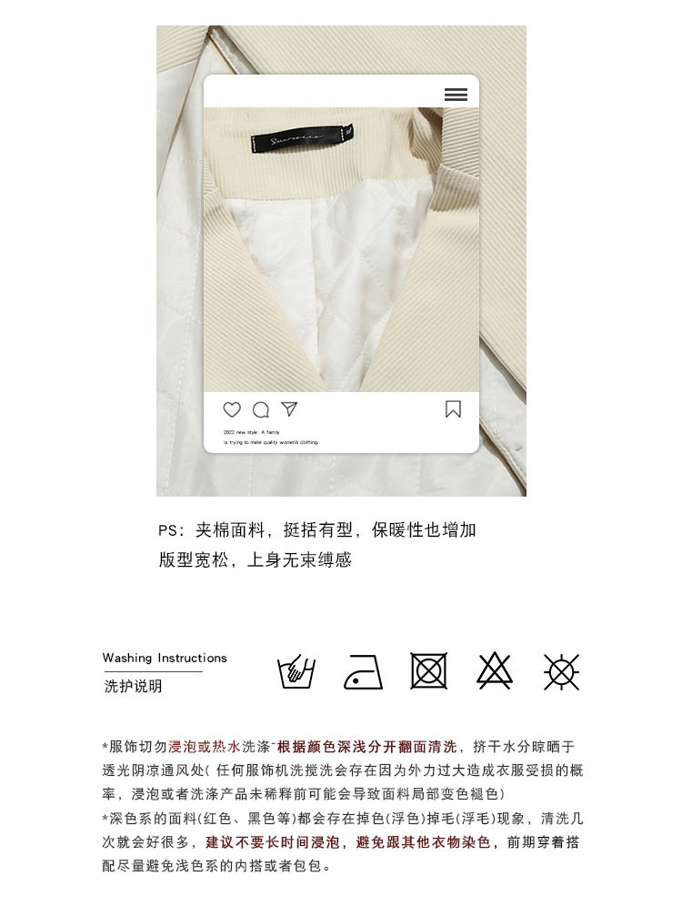 清货,微脏(不支持退,介意勿拍)杏色微脏【诗铭洛可】XCA0033西服长款外套灯芯绒夹棉