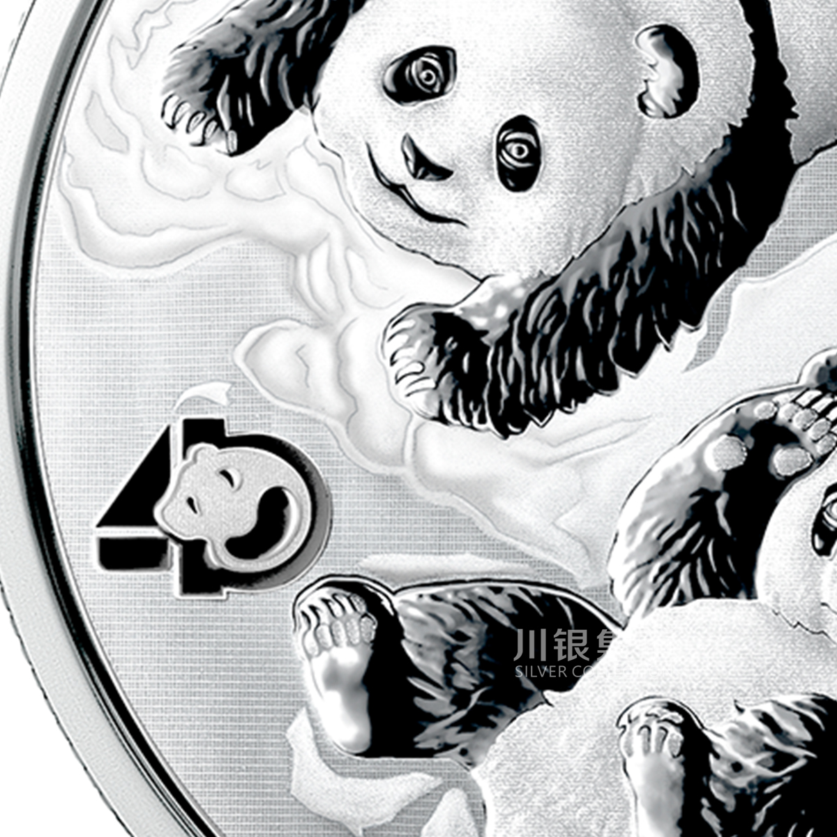 背面图案的左侧首次出现“熊猫金币发行40周年纪念标识”,标识中熊猫从数字“0”中爬出来,带着希望的眼神向外张望,象征着熊猫金币不断突破与创新!