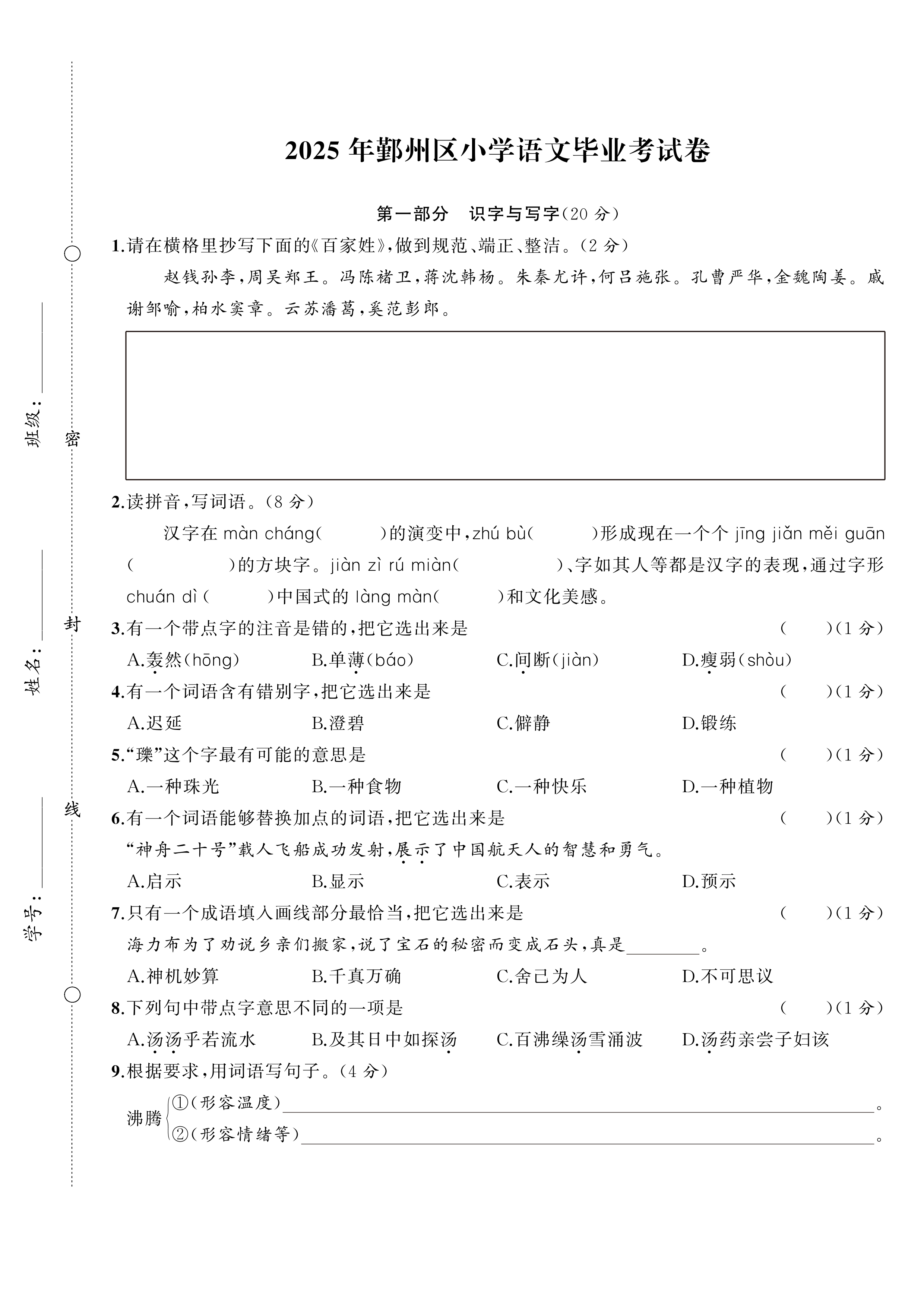 2026 小学毕业升学真题试题汇编 语文 数学 英语(电子答案)