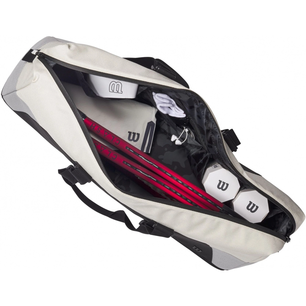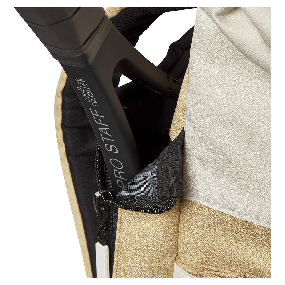 背包主袋可以存放两支球拍,一个侧袋可以很好地放置水瓶。包的主隔层可容纳笔记本电脑和可拆卸鞋袋。