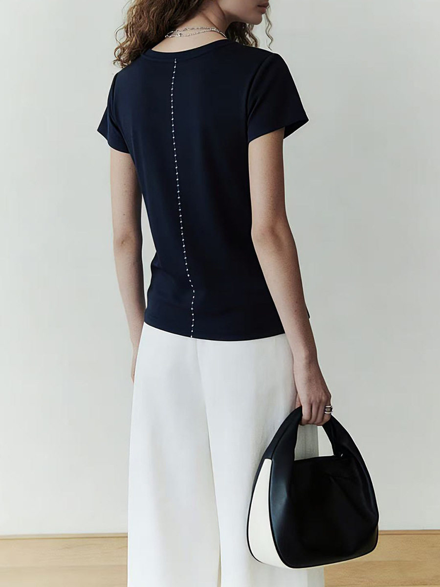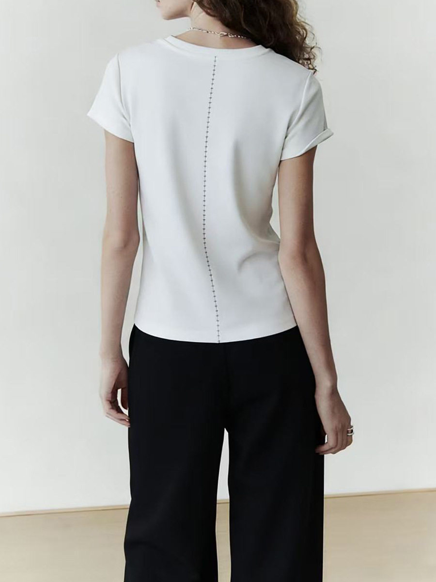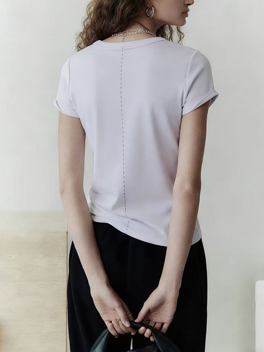 「预售」「高货sh」全新升级【铂金会员192/天猫259/差价67】(13725)洛诗琳初柔棉正肩短袖女2026新款后背花针设计撞色圆领T恤
