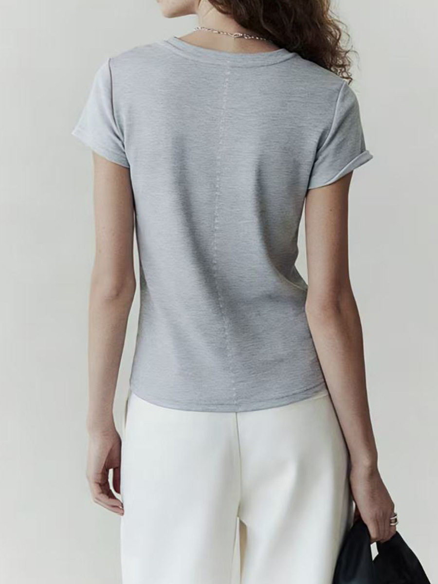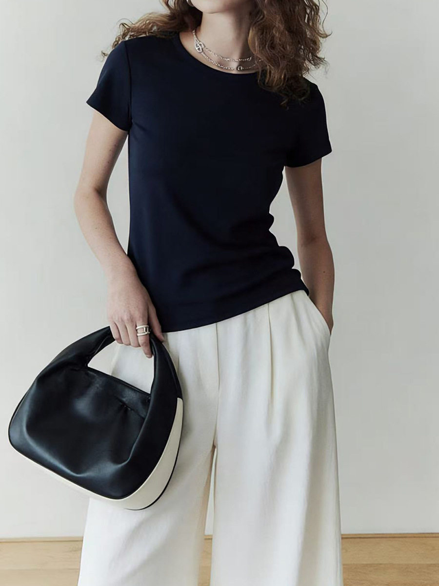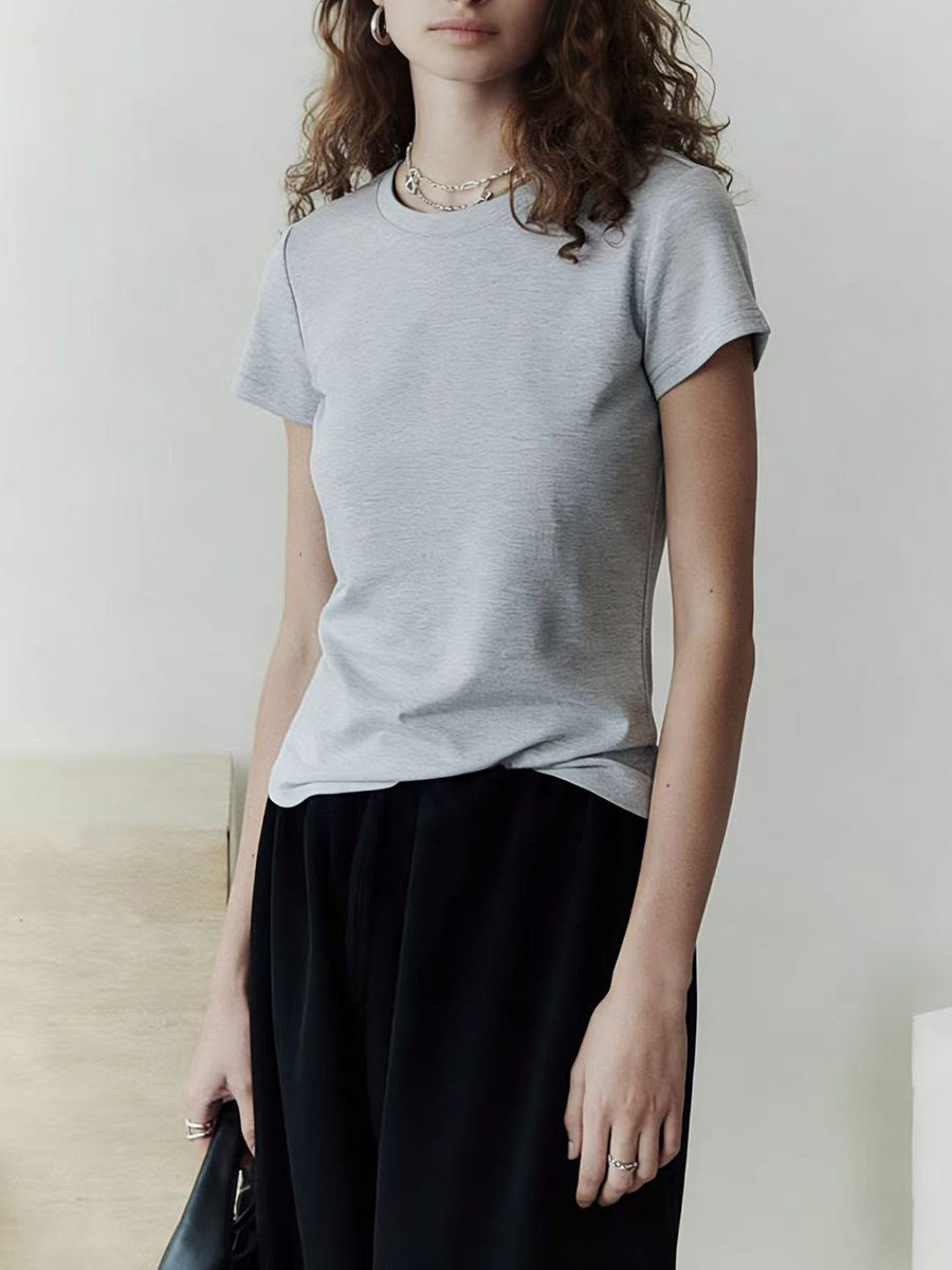 「预售」「高货sh」全新升级【铂金会员192/天猫259/差价67】(13725)洛诗琳初柔棉正肩短袖女2026新款后背花针设计撞色圆领T恤