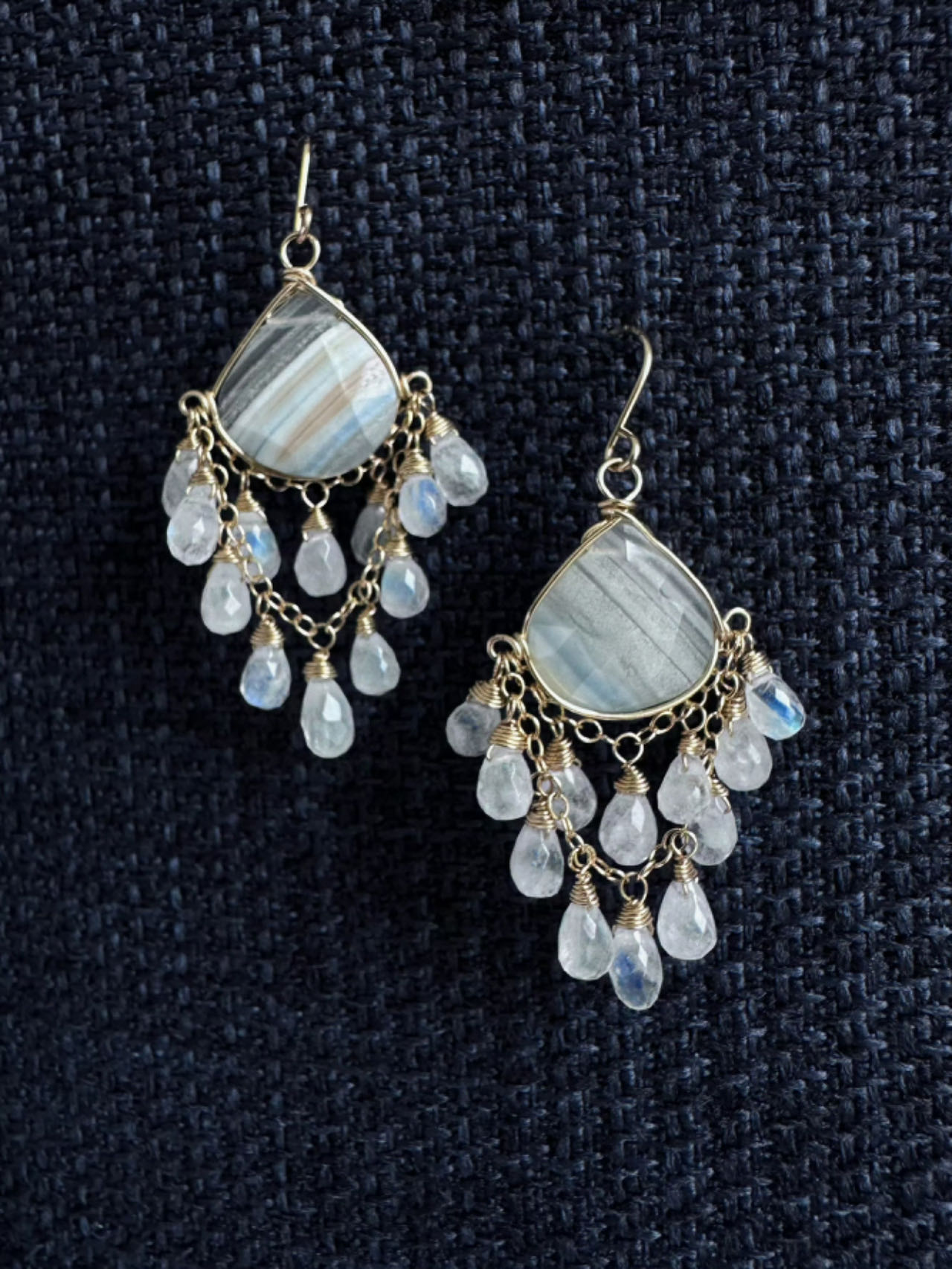 SpoiledBrat Jewelry chandelier吊灯系列 蓝纹欧珀月光石耳环