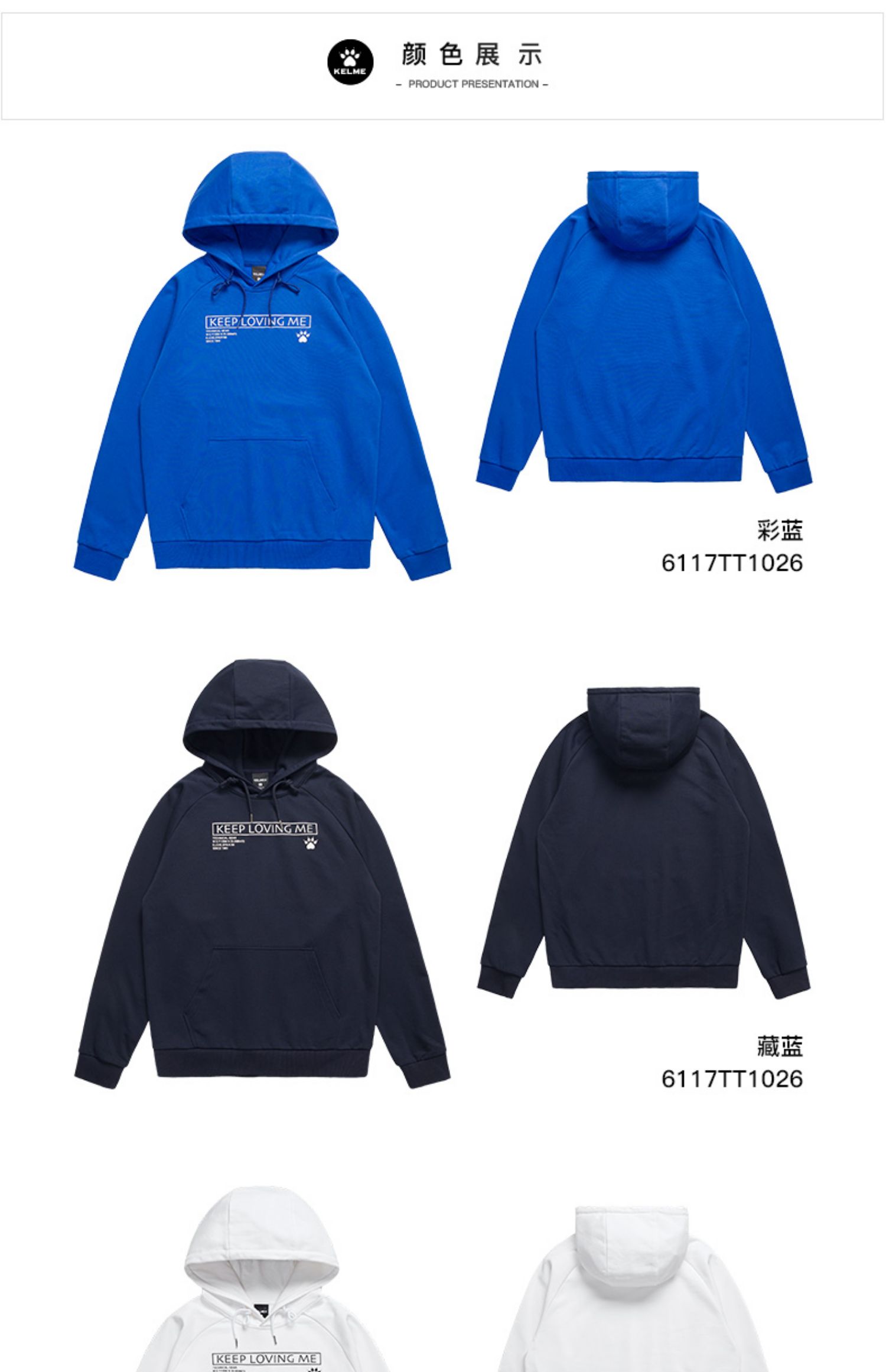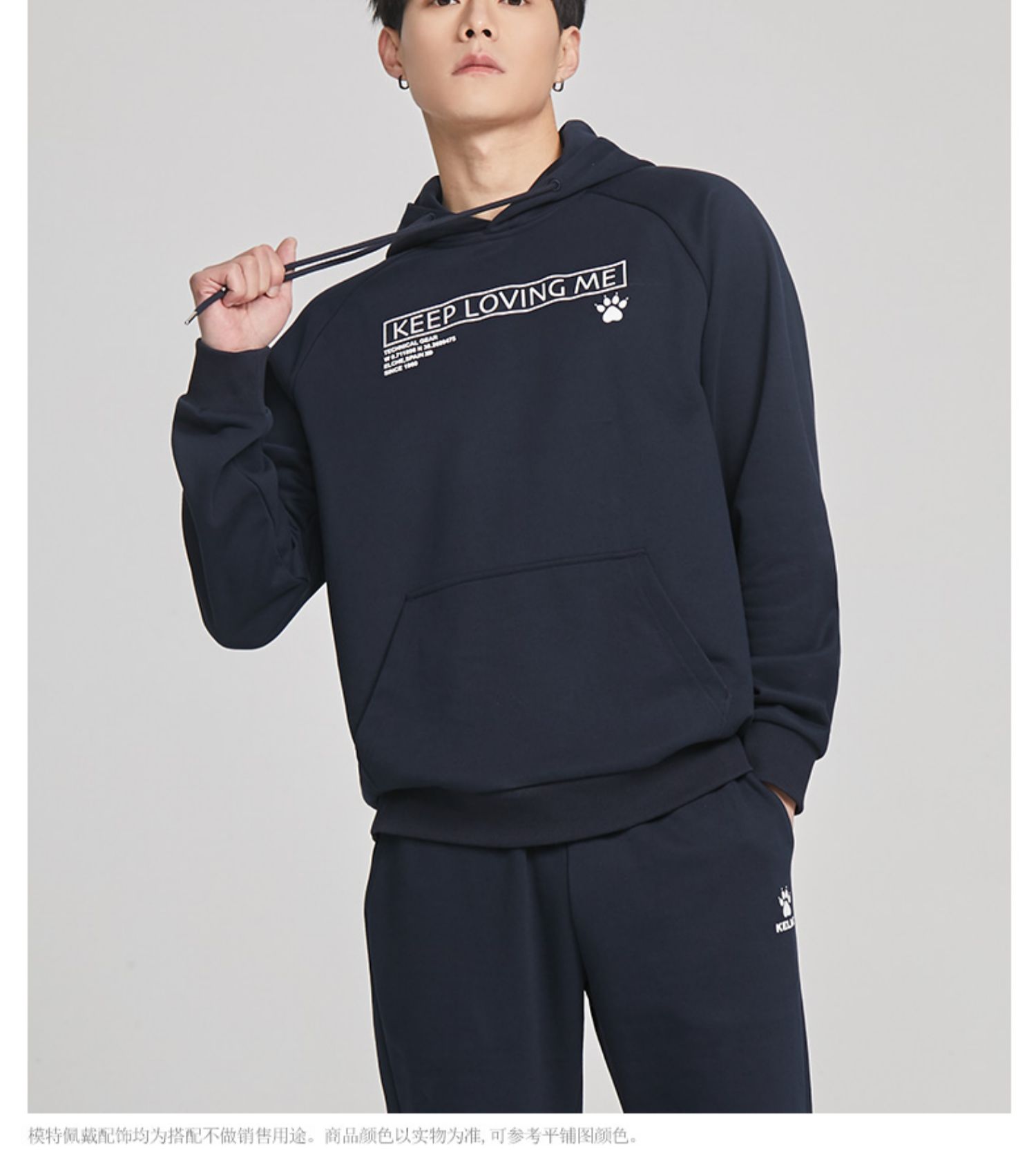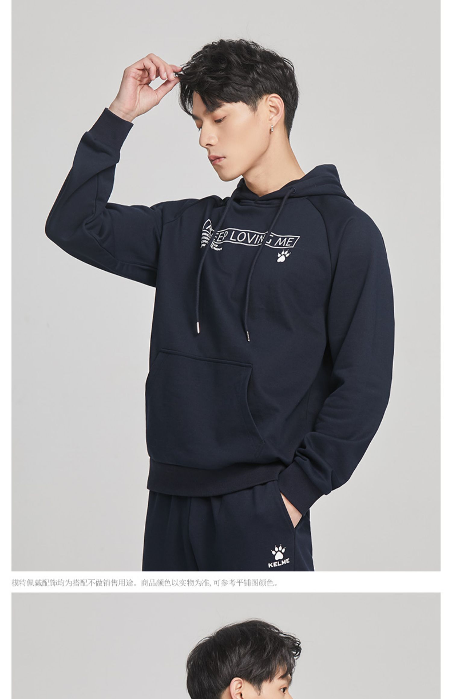 卡尔美运动休闲卫衣春秋季新款针织连帽套头衫男宽松上衣
