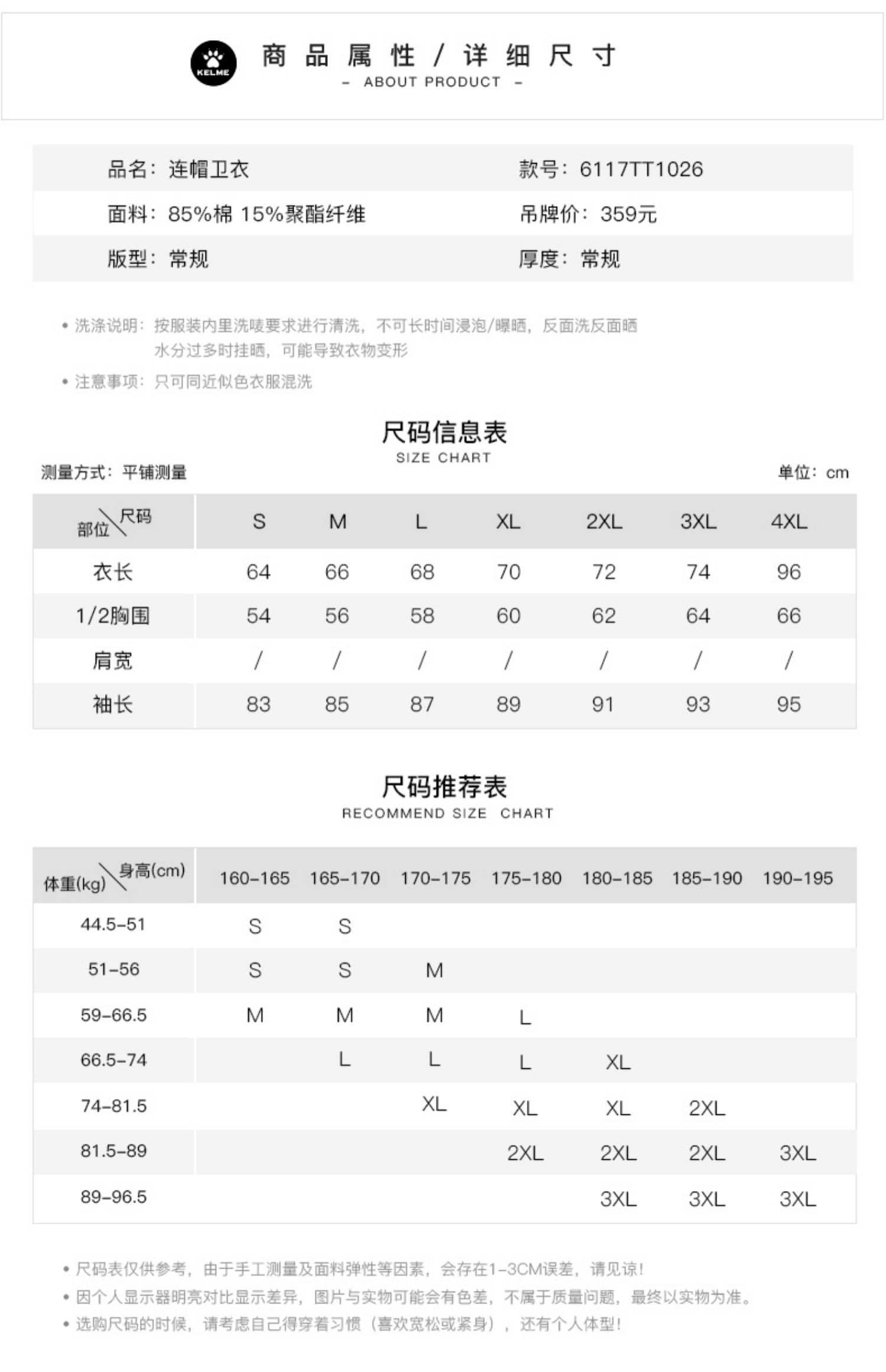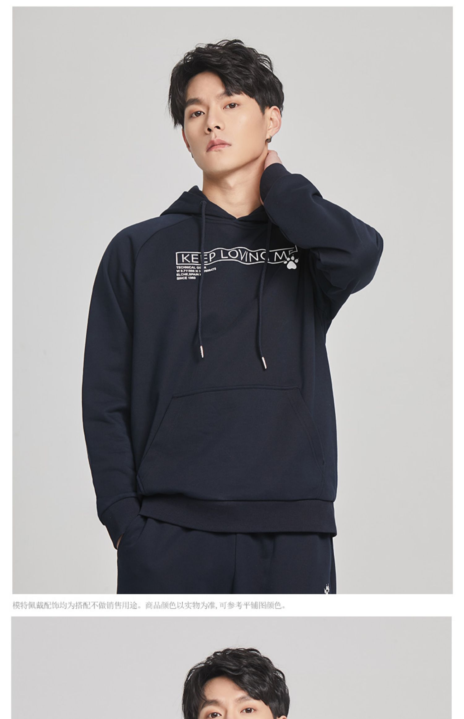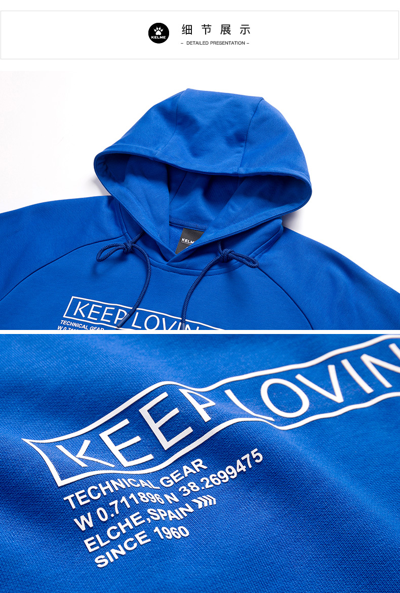 卡尔美运动休闲卫衣春秋季新款针织连帽套头衫男宽松上衣