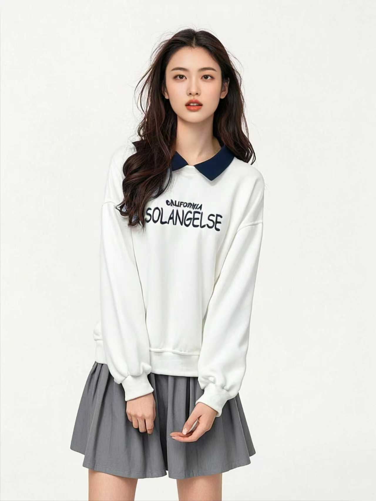 【工艺系列卫衣】刺绣款~95%棉重工刺绣SO拼色领卫衣-喜出