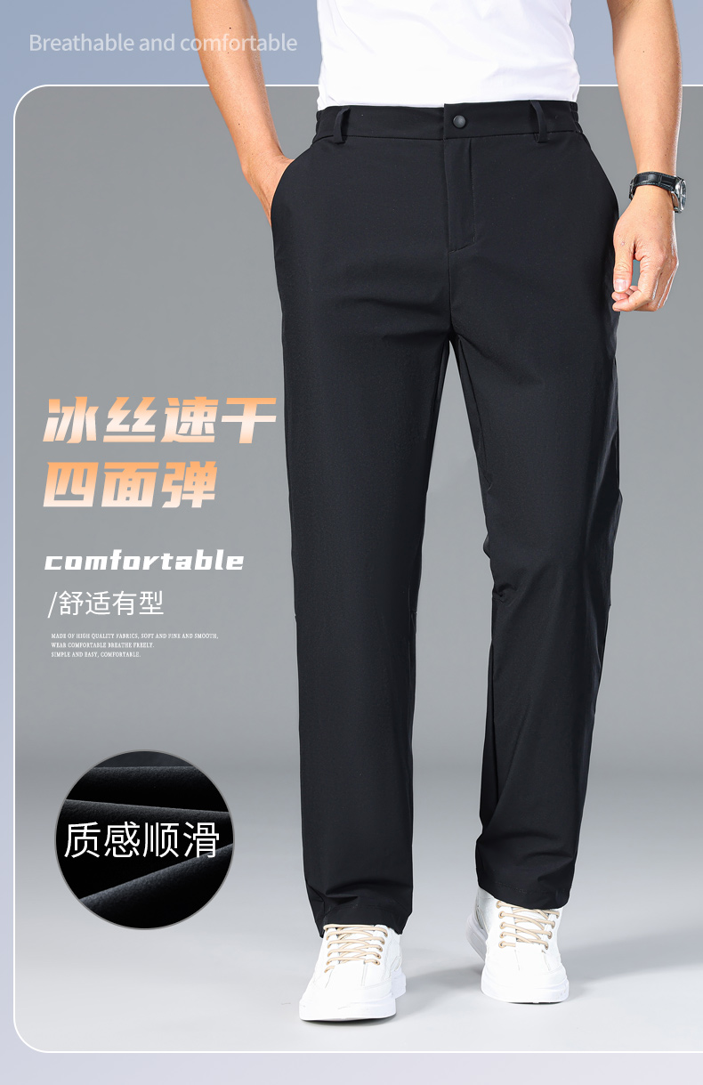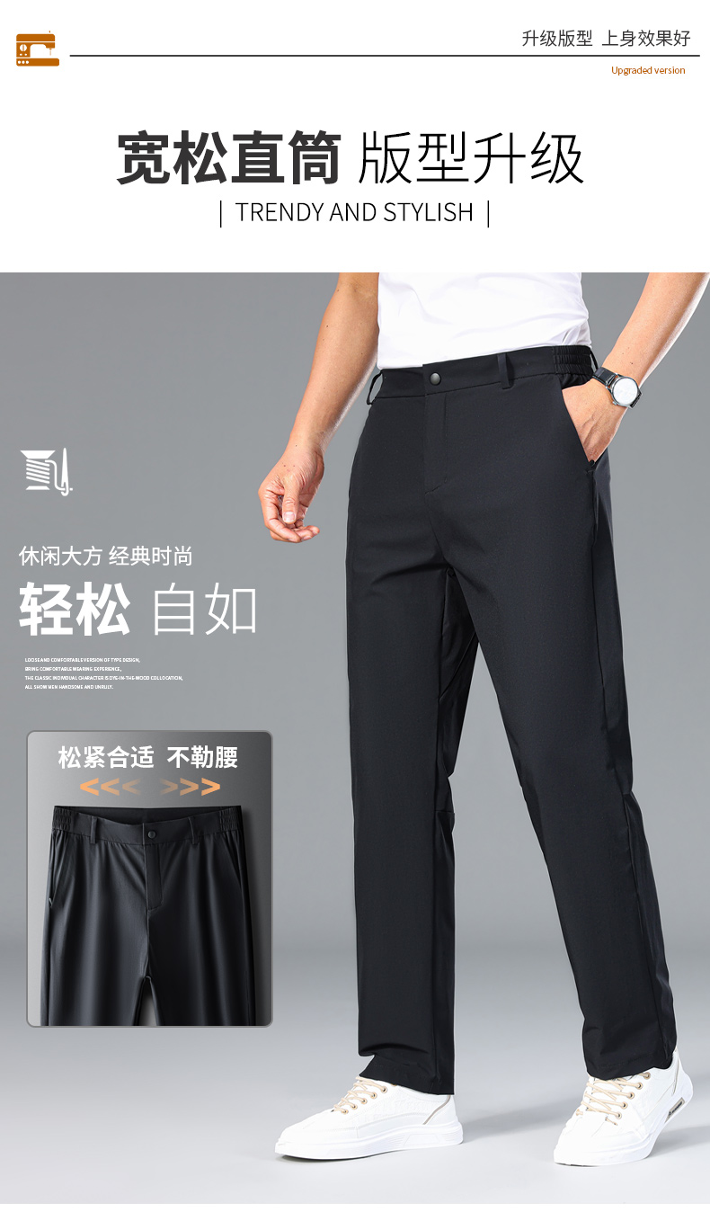 【Q】【冰丝薄款】【新款DZP】大依优型大码弹力半松紧腰商务休闲裤多色宽松显瘦肥佬休闲男士加肥加大