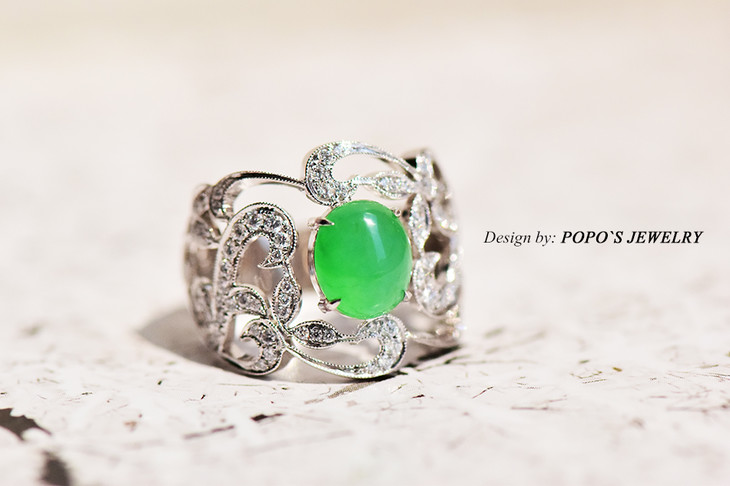 主石选了一颗翡翠绿蛋,颜色是甜甜的绿,