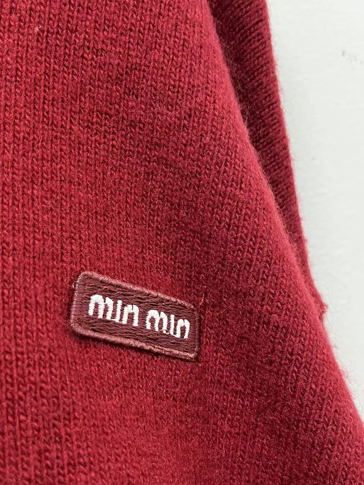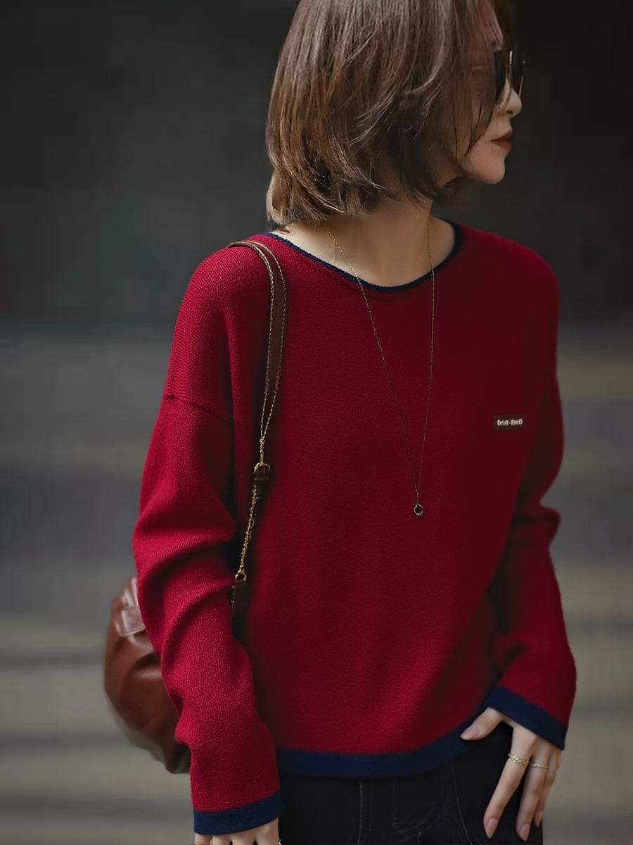 跨年福利【超美针织衫】M28一字领红色氛围感宽松撞色毛衣-喜出